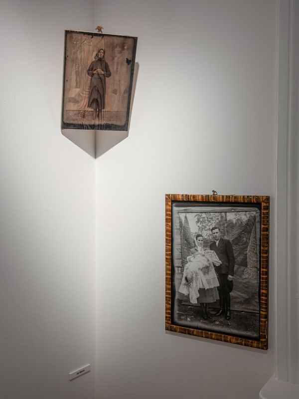 Most of their photographs weren’t taken in studios but outdoors—in farmyards, against barn walls, or in front of house doors. Makeshift backdrops, often hung on nails, served to conceal what they didn’t want future generations to see—usually poverty. Their work documents the rhythm of rural life: significant milestones like weddings and funerals, as well as more mundane moments—ID photos or keepsake portraits.