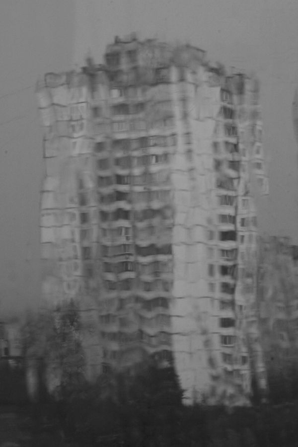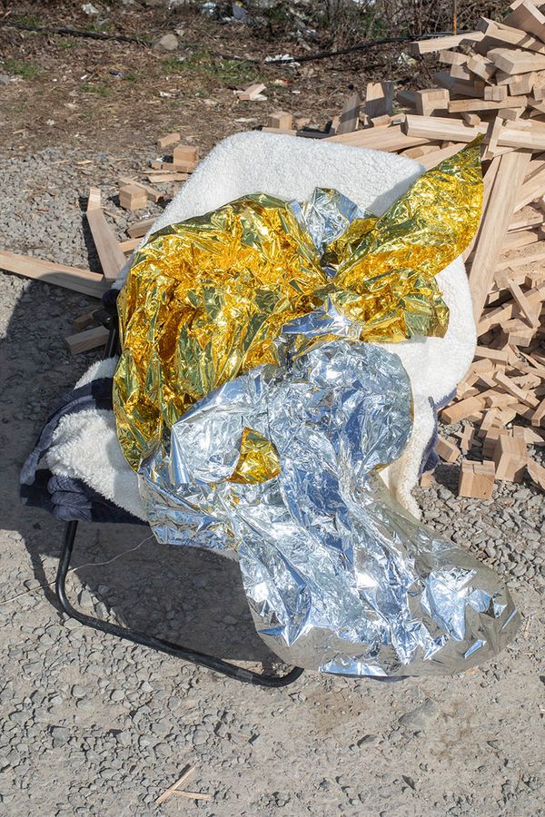 Whilst Stephan Lisowski captures fragments of his journey across Ukraine, Dima Tolkachov begins to find distorted faces in bullet holes. Nazar Furyk, meanwhile, is drawn to the candy- coloured flower beds and toy castles in a recently liberated Bucha. As Kristina Podobed portrays her son growing up abroad, Daria Svertilova focuses on a wilted bouquet – a couple of weeks old – abandoned by her mother when fleeing her home. Elsewhere, Elena Subach turns her lens from people to objects: she studies chairs, ‘islands among waves of people’, lined at the border at the start of the full scale invasion.
