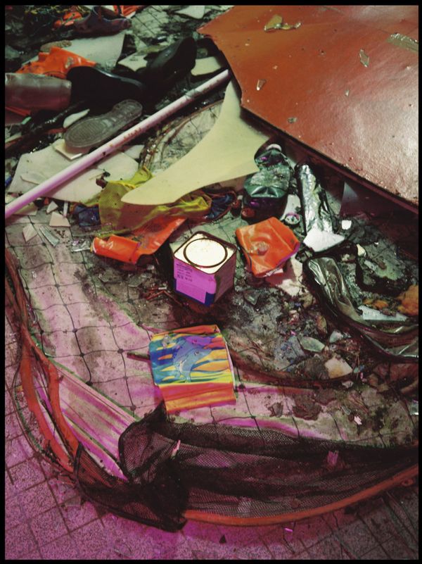 The two-stage project led the artist to carry out in-depth research combining urban sociology, history, and territorial policy with personal accounts through the collection of postcards, photographs, and letters. Anne-Lise Seusse then took over the uninhabited colony at night and turned it into her studio. Illuminating the space with coloured gels, Anne-Lise Seusse delivers images that are situated somewhere between documentary and forensic photography, with elements of installation and sculpture. Les Enfants Du Palais Sous La Mer (Children Of The Palace Under The Sea) shows a maze of objects of all kinds—furniture, toys, etc.—which seem to have taken over the space. We are left guessing at an apocalyptic landscape, not knowing whether the catastrophe is imminent or has already taken place. Amidst these objects, traces of life can be seen in the presence of recent graffiti that tell another story, that of these depreciated places that are once again becoming desirable. Les enfants du palais sous la mer thus evokes a dystopian world in which human civilisation ends up irretrievably submerged underwater.