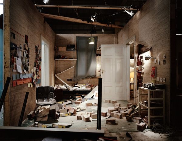 Rosefeldt is also interested in looking behind the scenes: many of his works address the fine line between stage and backstage, fiction and reality. By revealing processes of film production, he explores the role of the medium in constructing reality. This reflection about film and staging is apparent in Rosefeldt’s way of combining different media in his work. His films not only involve social narratives; they also address cinema itself: as an archive, field of experimentation, and producer of myths.