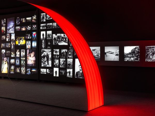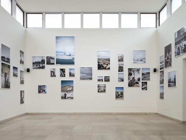 The photographic series in the exhibition are accompanied by musical compositions and soundscapes as well as a sculptural element in the form of a semicircle which symbolises the Arctic sunrise over the white icy landscape, referencing Kalaallit Nunaat’s flag (Erfalasorput), traditional Inuit beliefs and the exhibition title Rise of the Sunken Sun.
