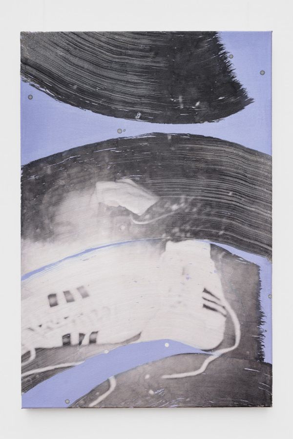 By experimenting with materials and processes for transferring images to canvas, Tatjana Danneberg transforms her candid analogue photographs into expressive paintings. Using point-and-shoot cameras, the artist seeks to prolong occasional memories by depicting relatives, acquaintances, and everyday objects in familiar and often intimate shots. Her technique for making the transition from photography to painting is fairly complex. The images are first enlarged and printed by inkjet onto sheets of plastic foil. They are then painted with gesso, left to dry and wetted again, before finally being separated from the foil and transferred to canvas. The final result is only known once the sheet is removed from the canvas. Revealing fragments of objects, everyday actions, or even a total absence of action, these images akin to amateur snapshots are transformed into a powerful pictorial gesture. The brushstrokes applied by the artist intuitively follow the composition of the photograph, adding movement while obscuring part of the image.