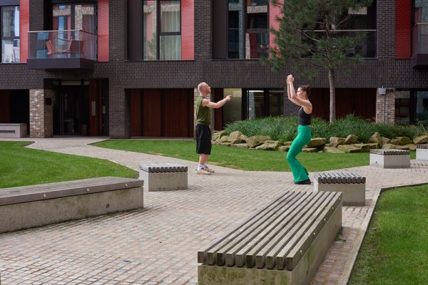 The performance Precursing by Nina Davies explores the generalized movements of NPCs (Non Playable Characters) that mimic humans in digital environments, more specifically in the universe of video games. Nowadays, most autonomous cars with Artificial Intelligence are trained with video games in which they interact and become accustomed to the movements of these characters. The British artist places us in a near future where humans begin to mimic, through precursing, the behavior of NPCs to avoid being run over. It’s a sort of “meta metarepresentation” of our own movements.
