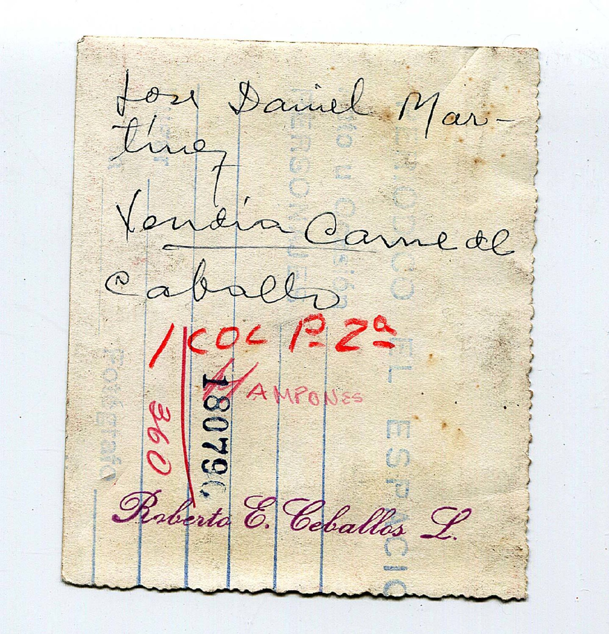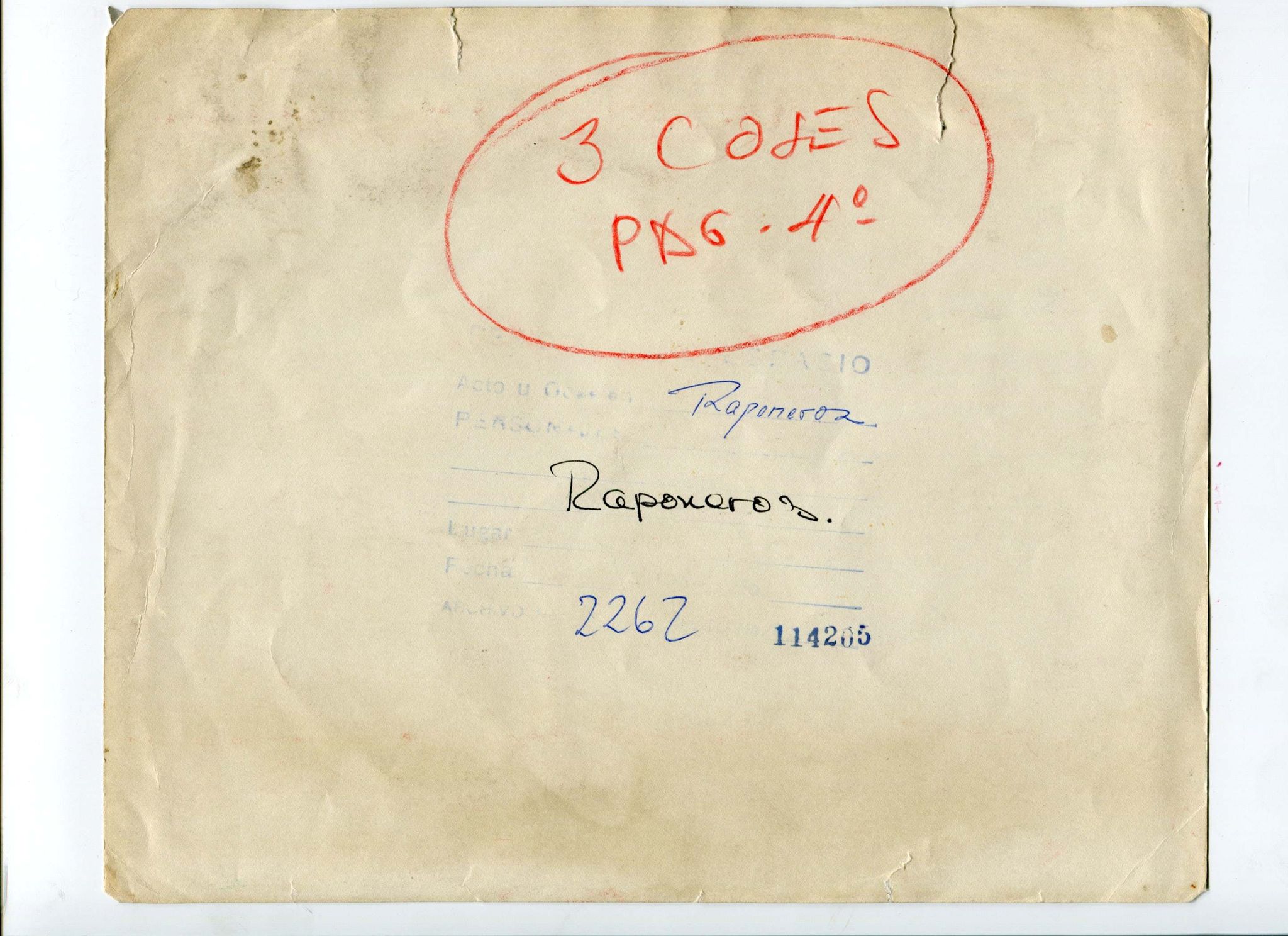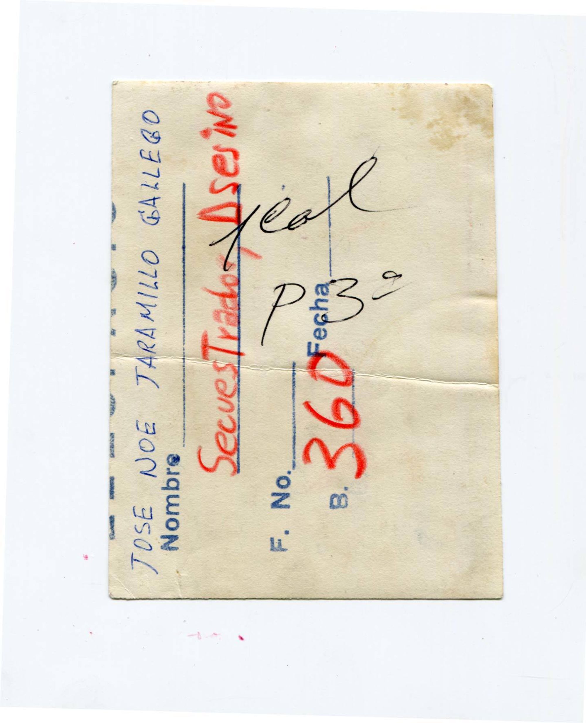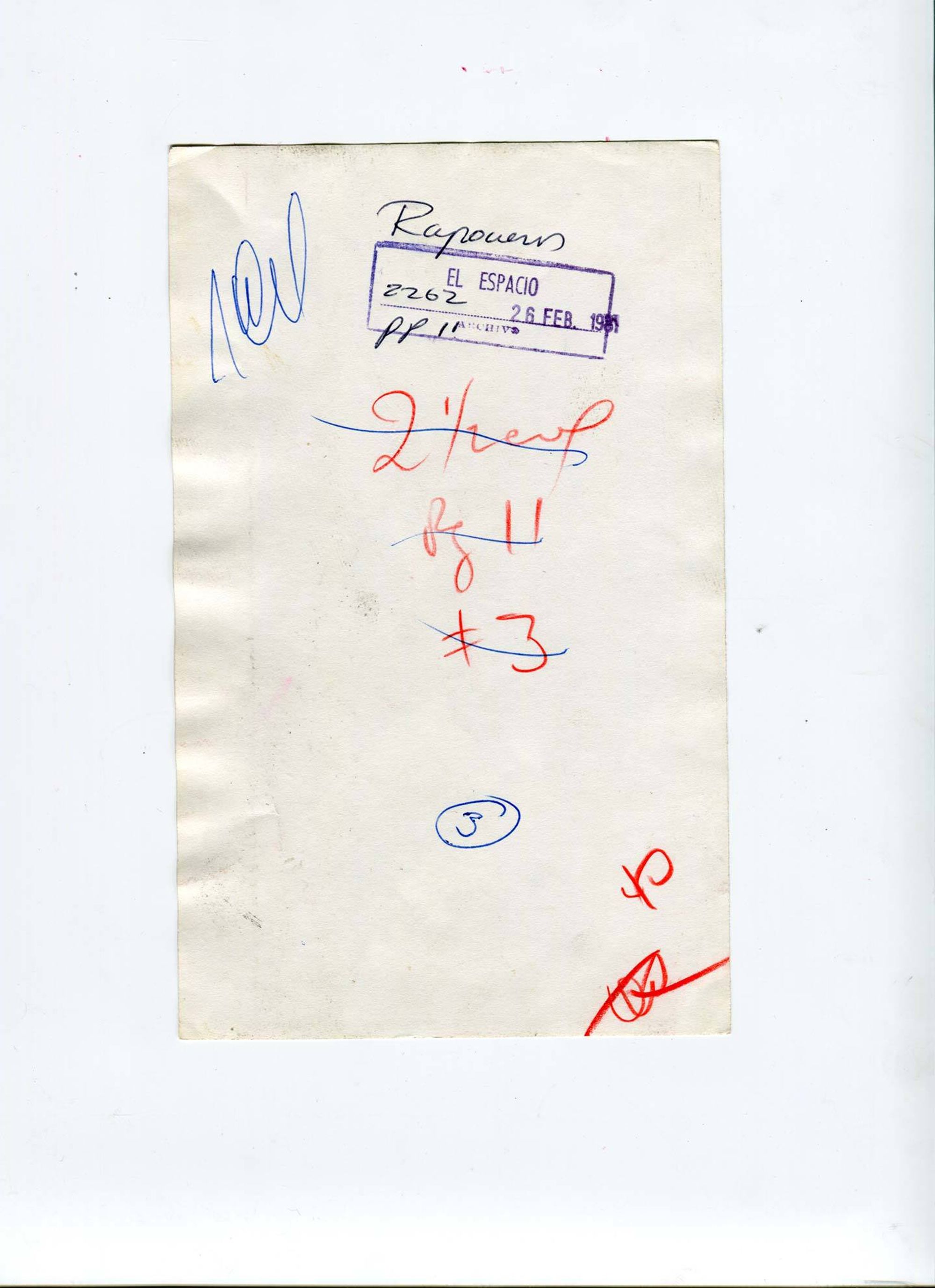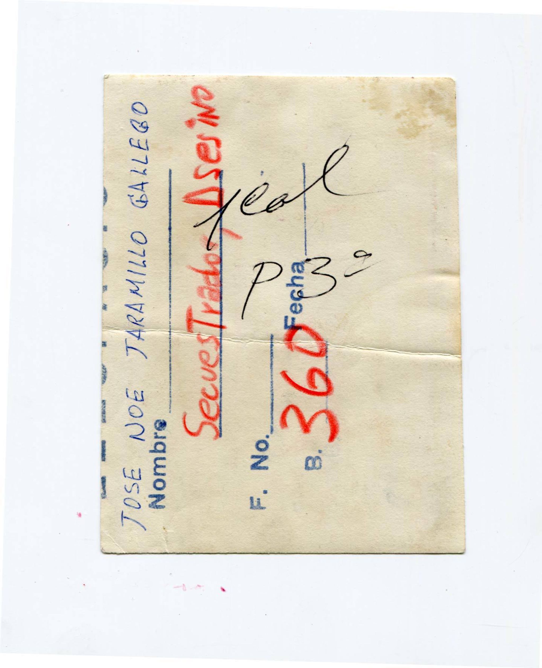 Orjuela managed to salvage a number of the old photographs. These images are replete with historical details originally produced not for their visual interest but as evidence. Curiously enough, in many cases, the inscriptions on the back of the photos do not seem to match the images on the front. In Coca Traffickers (2013), two men stand with bags stuffed with marijuana. On the label, an original typewritten inscription describes the haul of marijuana that was brought in, but this text is crossed out and in coloured pencil the words “traficantes de coca” (coca traffickers) are inscribed. Apparently the evidence needed to be altered to fit the accusation.