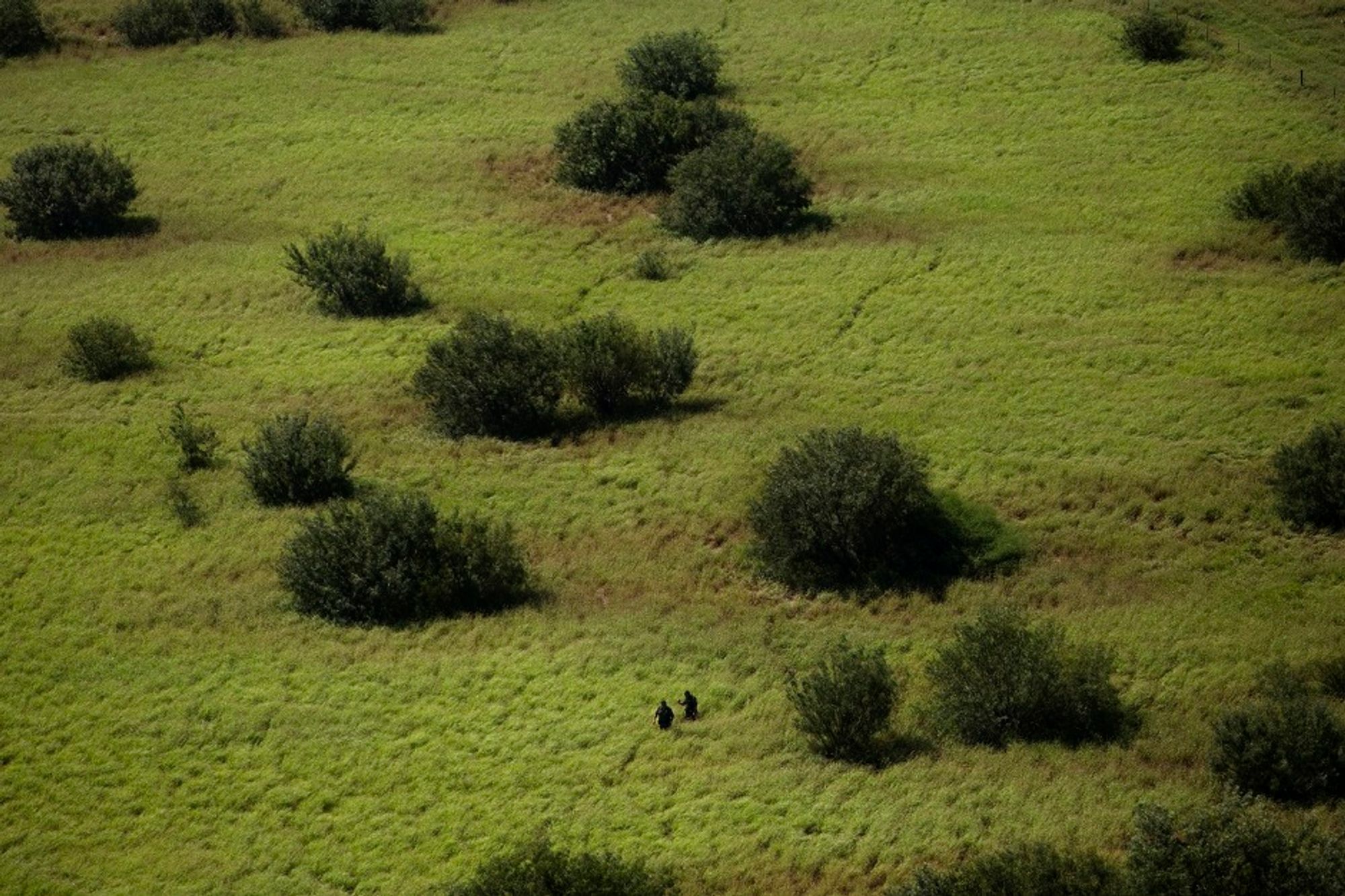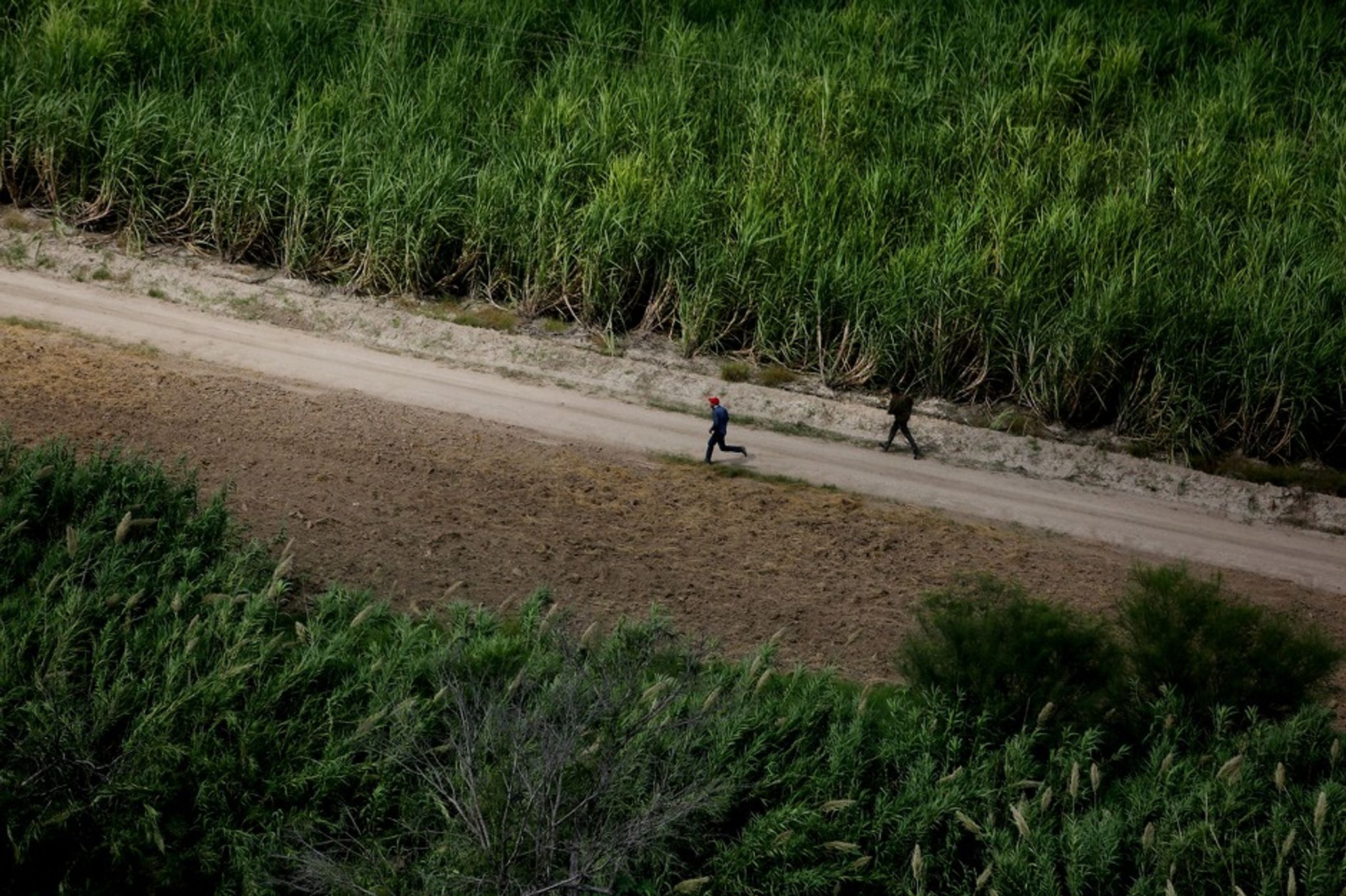 Two suspected migrants run away from the Border Patrol near the banks of the Rio Grande River in Texas, United States.