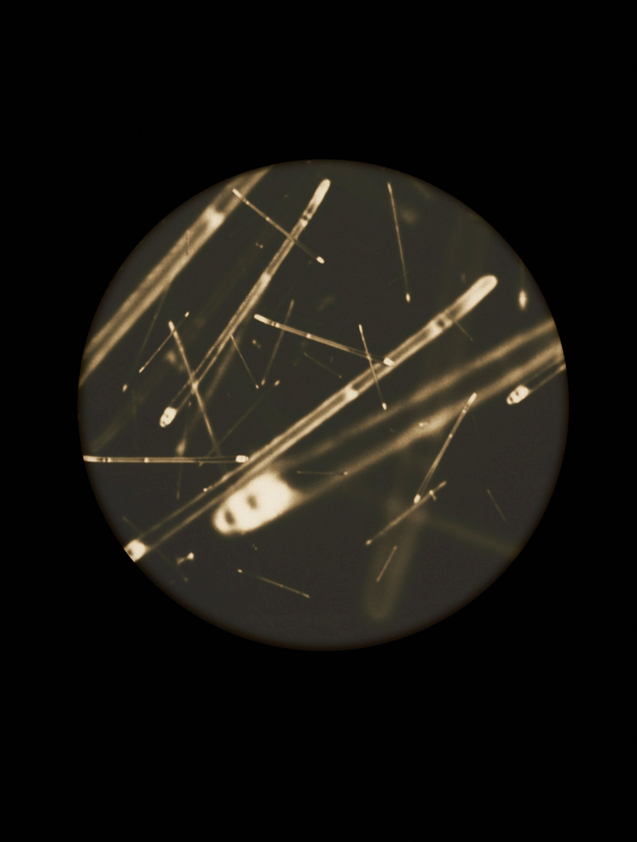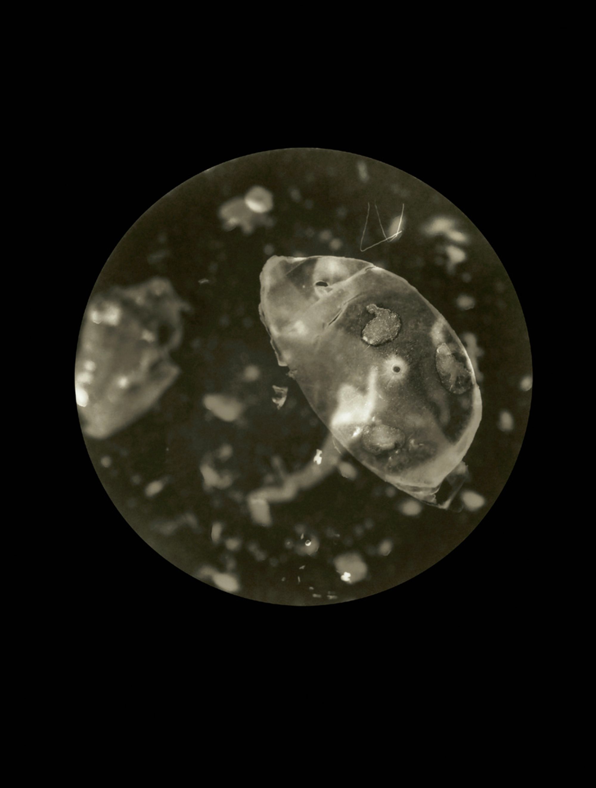 Presented as microscopic samples, objects of plastic marine debris - recovered from the same location - mimic Thompson’s early plankton discoveries. The work represents contamination of plastic particles in the natural environment, creating the perception of past scientific discoveries when organisms were free from plastic. Presenting new ‘specimens’ created from recovered debris serves as a metaphor for the ubiquity of plastic, encapsulating in miniature the larger problem of an imperfect world.