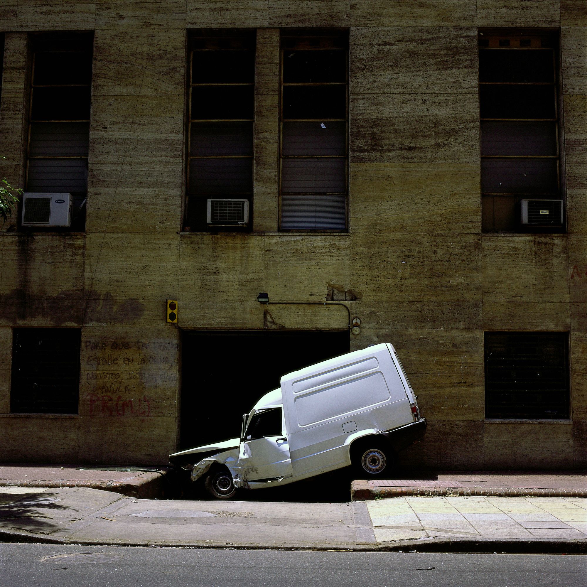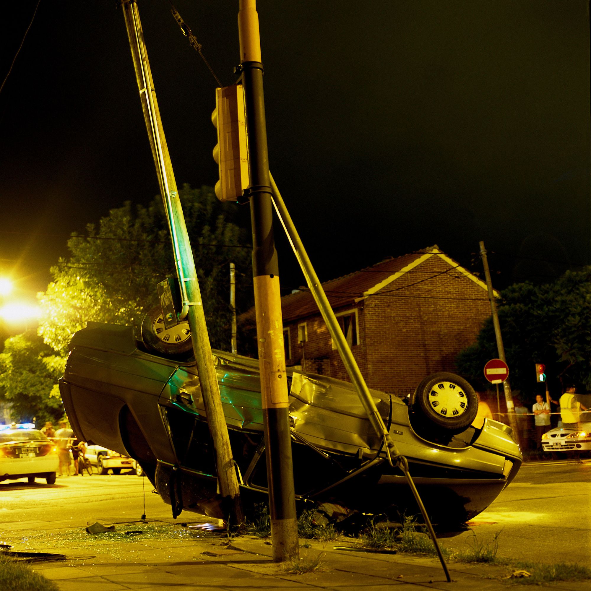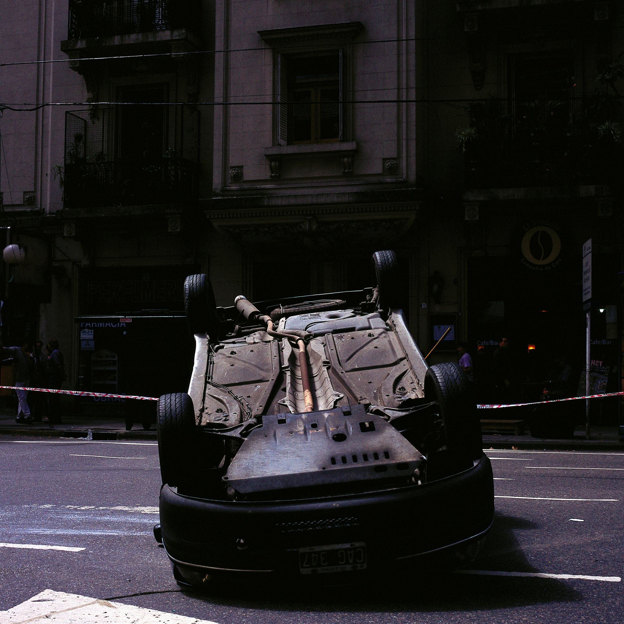 After the physical impact, after the screams of pain and the bloody wounds or bruises, what we are dealing with here is also the simple observation of an event. If something grabs our attention it is the utter lack of blood that we might expect to see at accident scenes. Employing a square format (as unchanging and systematic as the document he sets out to make), and although he shoots in colour (a choice that undoubtedly clashes with the anonymous character of this type of record), Diego Levy performs an examination or “survey” of an event that upsets the daily sequence of our lives.