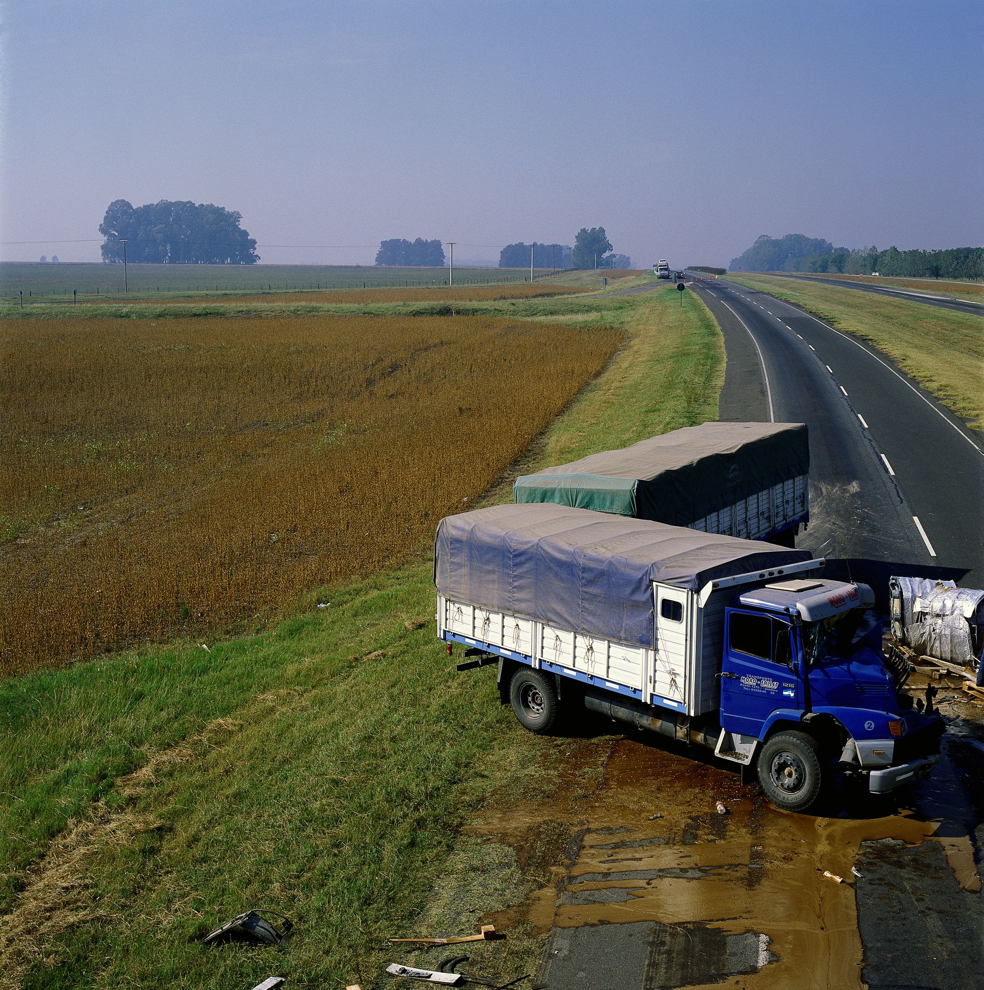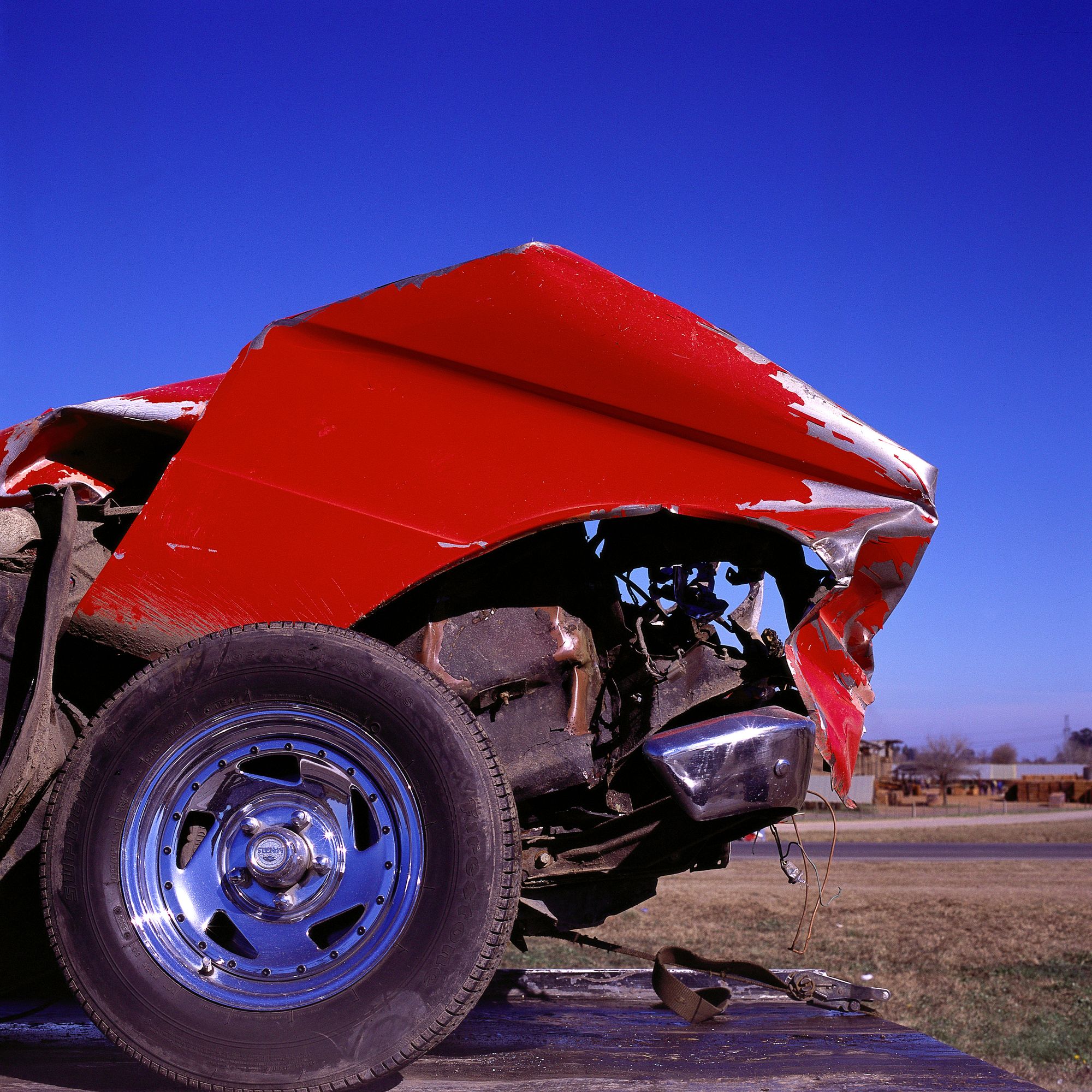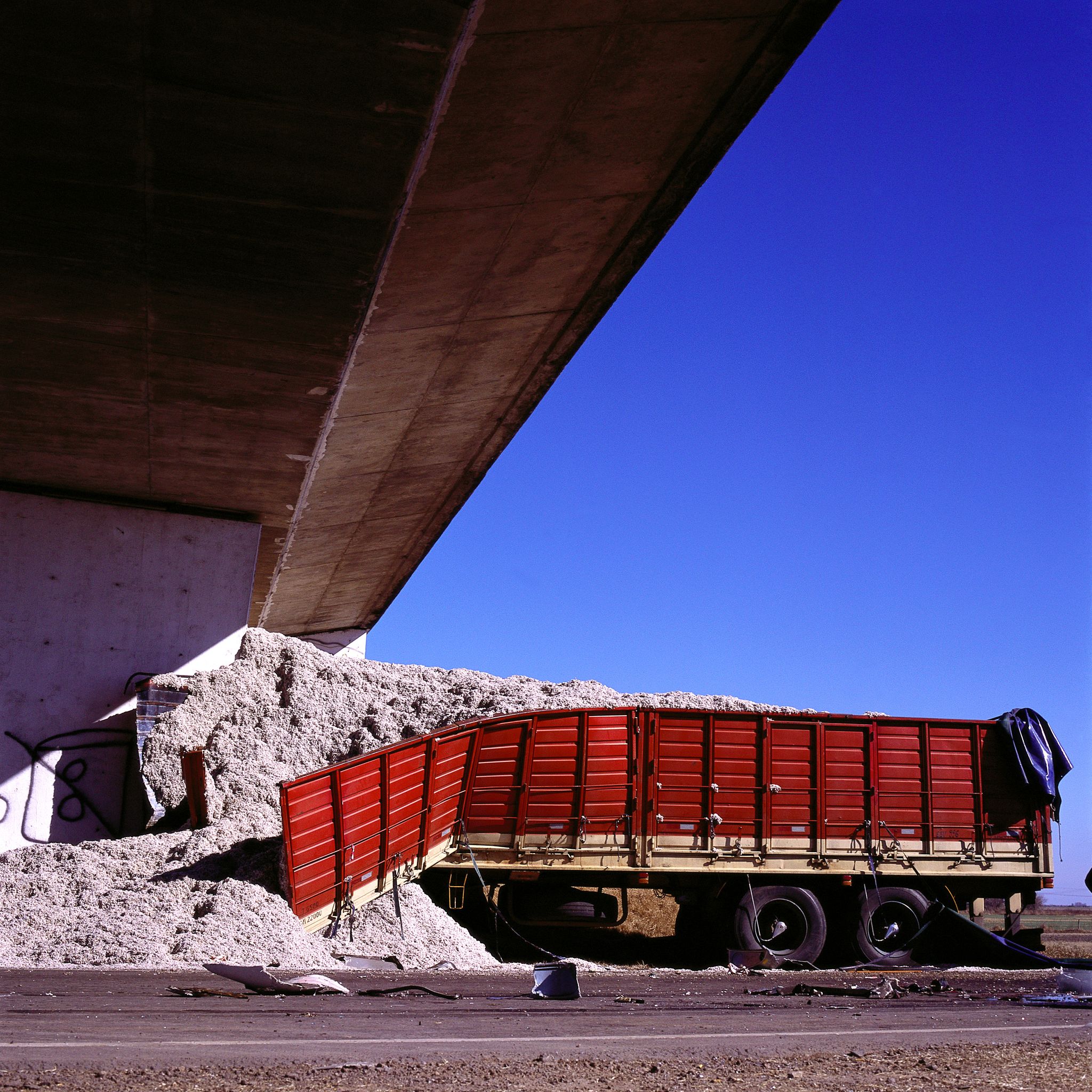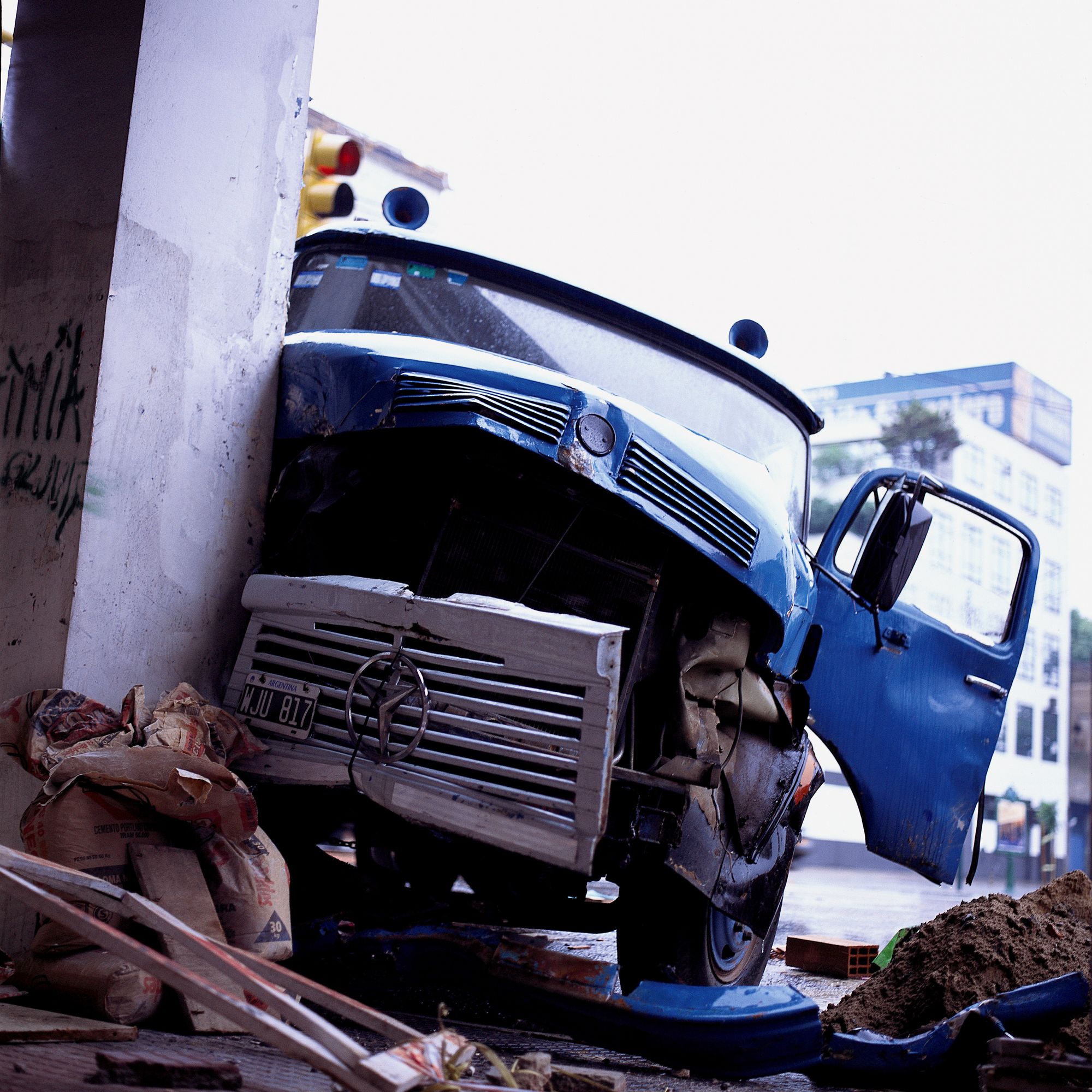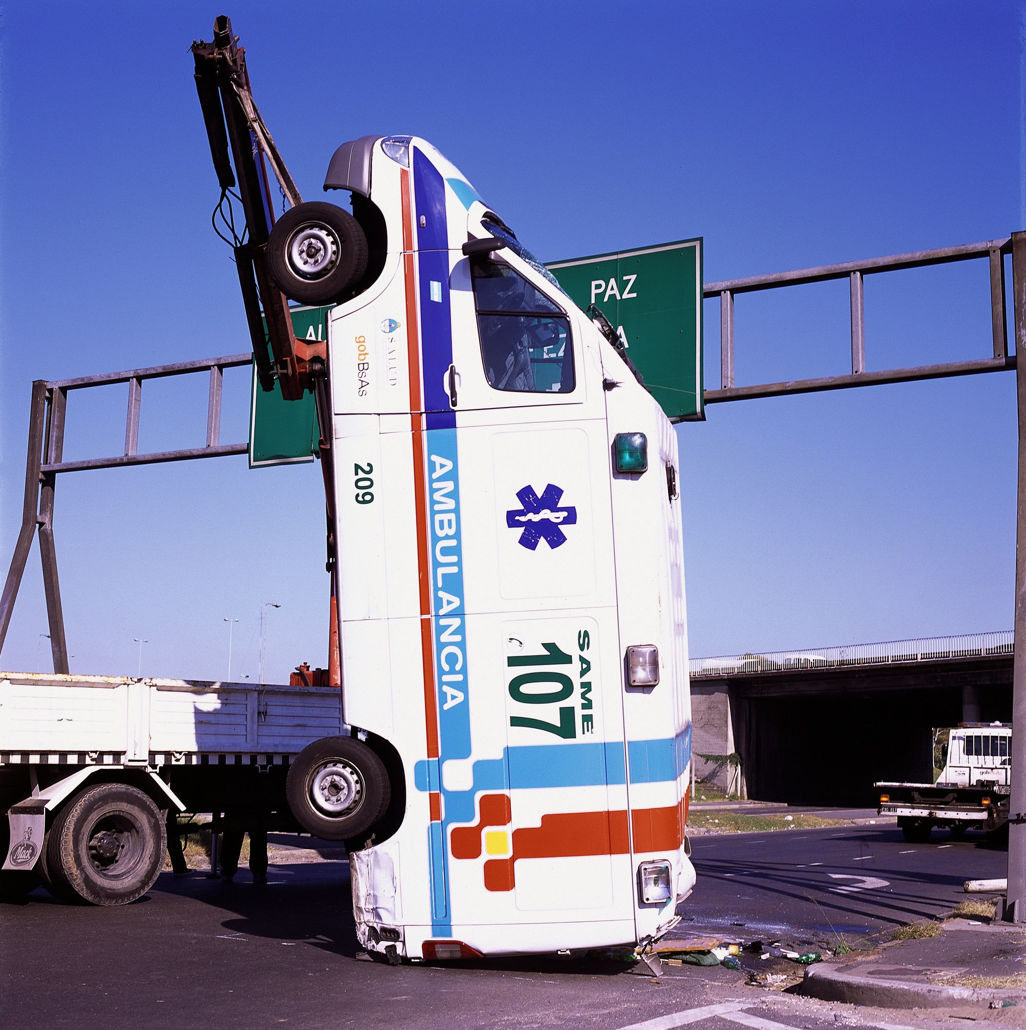Choques (Crashes) is this series' succinct title. Diego Levy’s other series of pictures is paradoxically and tellingly entitled Sangre (Blood). This seems worth contemplating. In Choques, Levy empties the image of its tragedy, eradicating the thick red liquid, though it might still be discerned through analogy. If we had to name this series' two most pervasive colours, I believe they would be the clear, weightless blue of southern skies and the red, the intense red of blood.