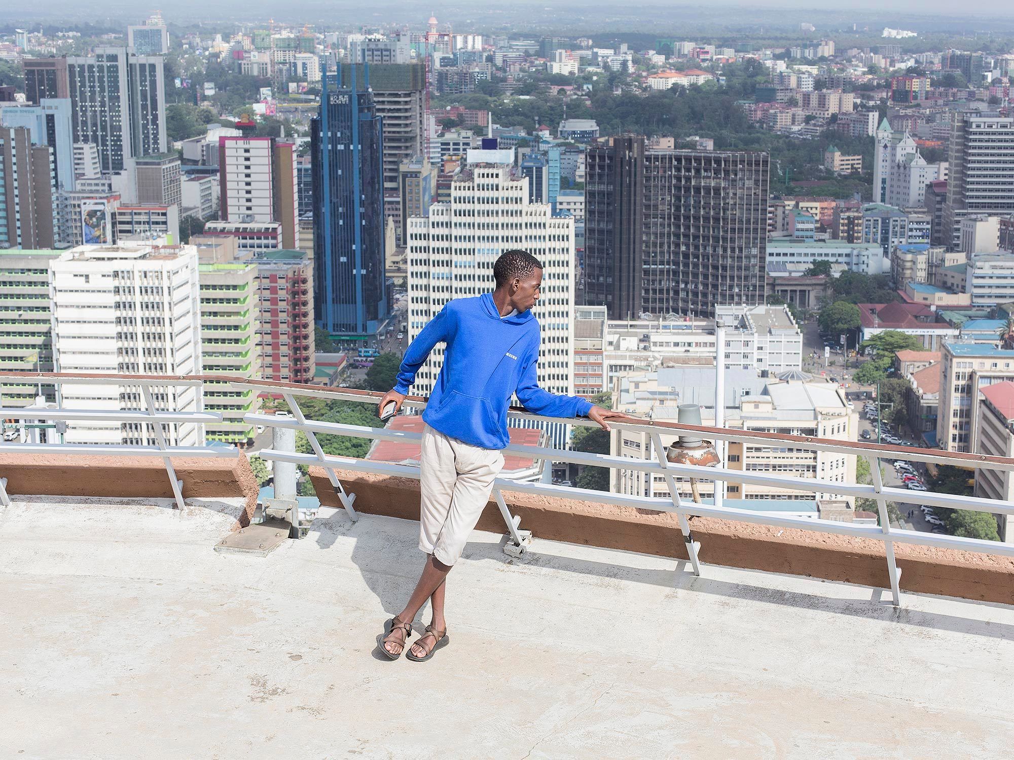 Nairobits student Hashim is looking over the Central Business District in Nairobi for the first time