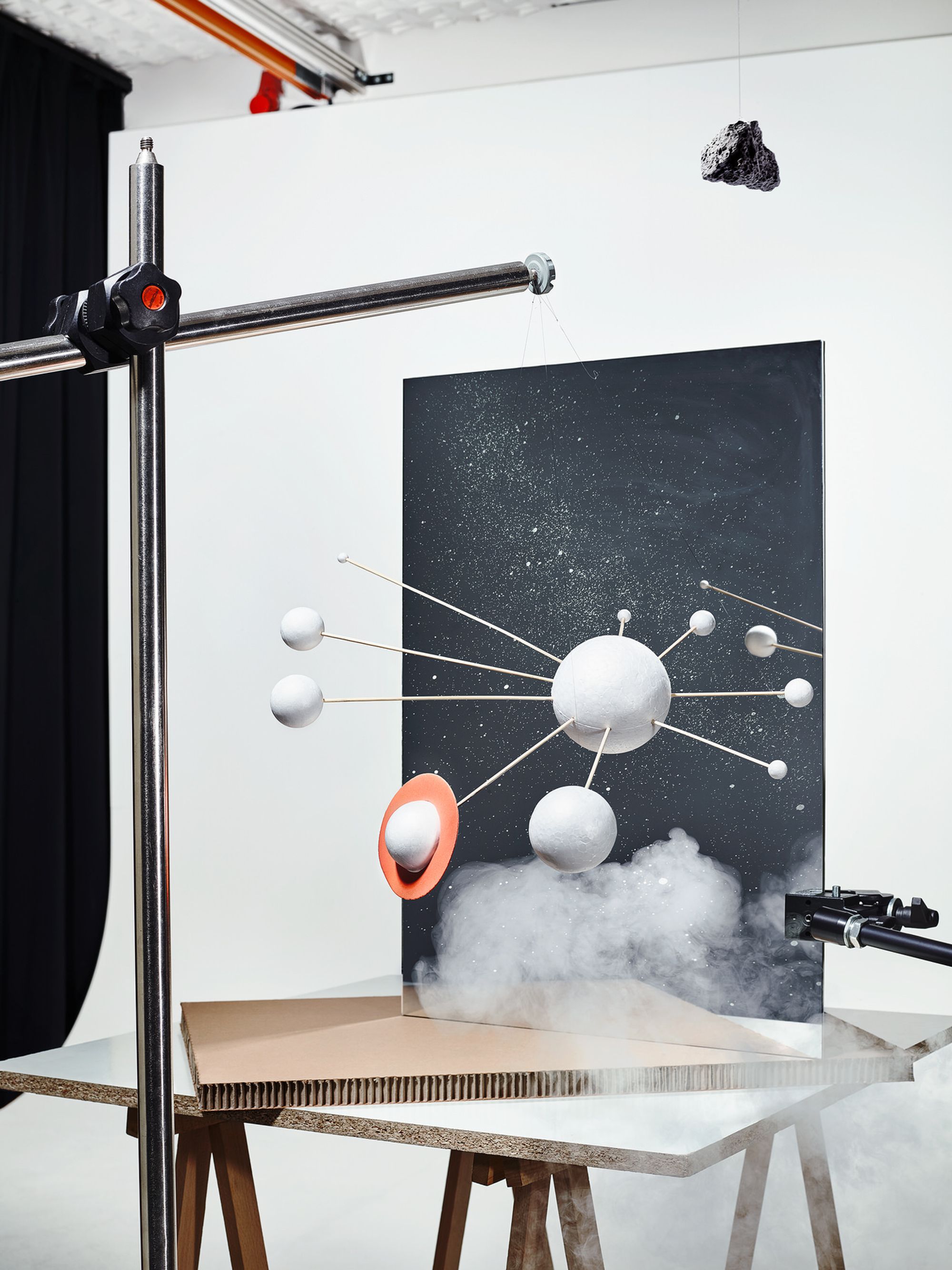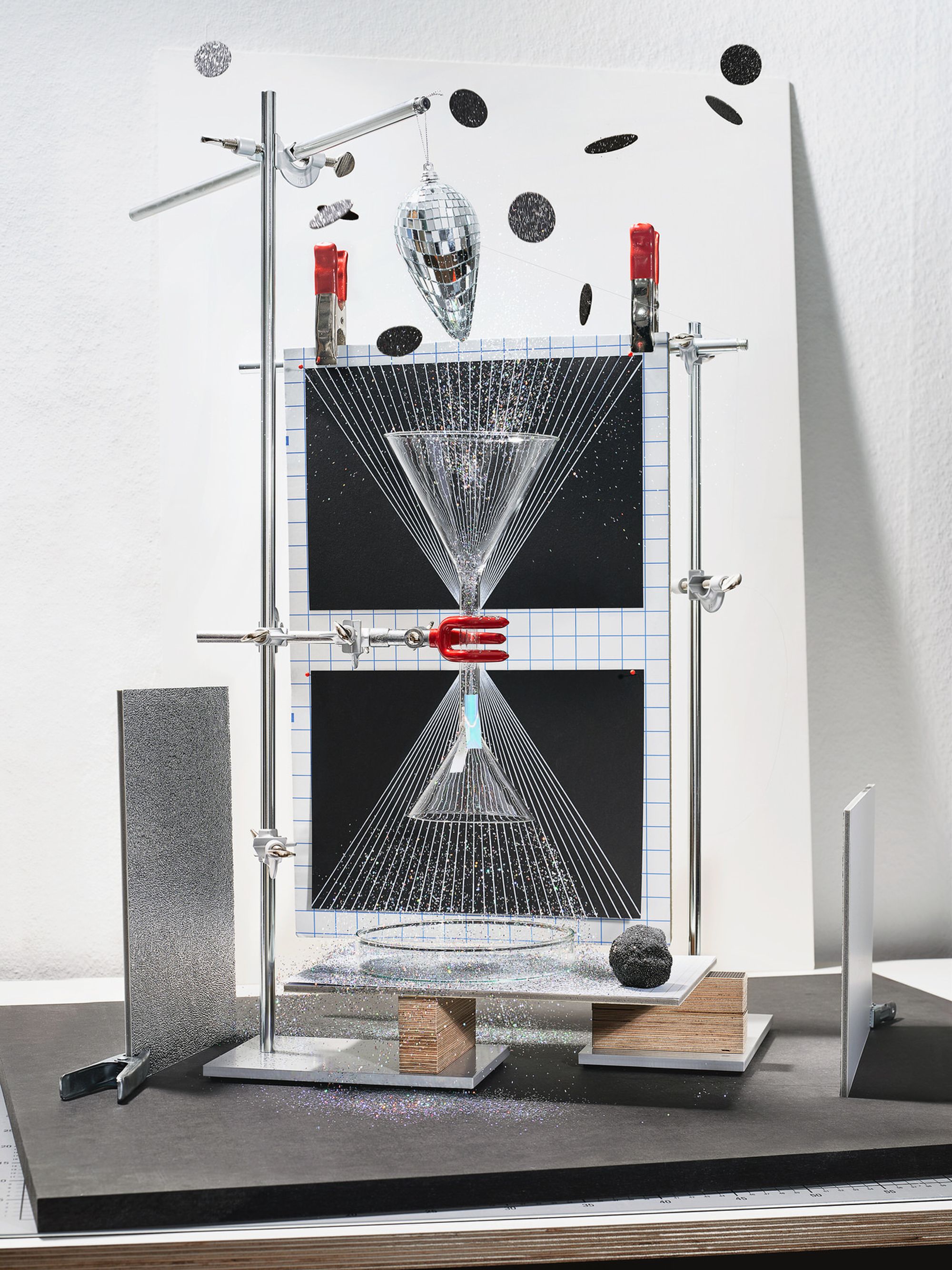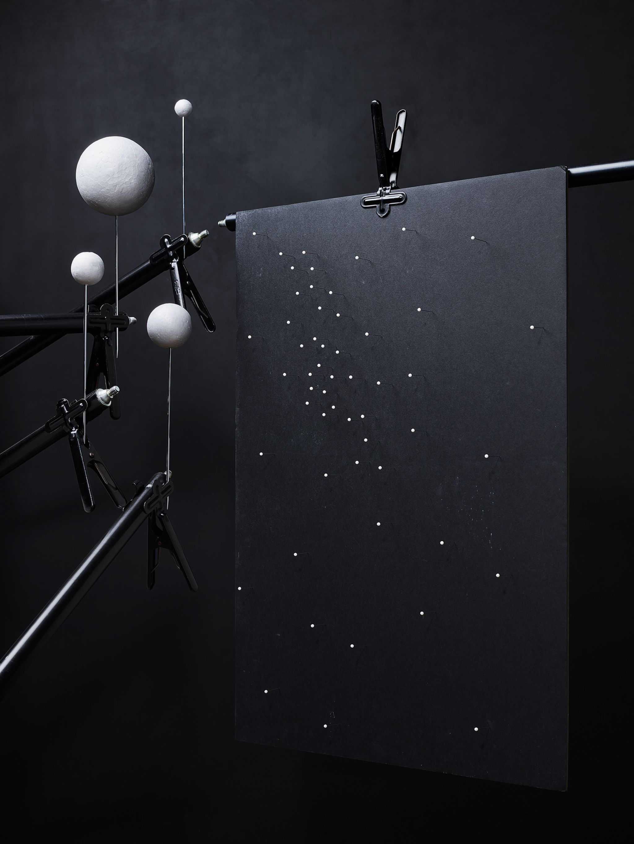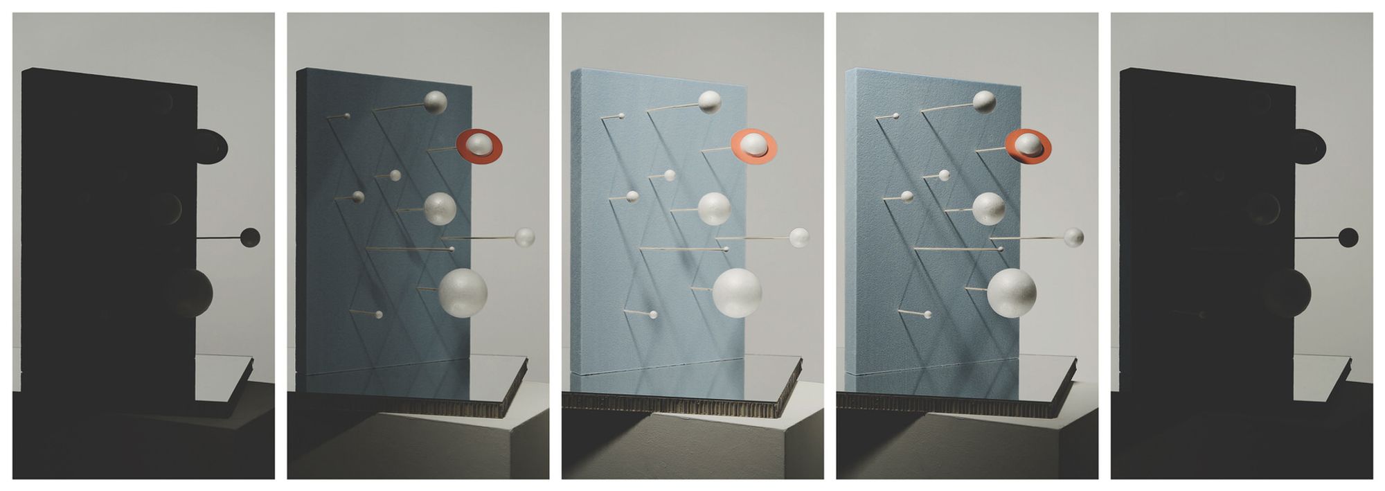 Perception is first of all the recognition of an object or state in our immediate environment with the help of our 5 senses. With the help of technical devices, we can exceed the limits that are set biologically for us and expand them many times. The perception of such, invisible subjects and states therefore often first takes place in an abstract way with values that are assigned to certain parameters and can be visualized based on this. The clear way of representing values is in a graphic, drawing or scale model. Since size relationships play a decisive role here, in some cases you are forced to not display the relationships of objects proportionally to one another in order to be able to ensure that they are clearly recognizable. The series “Cognition” deals with this topic by using terms from the fields of physics and astronomy and presenting them in simplified models.