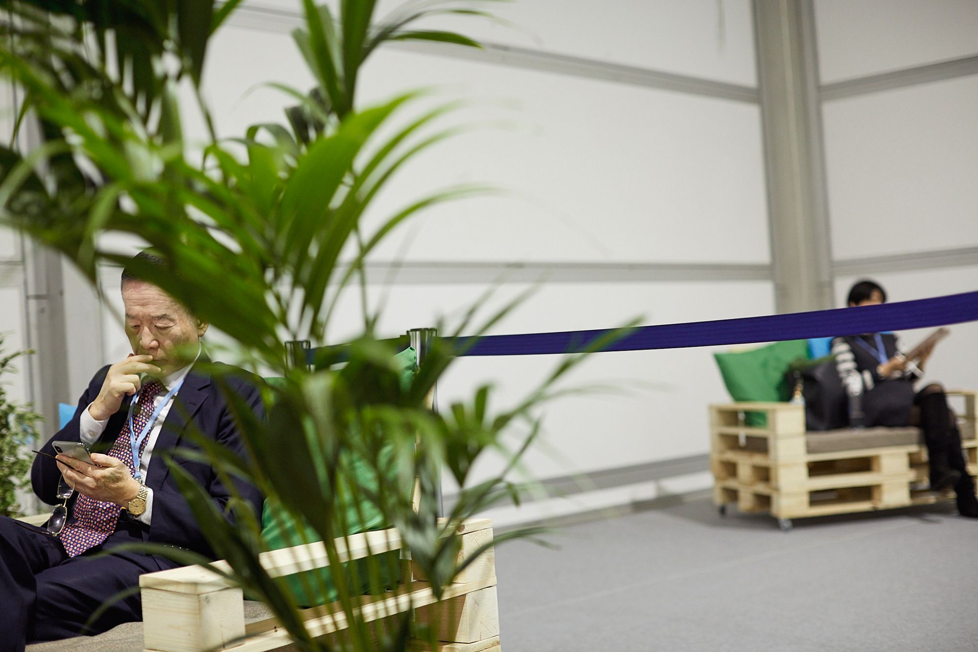 The various situations of negotiations, the press conferences or so-called photo opportunities and the ecological brisance of the event can only be guessed at. The photographer approaches the event with an ambivalent attitude. She tries to analyse the event and finally describes her personal counter-draft. The mediality of the event - the staging for photographers and camera(wo)men - is reflected in the pictures and forms a kind of leitmotif.