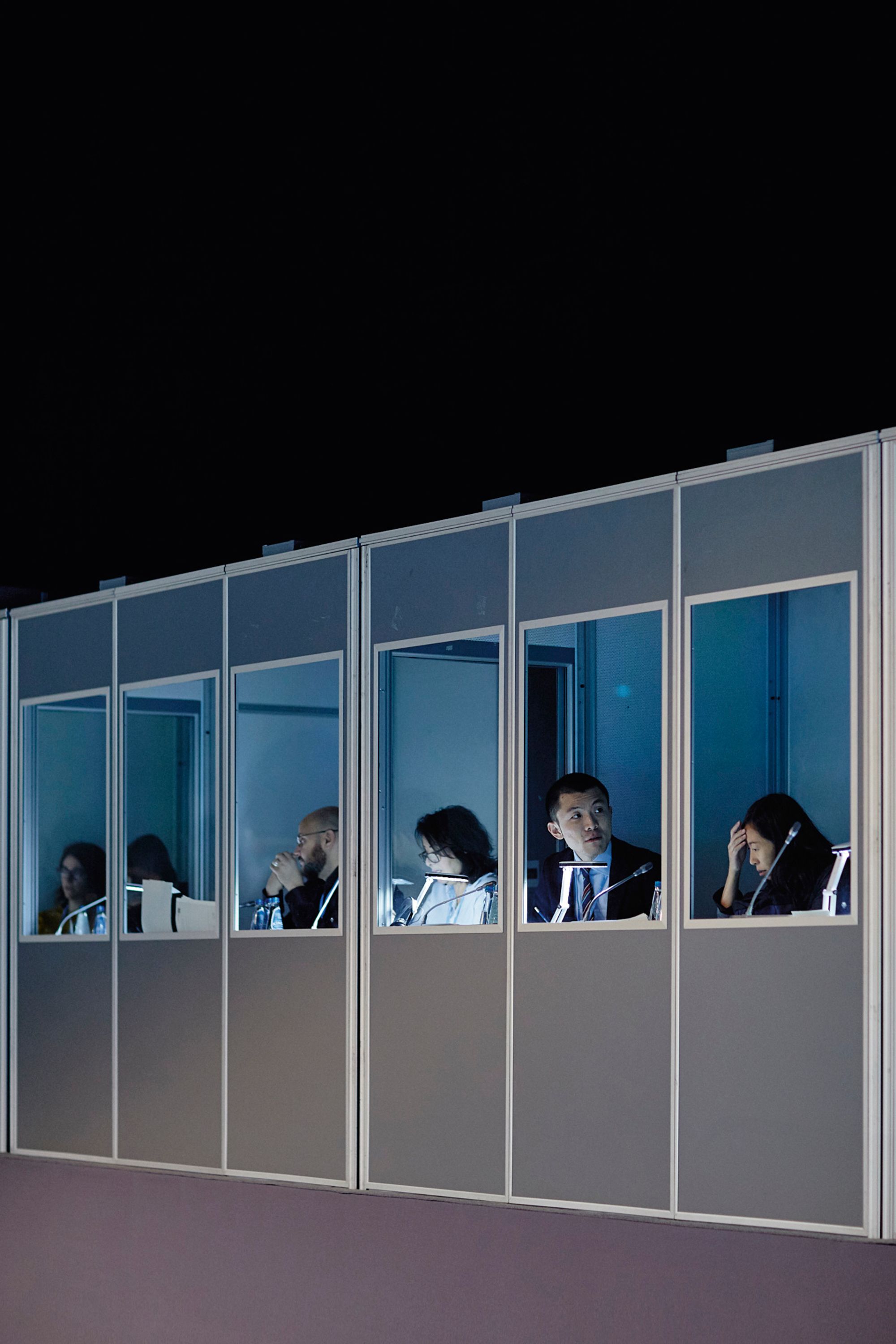 Die Beharrlichkeit der Maßnahmen [The Persistence of Measures] (2018/19) was photographed in and around the grounds of the climate conference (COP24) in Katowice, Poland in December 2018. The photographs remain fragmentary and attempt to question the visual representation of the participants from a position of distant proximity. The arrangement of the images also refuses to point suggestively and opens new spaces, while the gaze of the viewer is repeatedly blocked or reciprocated.