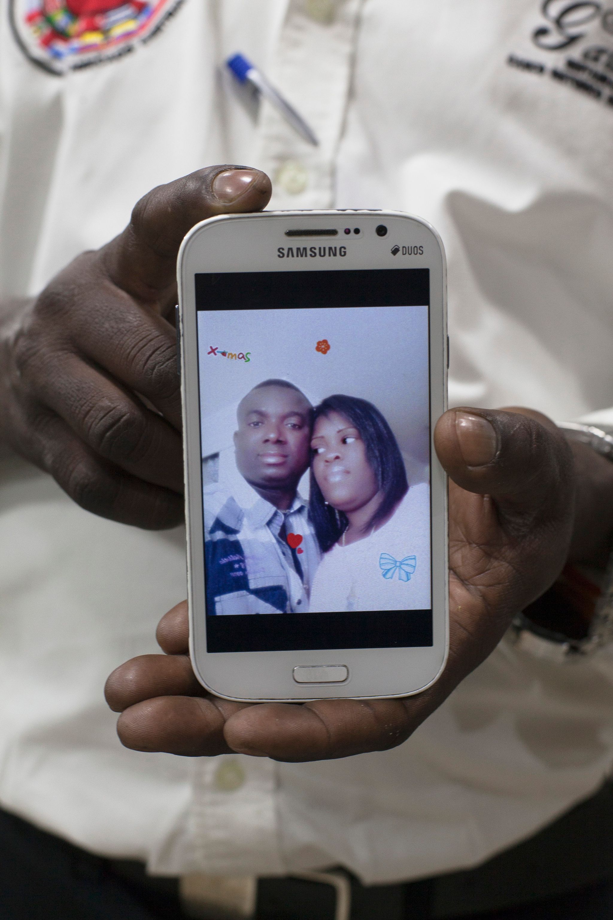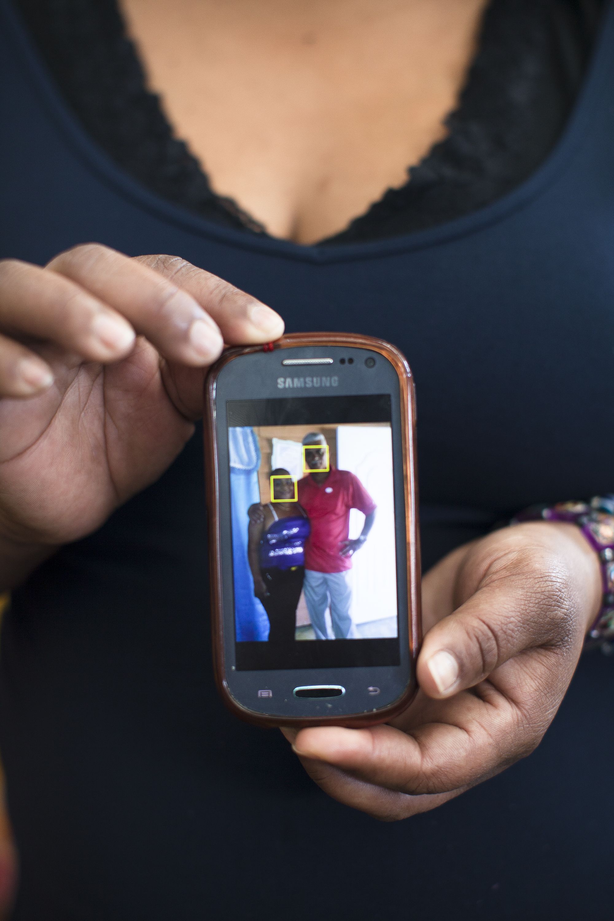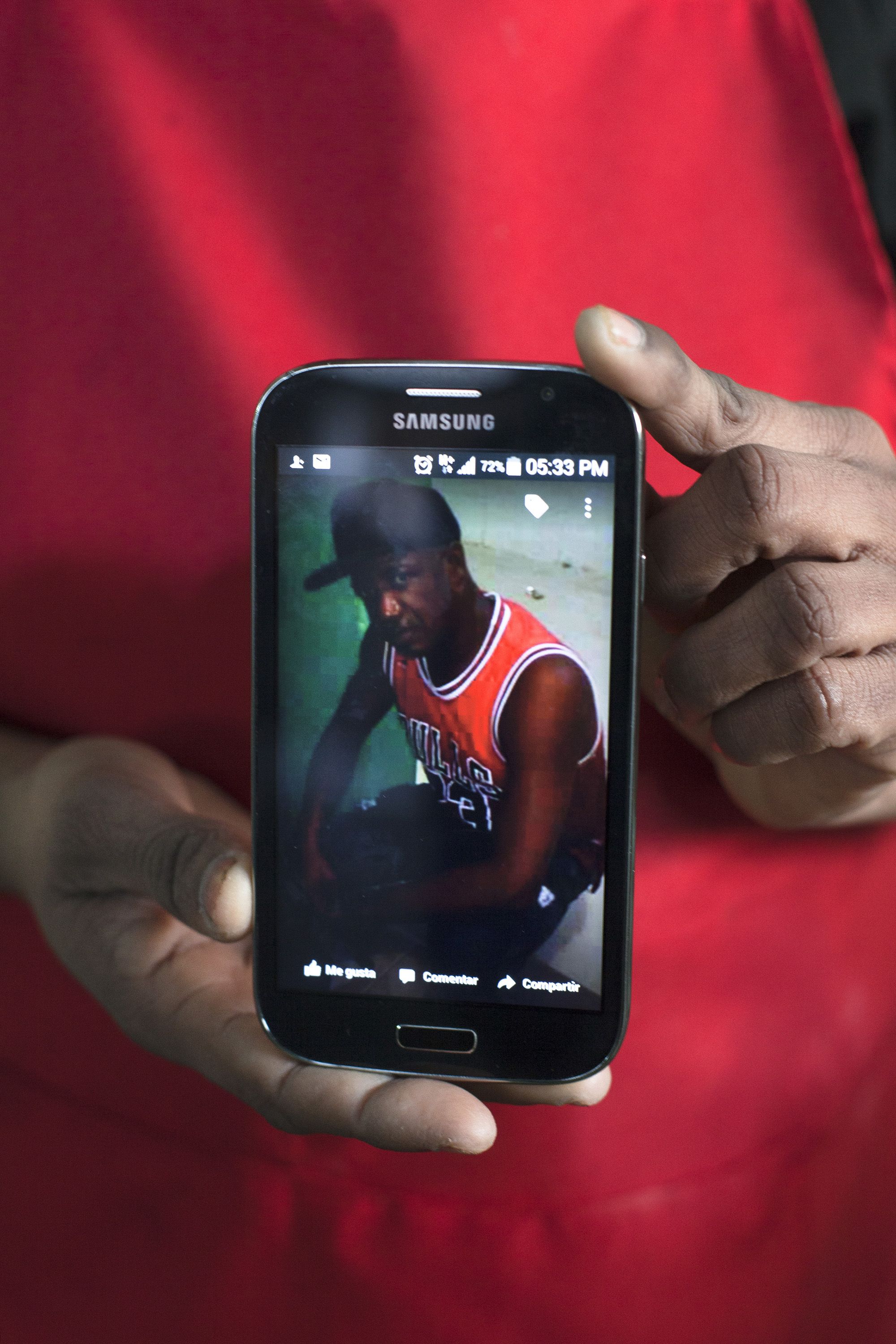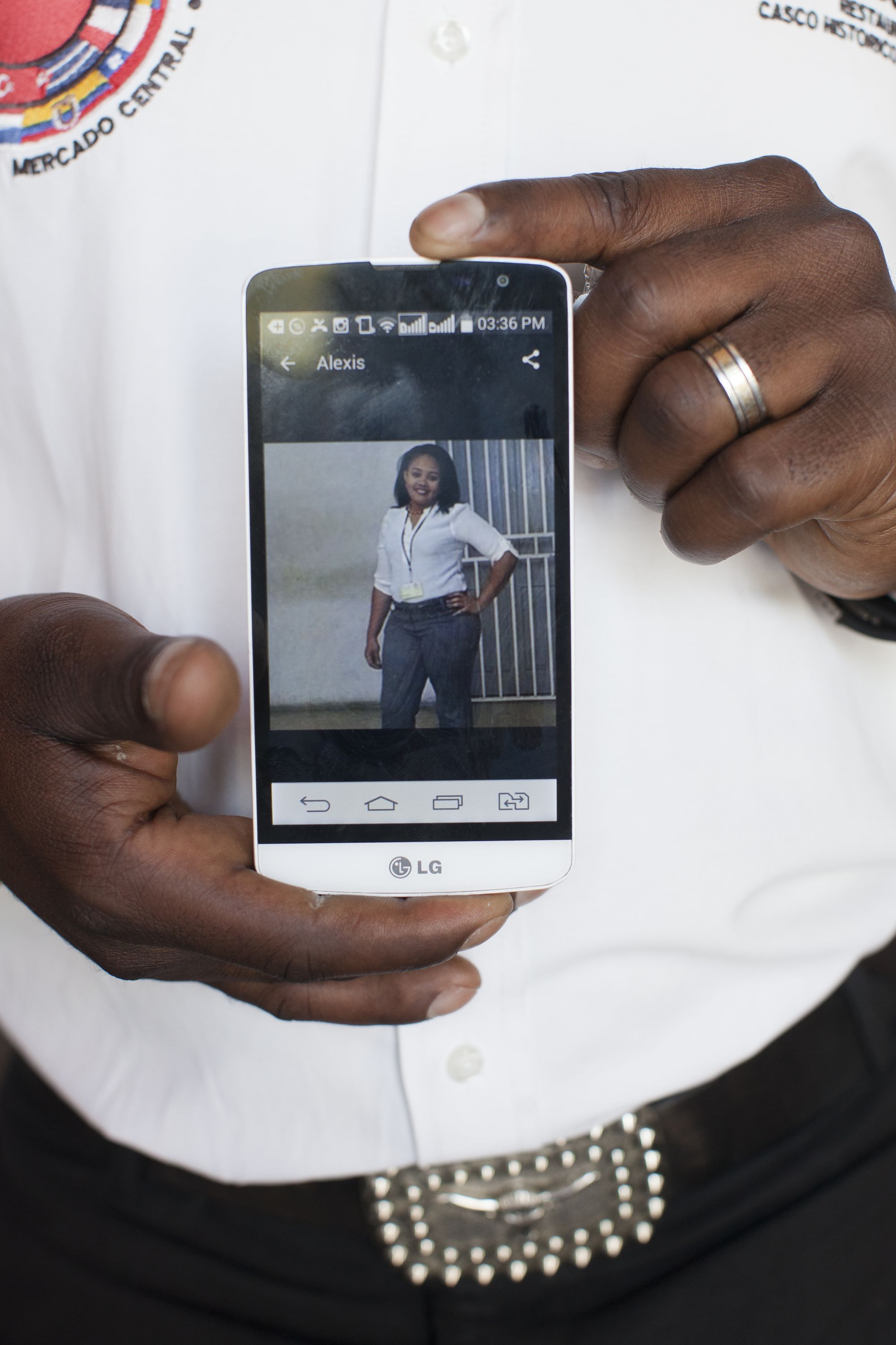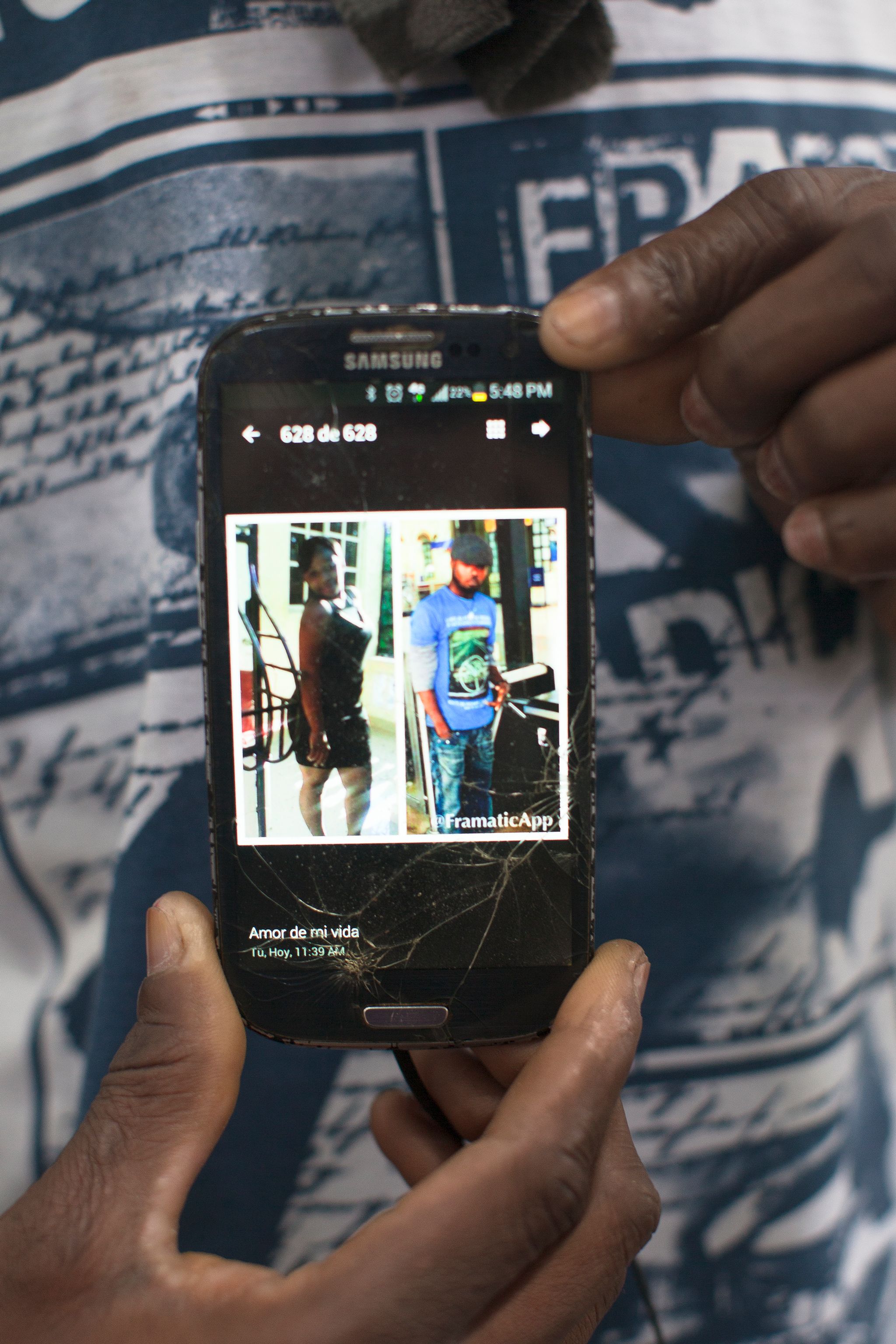 Joshua & Marie his partner from Haití ( today She lives in New York City). "We communicate by Facebook, e-mails and WhatsApp. I put different love song as ringtone for when she calls me" Joshua works in a restaurant as a welcomer. The have been together for 10 years now and 6 months to the distance. Santiago, Chile. July 2016