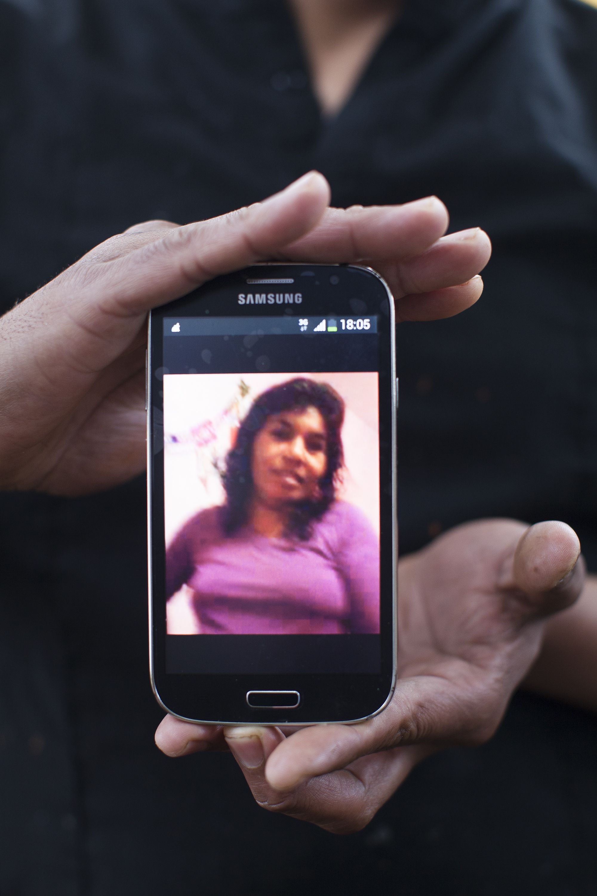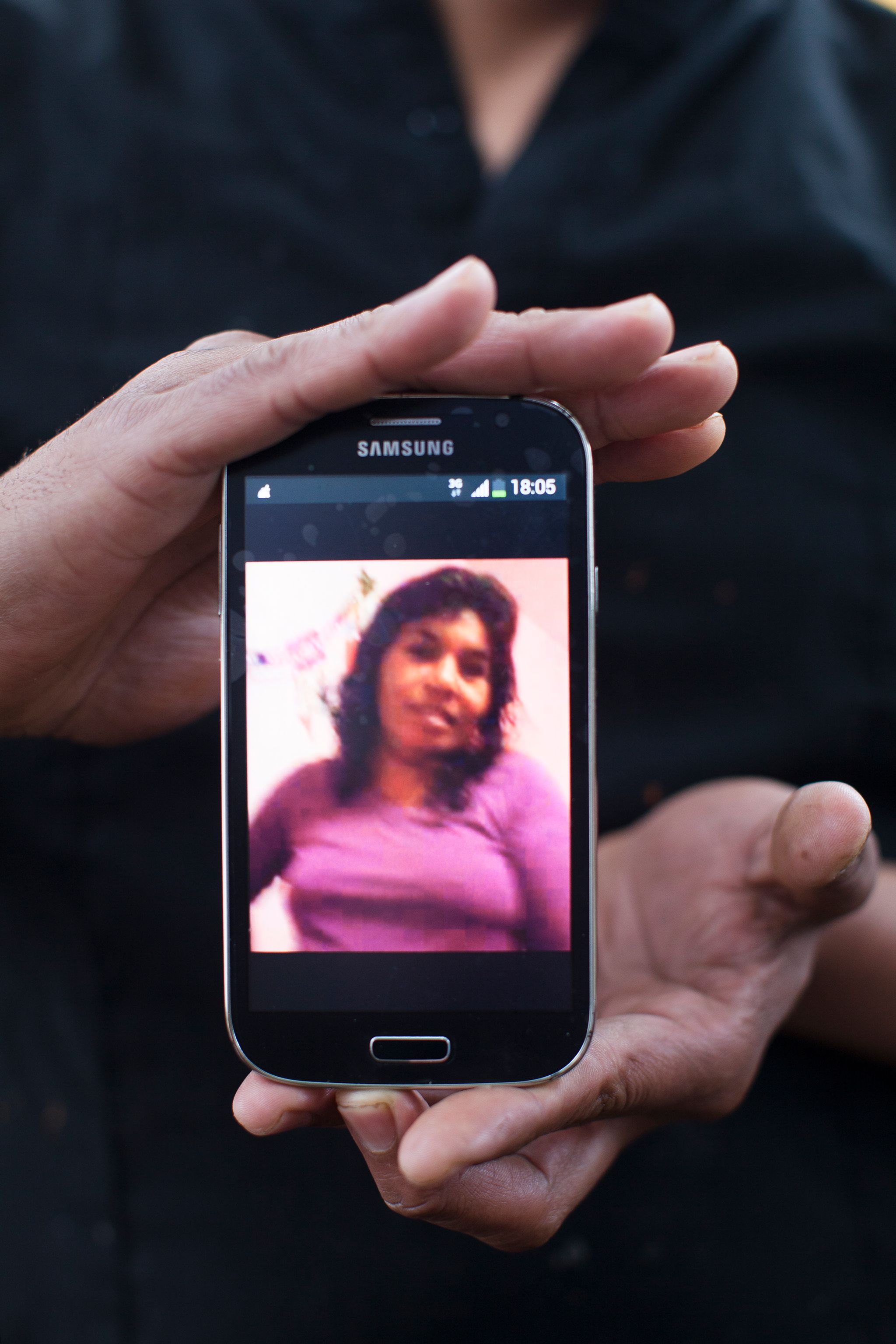 Migrants from Dominican Republic, Peru, Haiti, Venezuela, Colombia and Mexico show photographs of their significant others left behind in their home countries in order to come to Chile in search of work.