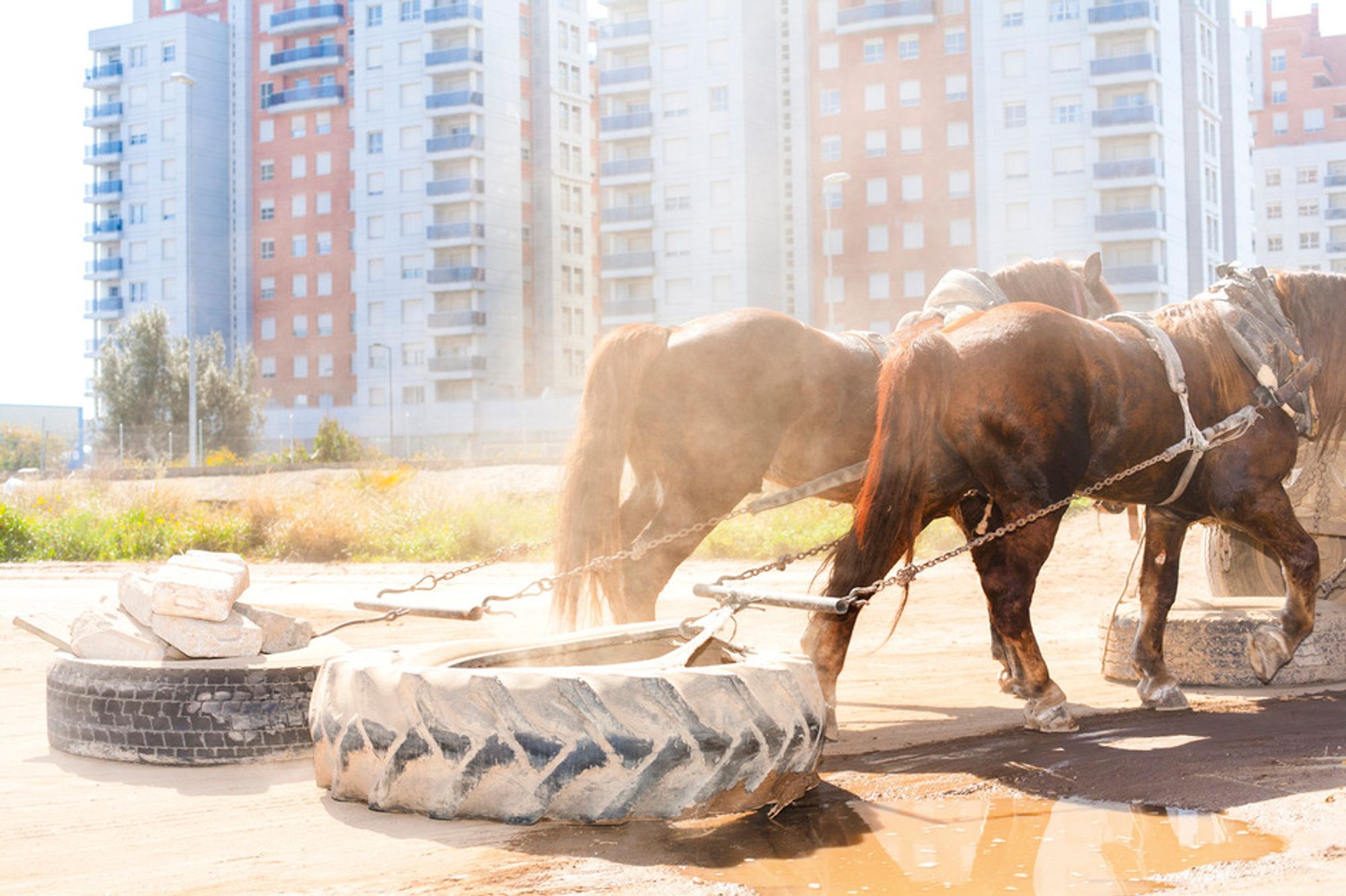 In his new work, El porqué de la naranjas [why oranges], Spanish photographer Ricardo Cases does not document the surface symptoms of reality, but instead renders the non-visible, the mechanistic. In his immediate surroundings – the fertile region of Levante in Spain – the photographer reveals ephemeral moments that might otherwise go unnoticed. Out on the streets he sets out to make visible the laws that regulate the universe, hunting down the elementary participles in the same vein as a nuclear physicist attempting to identify the Higgs particle. Cases uses the landscape as a laboratory, a place where these mechanisms can manifest themselves freely. The work is not a portrait of Levante itself, but of the spirit of Levante, and thus of the spirit of Spain as a whole.
