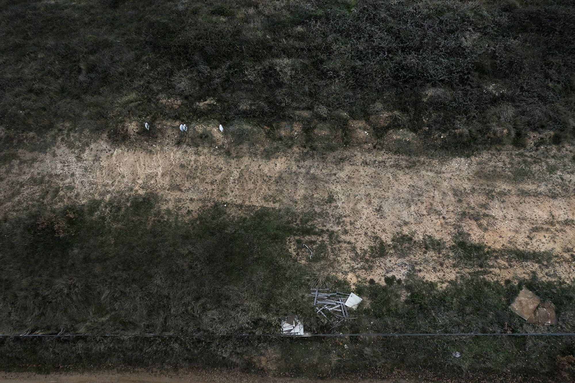 A refugee and migrant massgrave at the border between Greece and Turkey along the Evros River. There are no official record of the bodies buried here but estimates mark it as 450. Most of the bodies are never identified, only two are marked with tombstones and clear names. The gravesite is unmarked and fenced.