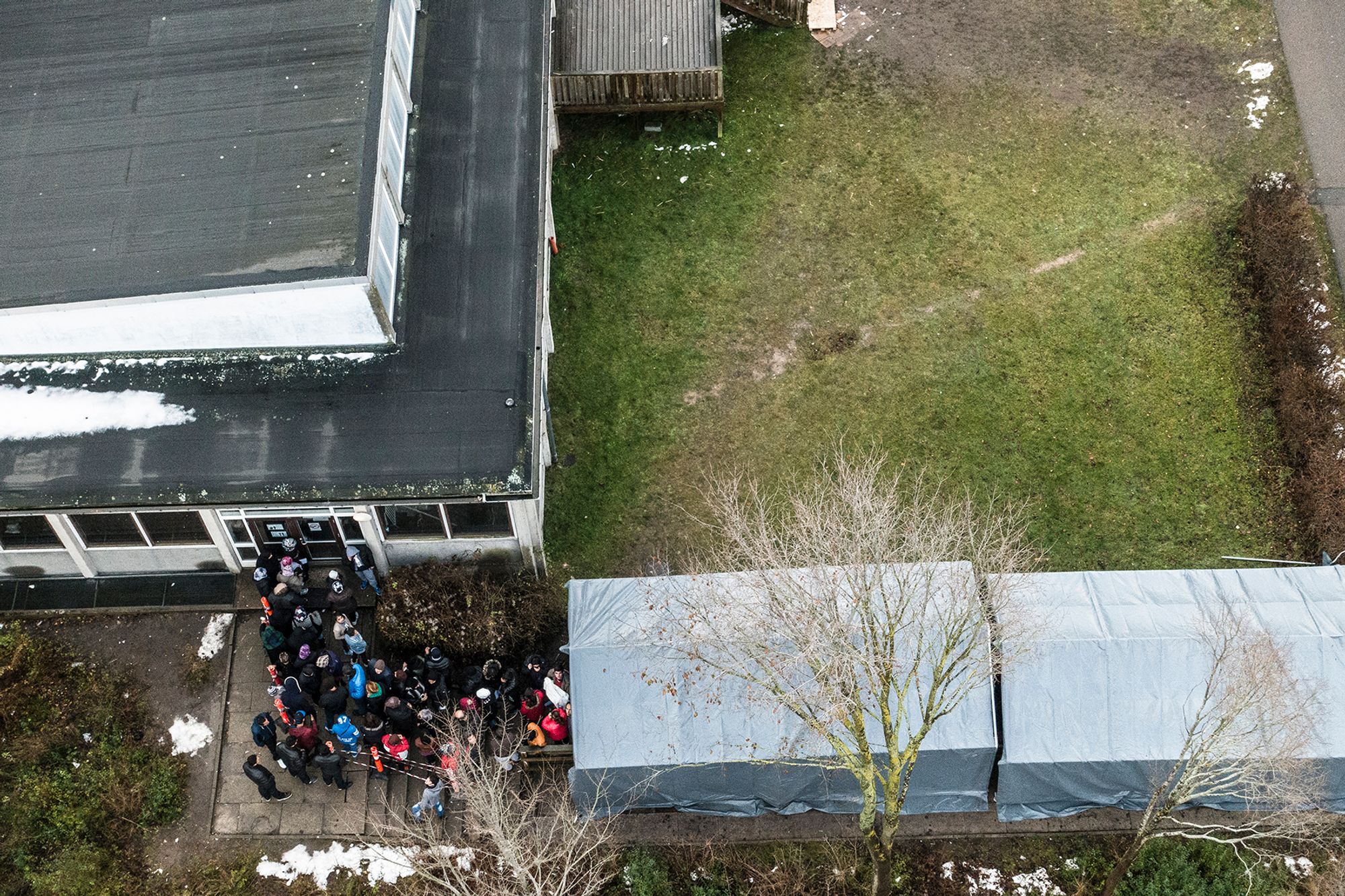 Asylum Seekers in line for their daily hot meal at the asylum center in Auderød, Denmark.