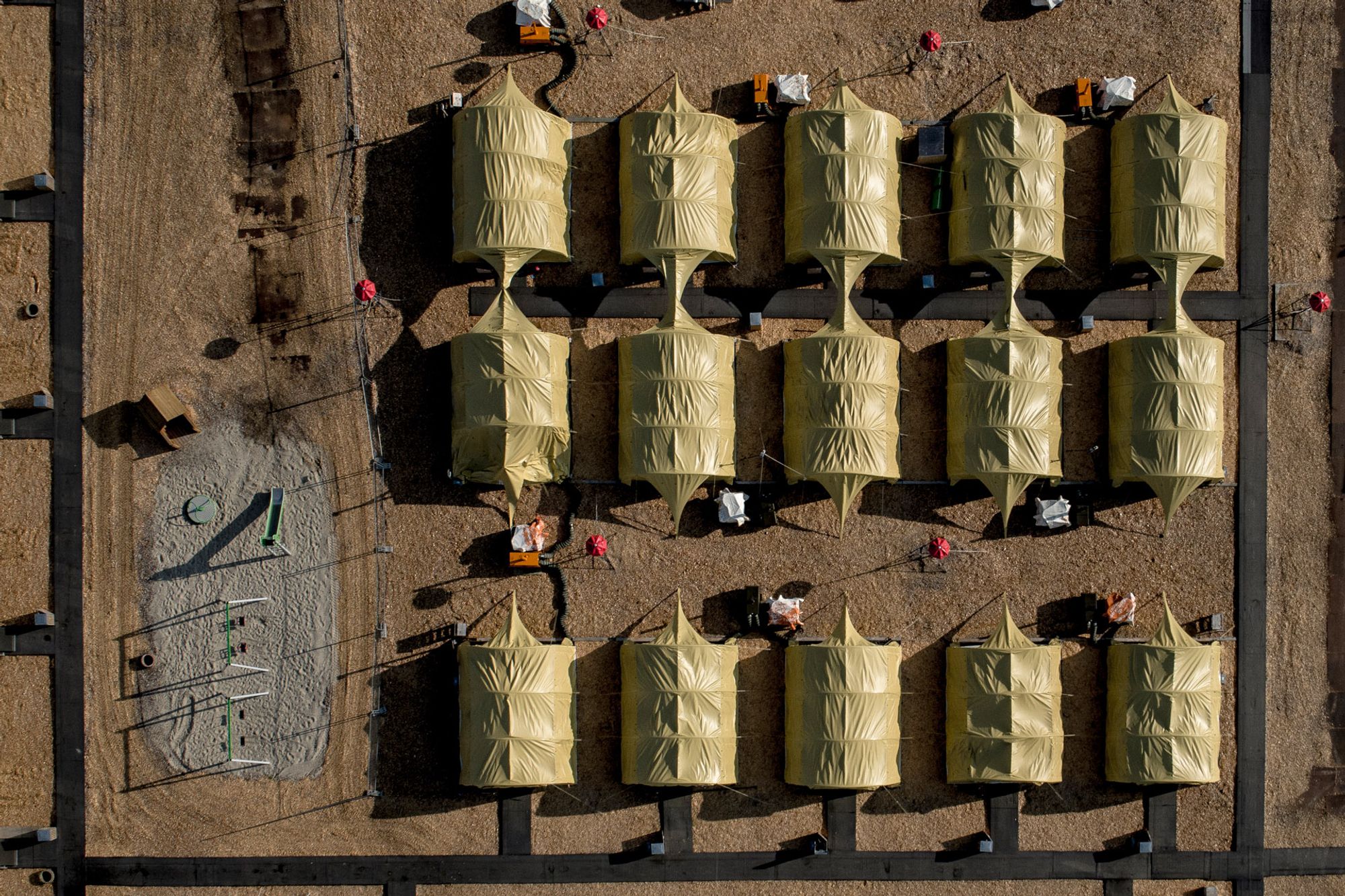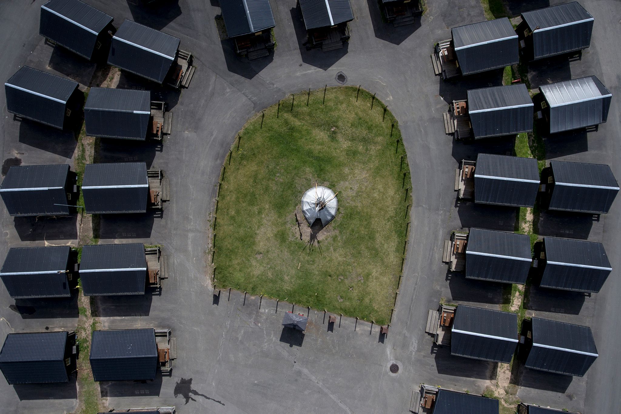 15. September 2016. The now empty asylumseekers tent-center in Haderslev, Denmark. The camp was opened in January 2016 to accomodate the rising number of asylumseekers reaching Denmark. Since the opening this camp have been highly critisized for being unnecessary as the regular Danish asylumcenter has free space. 3. September 2016 the camp was closed down and the almost 200 male inhabitants were moved to other center arounds the country.