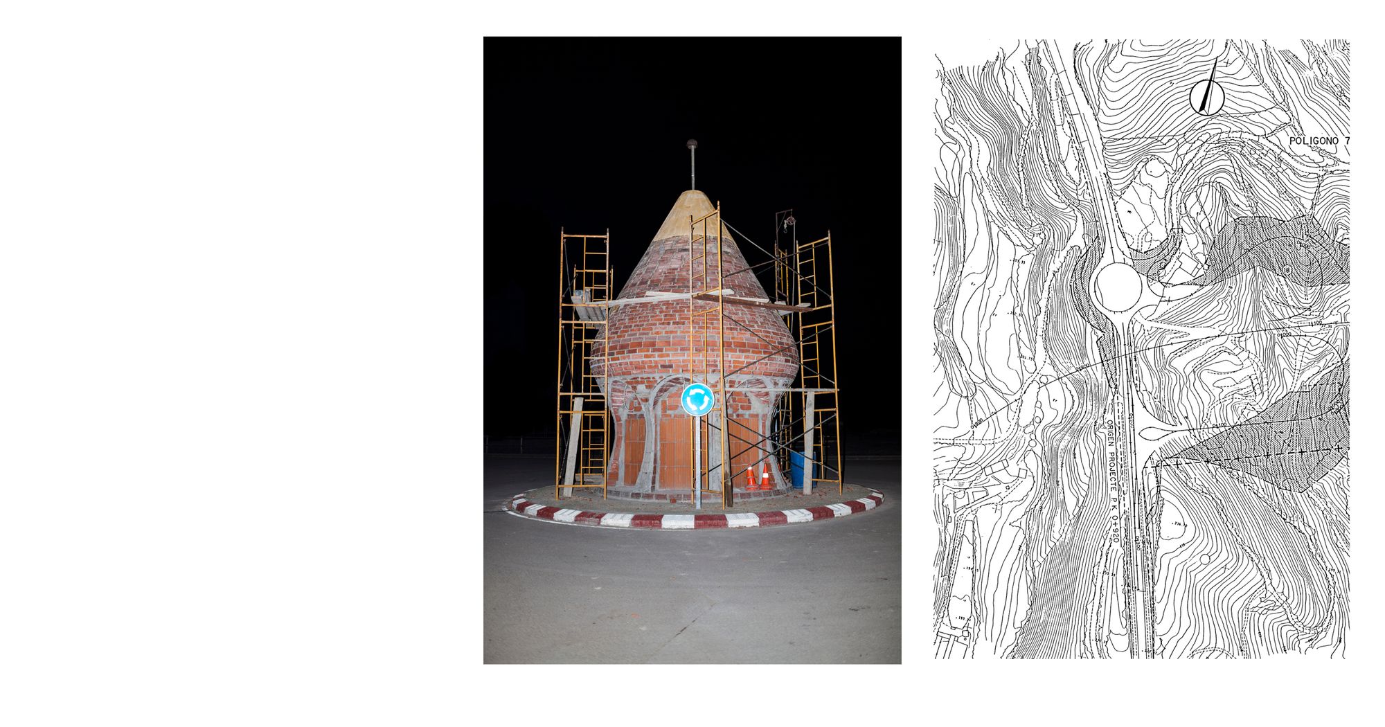 Vilobí d’Onyar is just another name on the map; one of those tiny places that nobody notices on the anything-but-ingenuous representation of the world of maps. Though you would be hard pressed to find any tourists in Vilobí d’Onyar, there is a whole communications network that allows the world in constant motion to function. There are places which, for the four corners of the globe to be connected, seem forced to exist disconnected from the very world they help to connect. Invisible consequences and outcomes of how the romanticism of travel has been replaced by the pragmatism of transit; and how structural functionality of widespread development obstructs the passageways of a given landscape. Faced with the immateriality of many concepts, there is nothing quite as corporeal as progress. Especially when it manifests through a hoard of architectural elements that prove how it is impossible to think of the world in terms of nature versus culture any more. Landscape is action – it is what has happened to the land, what is happening to it and what is still to happen. Landscape is also what we do with it; it is one possibility among others derived from the subjective experience of self.