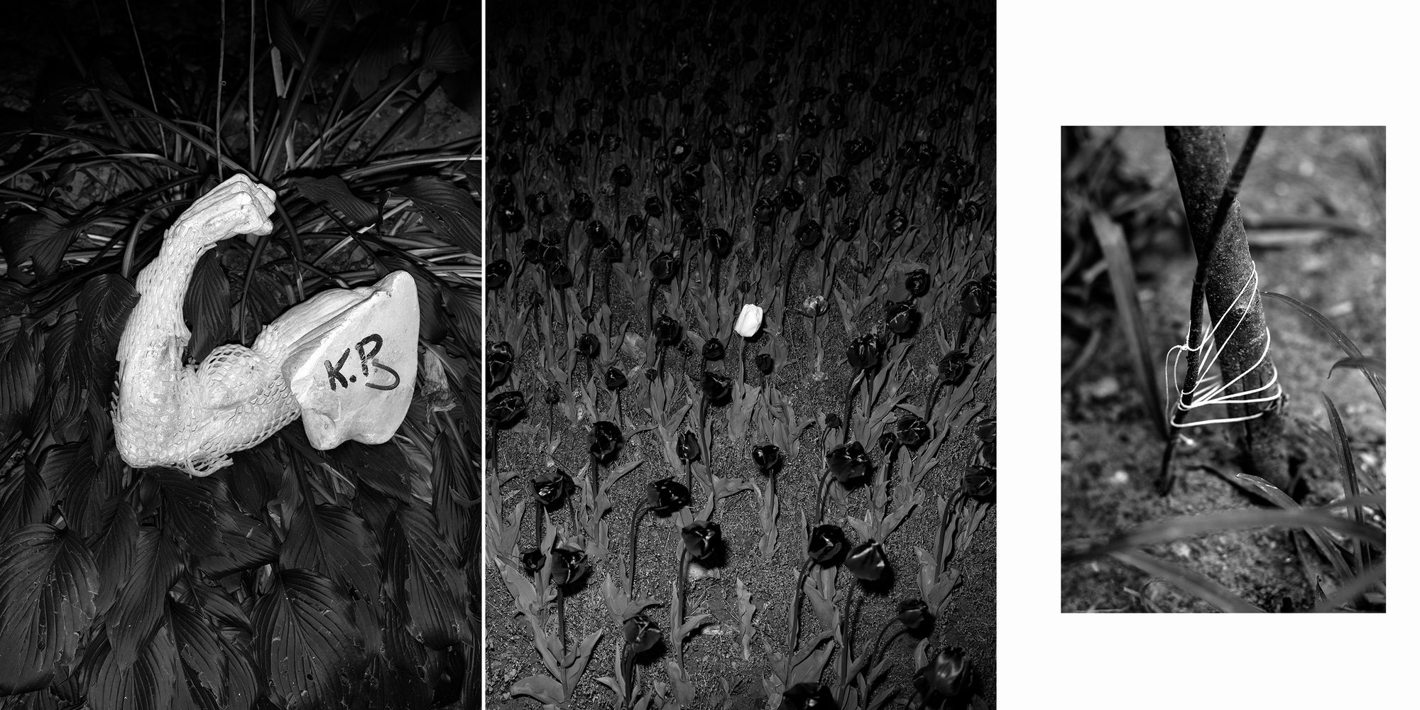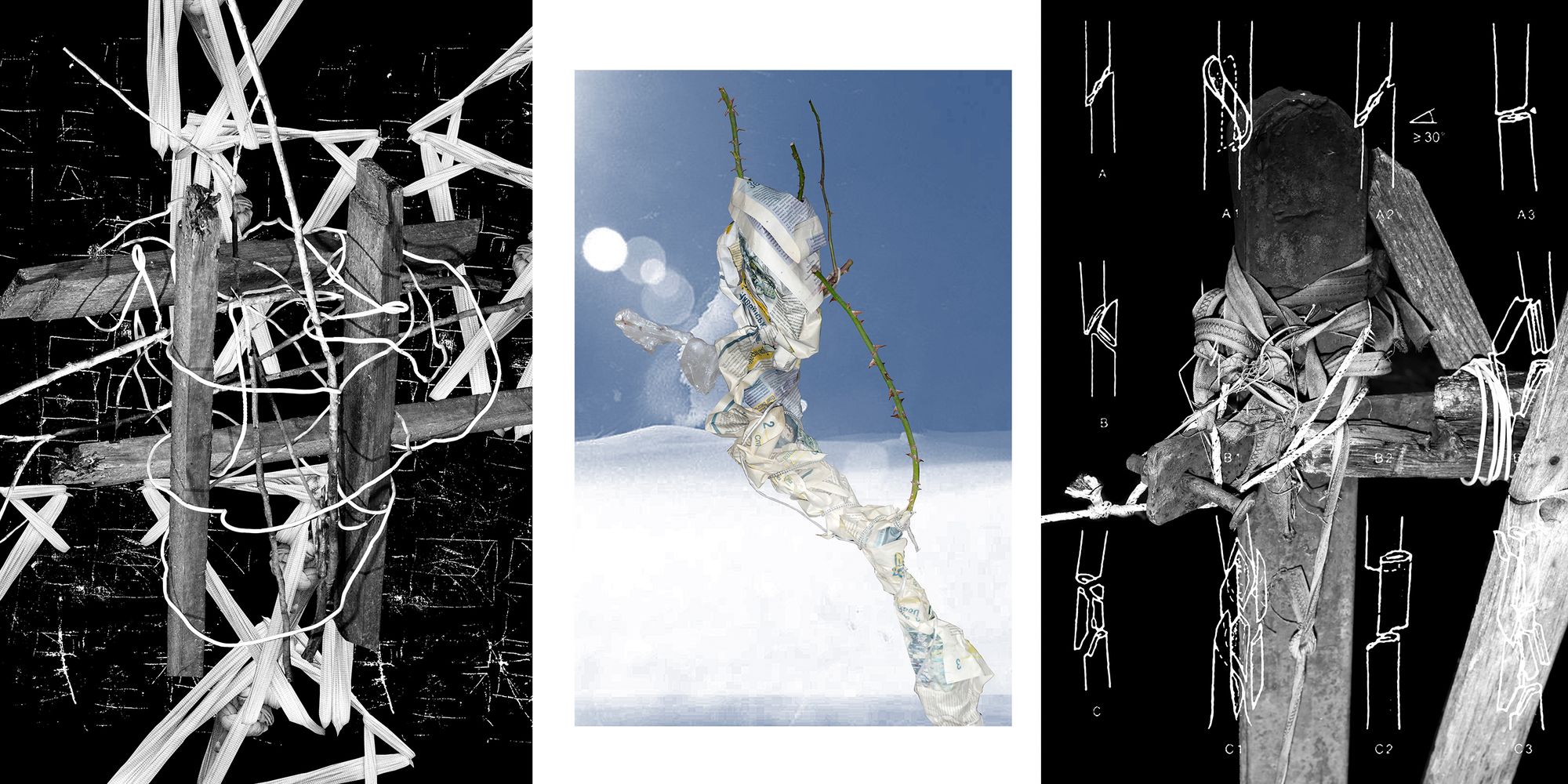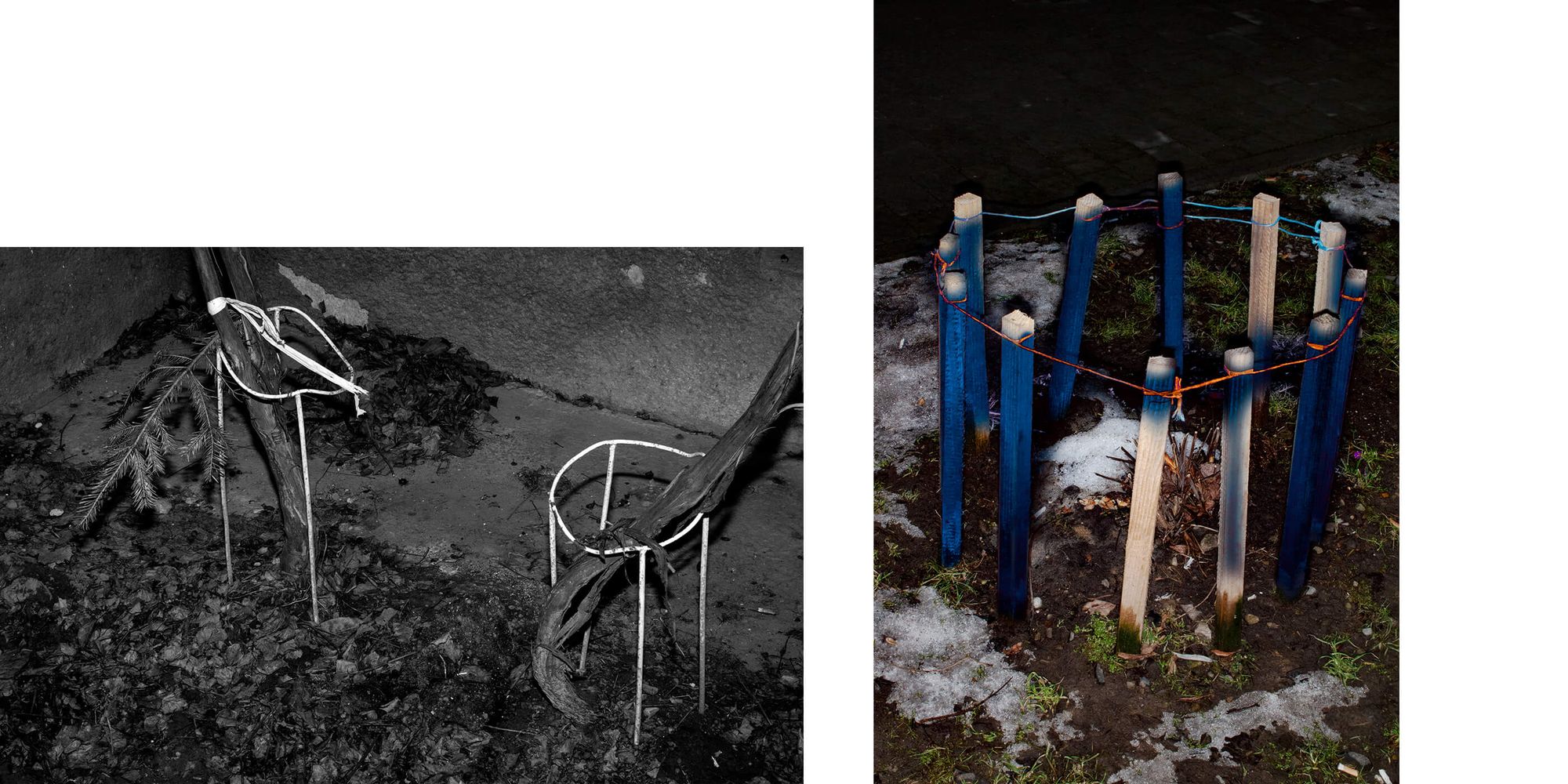 Tender plants tied with remnants of old clothes, remnants of something very human: either stockings or pieces of bed sheets, fine flowers ornaments that once used to be a pillowcase someone slept on, colourful ribbons that used to be dressed for celebration.