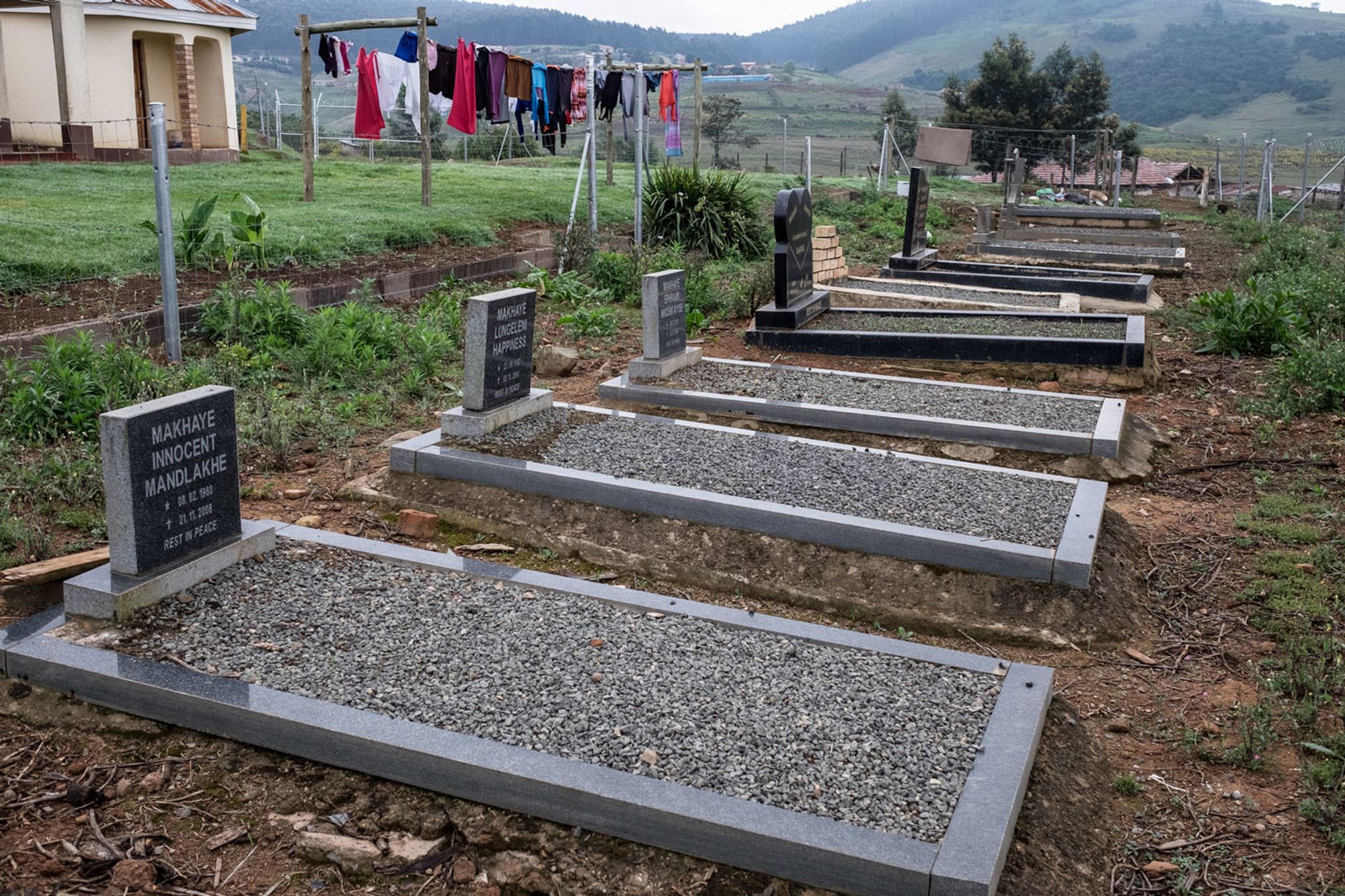 Graves in a house yard in Vulindlela, KwaZulu Natal. Today, HIV/Aids is the leading cause of death among adolescents in South Africa. An estimated 2000 South African young women between the age of 15-24 years get infected with HIV every week. Vulindlela, South Africa, 2017.