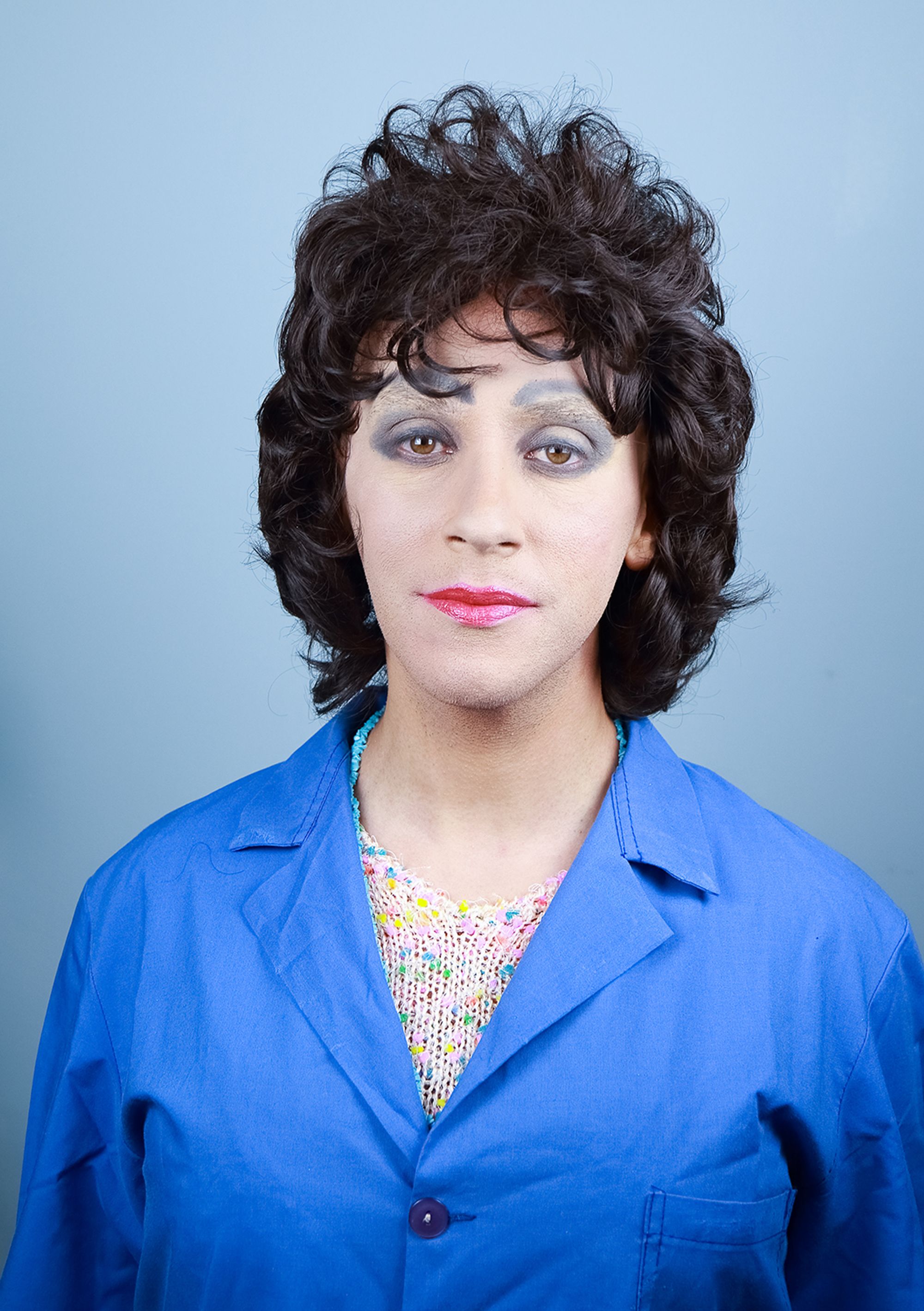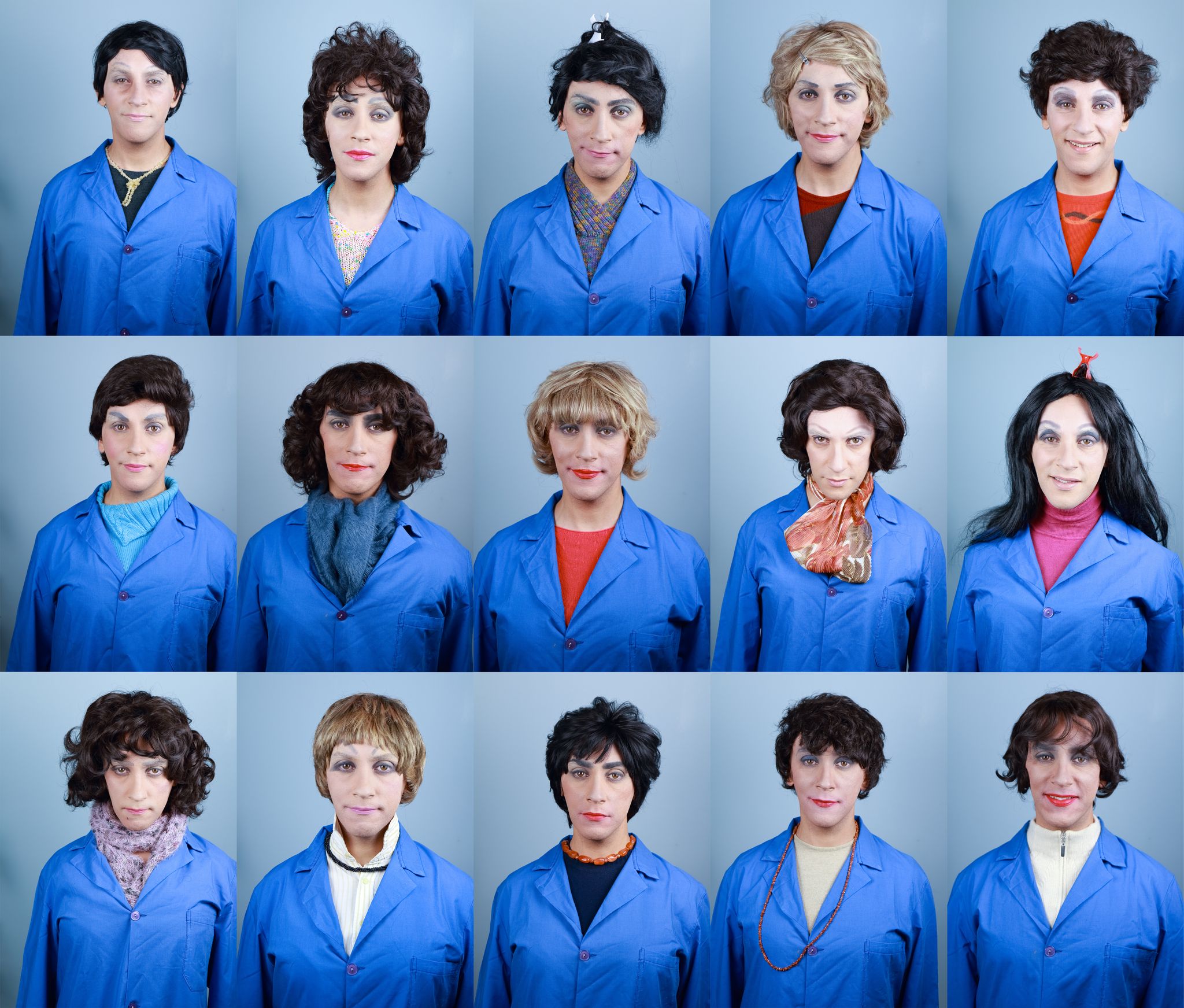 Fifteen female faces I have impersonated. The 70's period was in their eyebrows and hair, but I don't know anything about their life, only snippets that my mother told me. So, I have given an identity and a little story to each of them to narrate the working condition of Italian Women during the 1970's and 80's.
