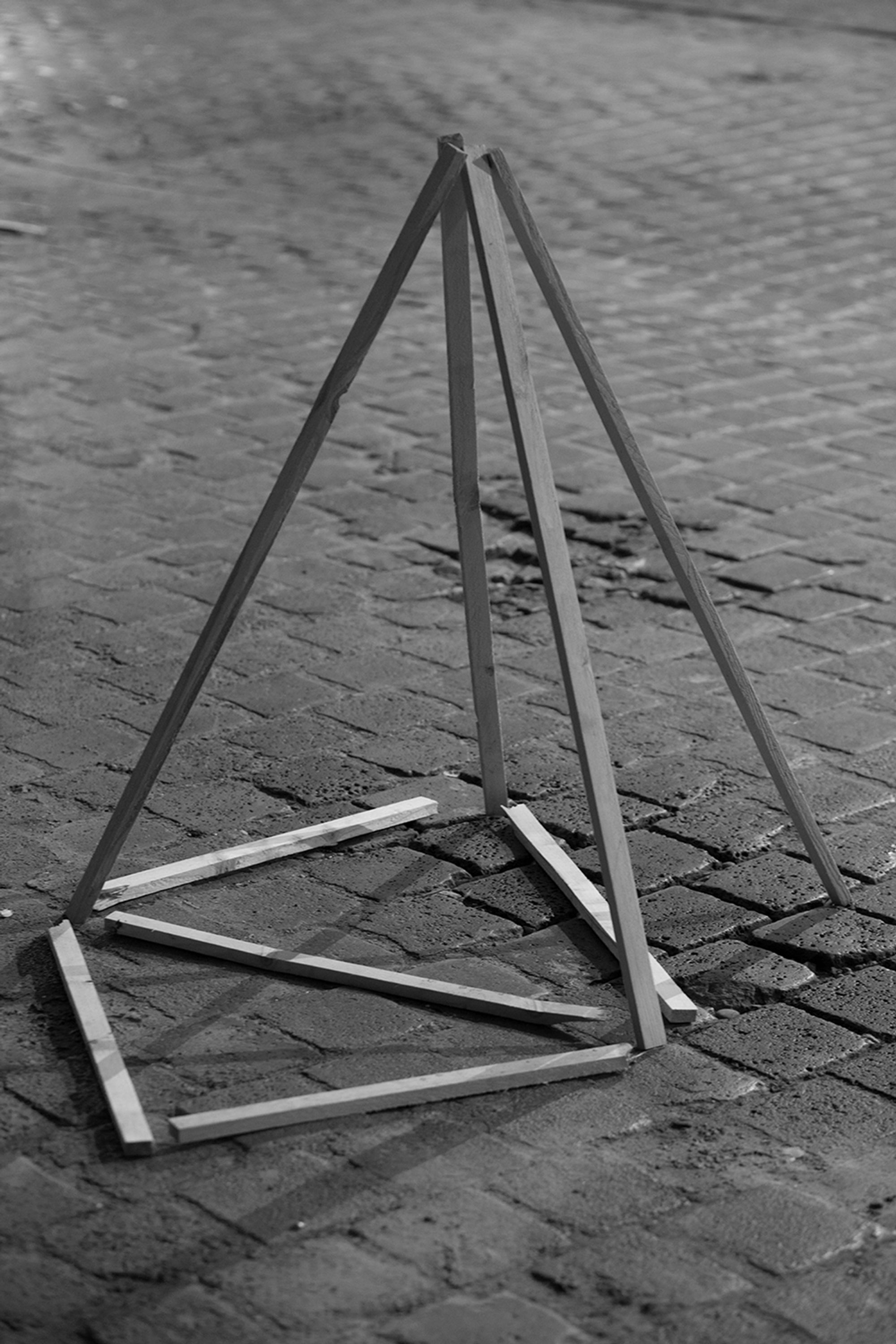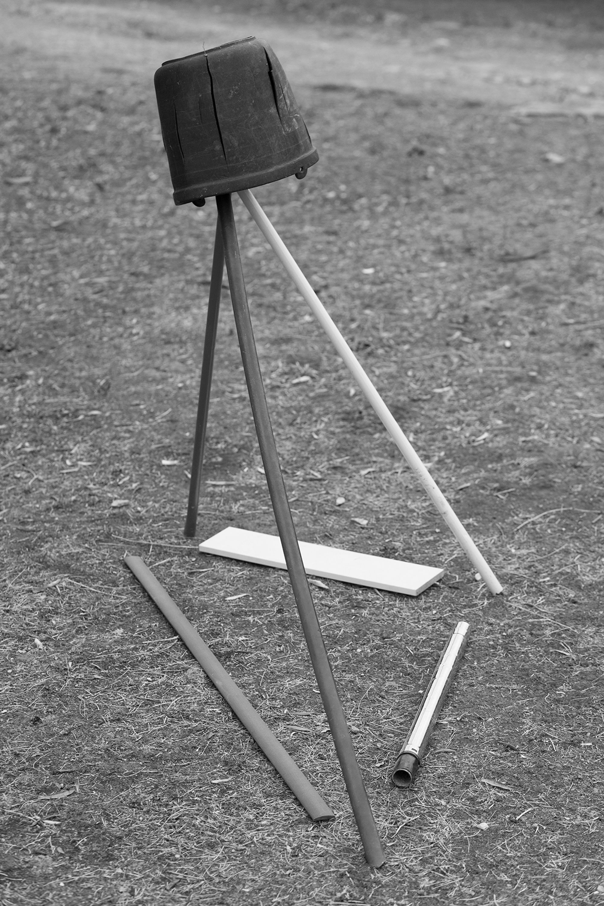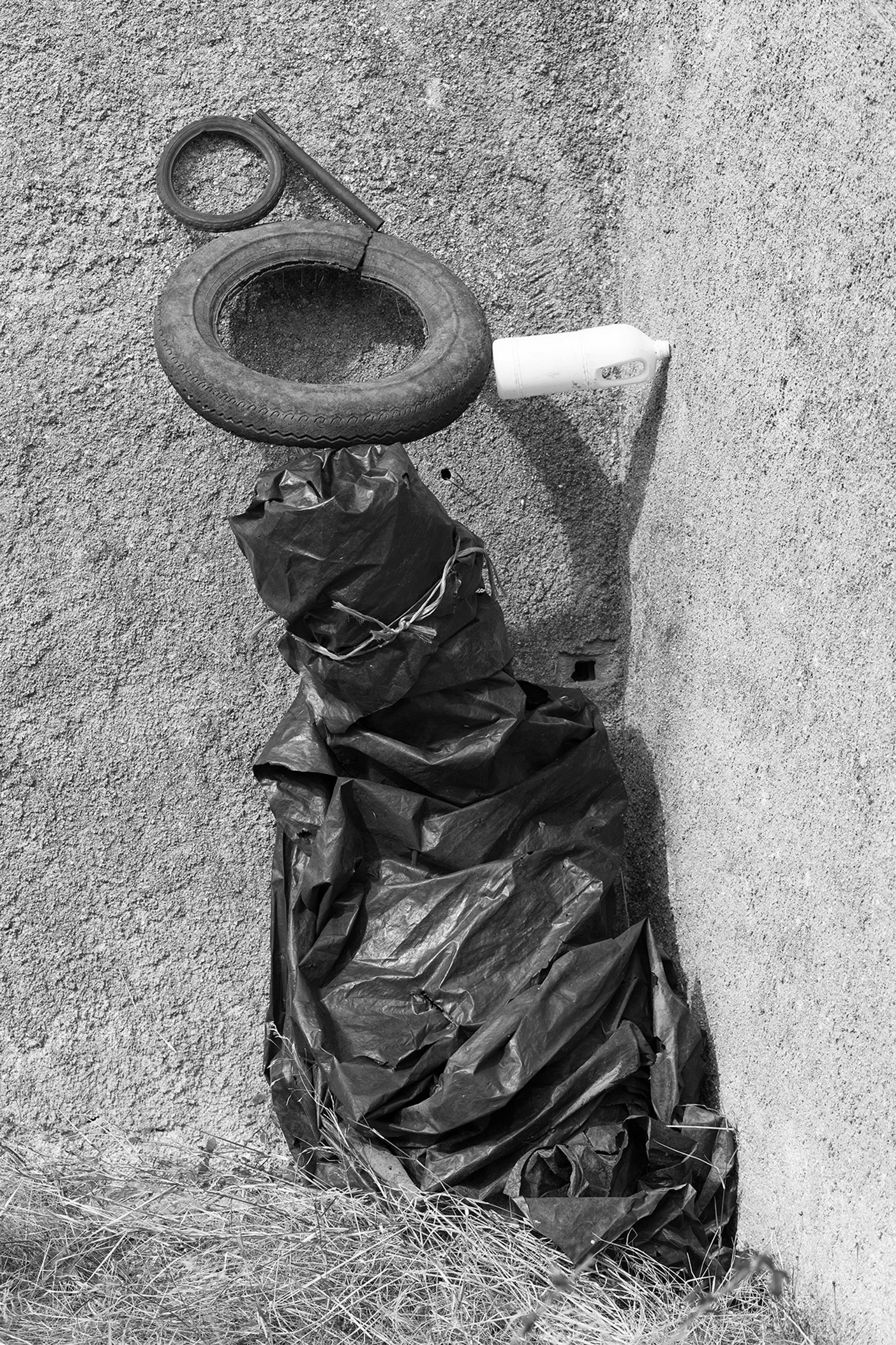 1. Collect garbage and found objects.2. React as immediately and spontaneously as possible on site.3. Create a sculpture within a limited time frame.4. Take a photograph, showing a short moment of balance and fragility.