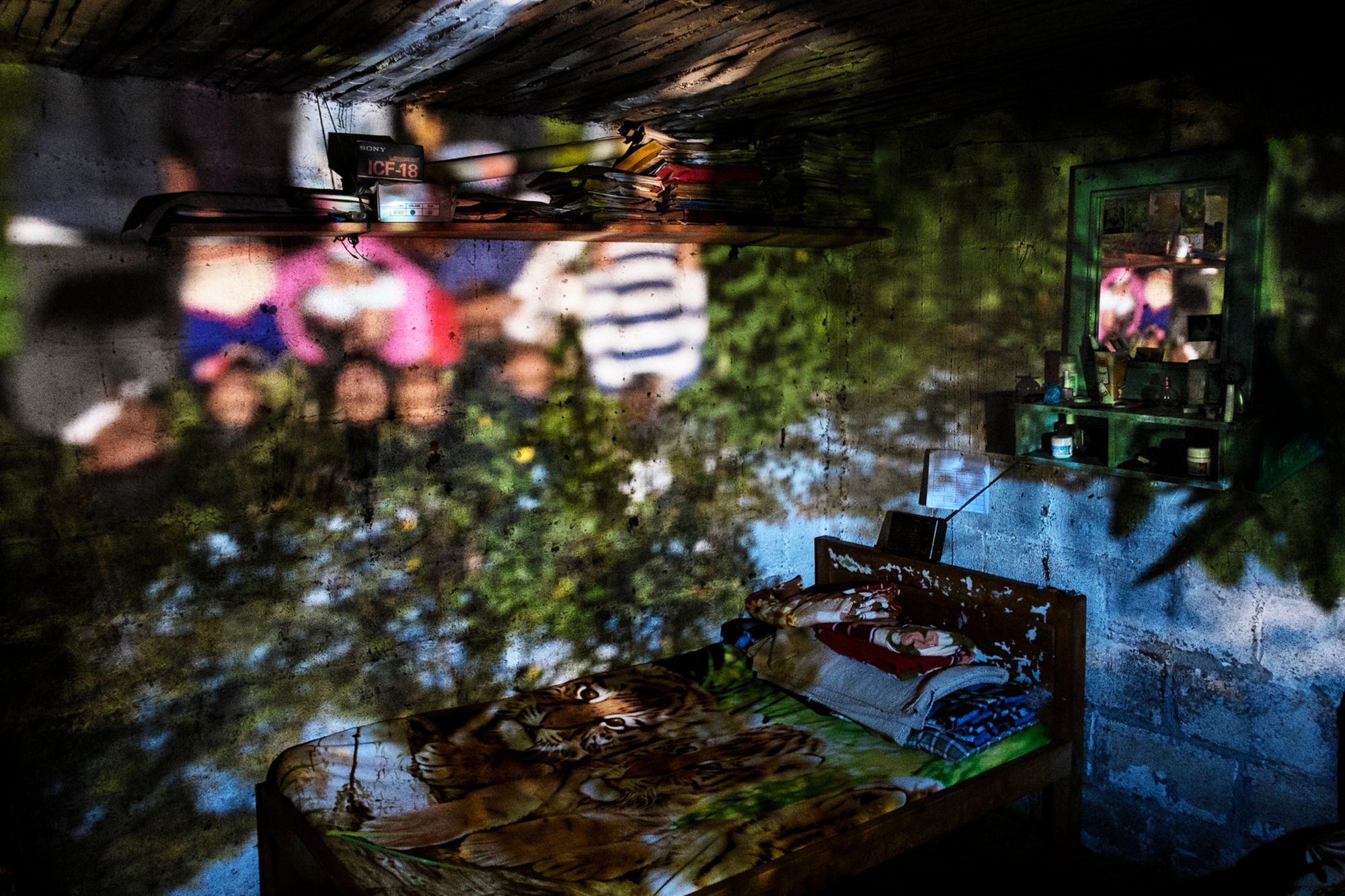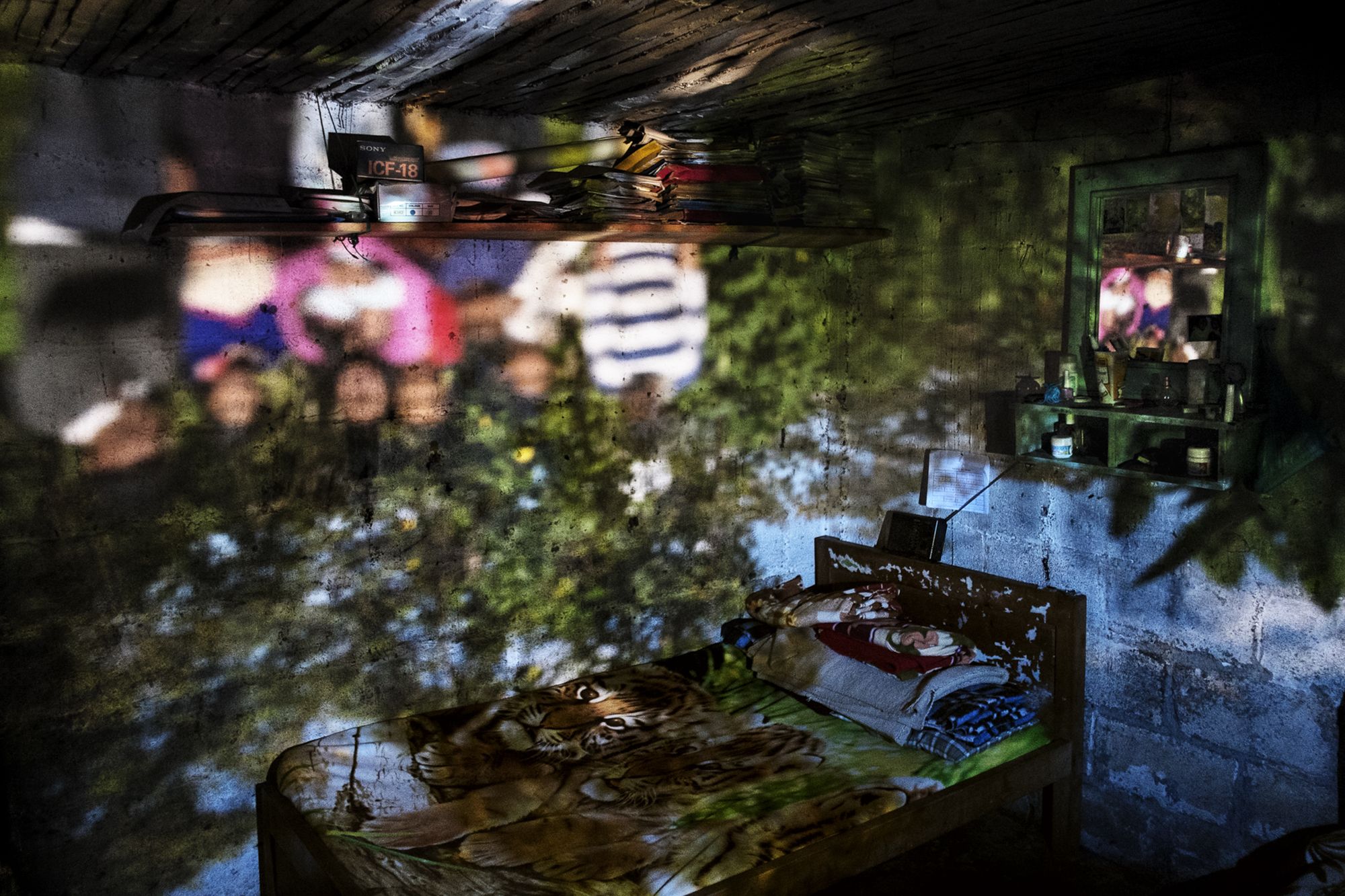 A family portrait made in a bedroom of the house by the obscure camera. You can see the "resguardo" (indian reservation) and its mountains. The camera obscura we have built with the Pechene family. Together they learned about the phenomenon of light on the functioning of the eyes, and the beauty of their land, only to see the same mountains through the metaphor of darkness.