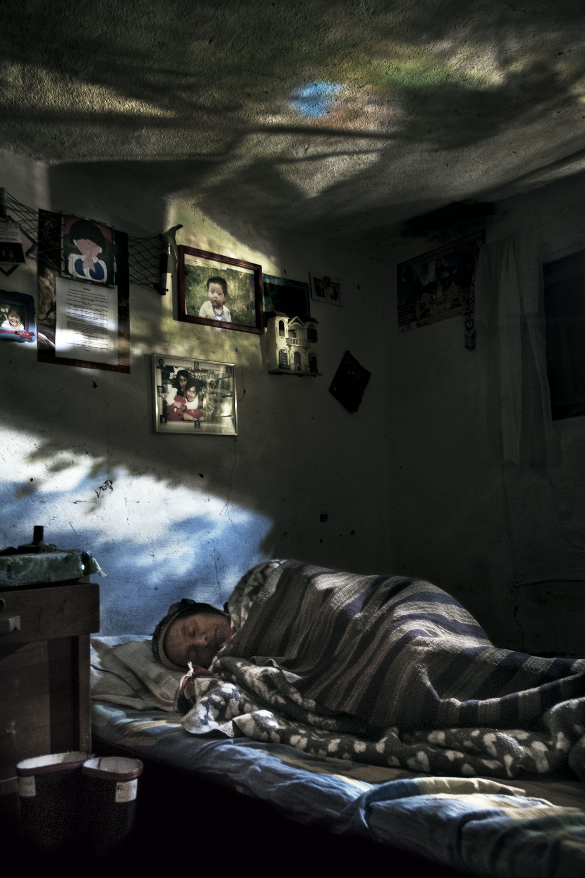 Jesus Yalanda sleeping. 3 of the children’s Jesus are gone the Cauca by little chance of finding work. The displacement arises also out of necessity.