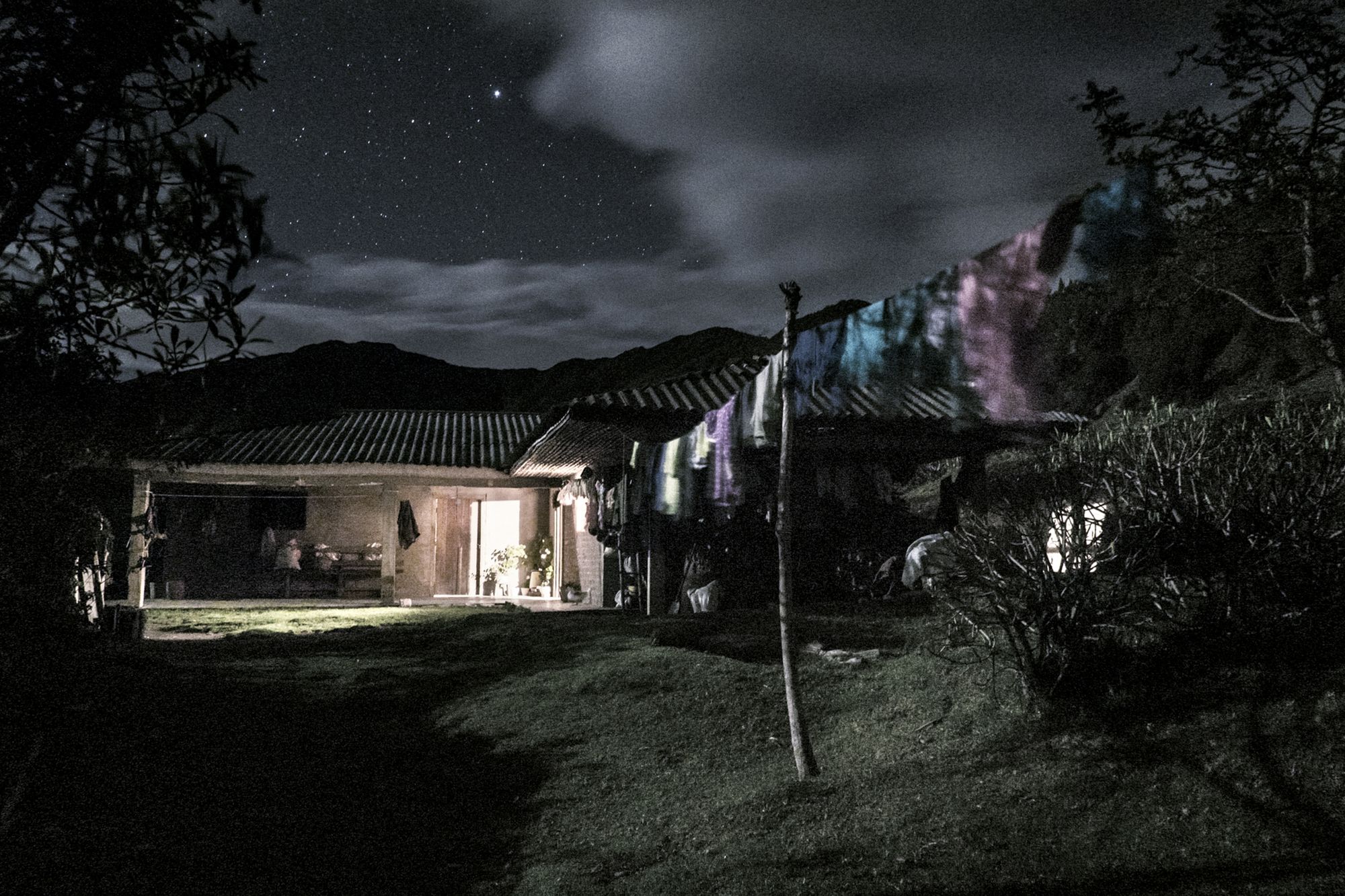 Cauca homes and families are in the middle of the mountains where a war has been fought for decades. The bonding strength and the resistance have kept alive cultures and peoples for more than 500 years. For the indigenous peoples of Cauca the house is not only the walls and roof, the house is the mountains of its territory, sky, rivers, animals, clouds and sacred stones. The dark chamber built into the house of the family Yalanda allows the mountains fall into the kitchen, where the territory is learned through words and family histories.