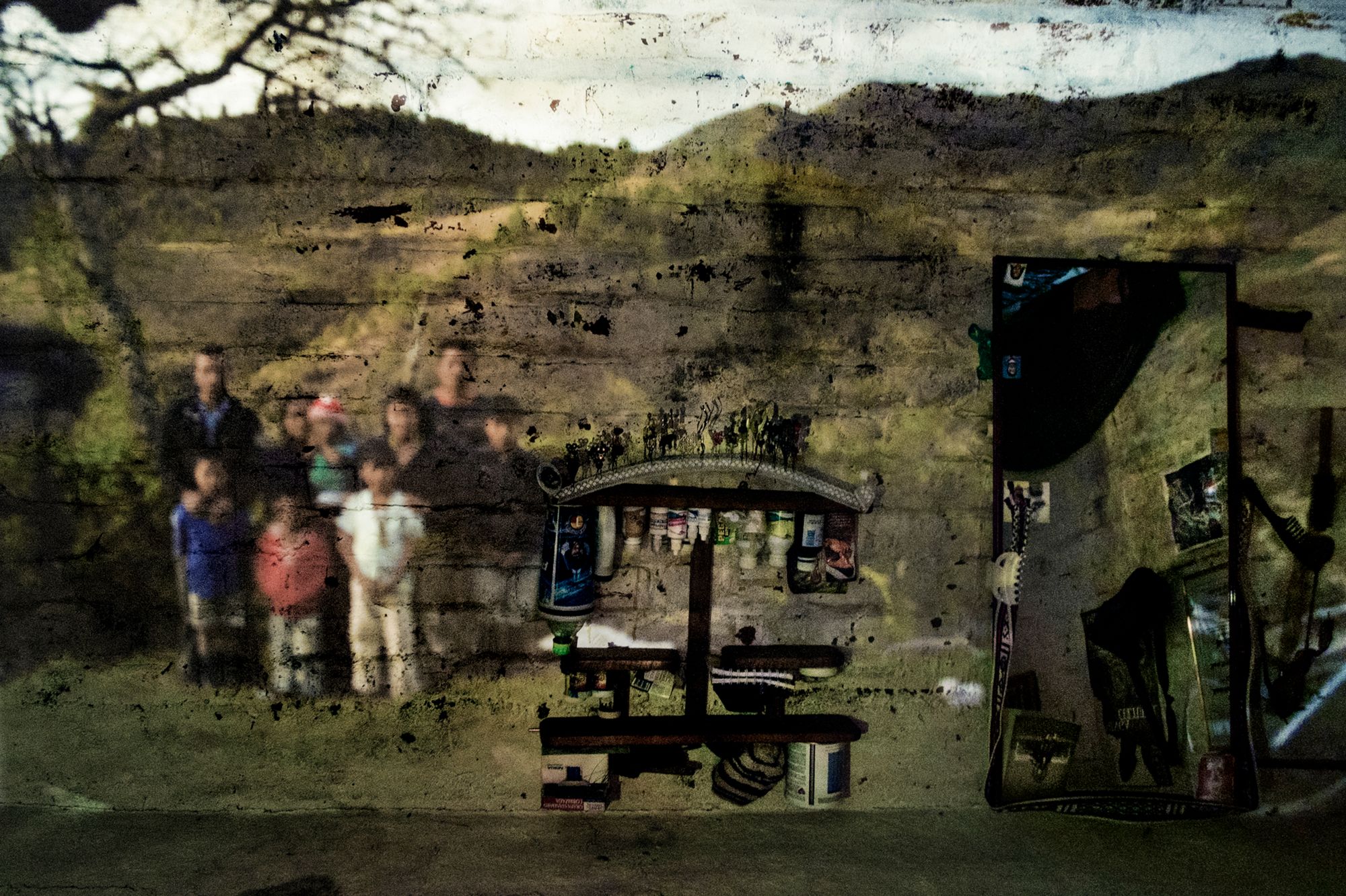 The Pechene family is reflected in the wall of a room, inside a constructed darkroom. Over many years,this has been the everyday and the value for the things that belong to them what has more strengthened indigenous resistance. Today this junction as a family and as a society allows resistance not only take to the streets but more than ever teach what they have learned historically.