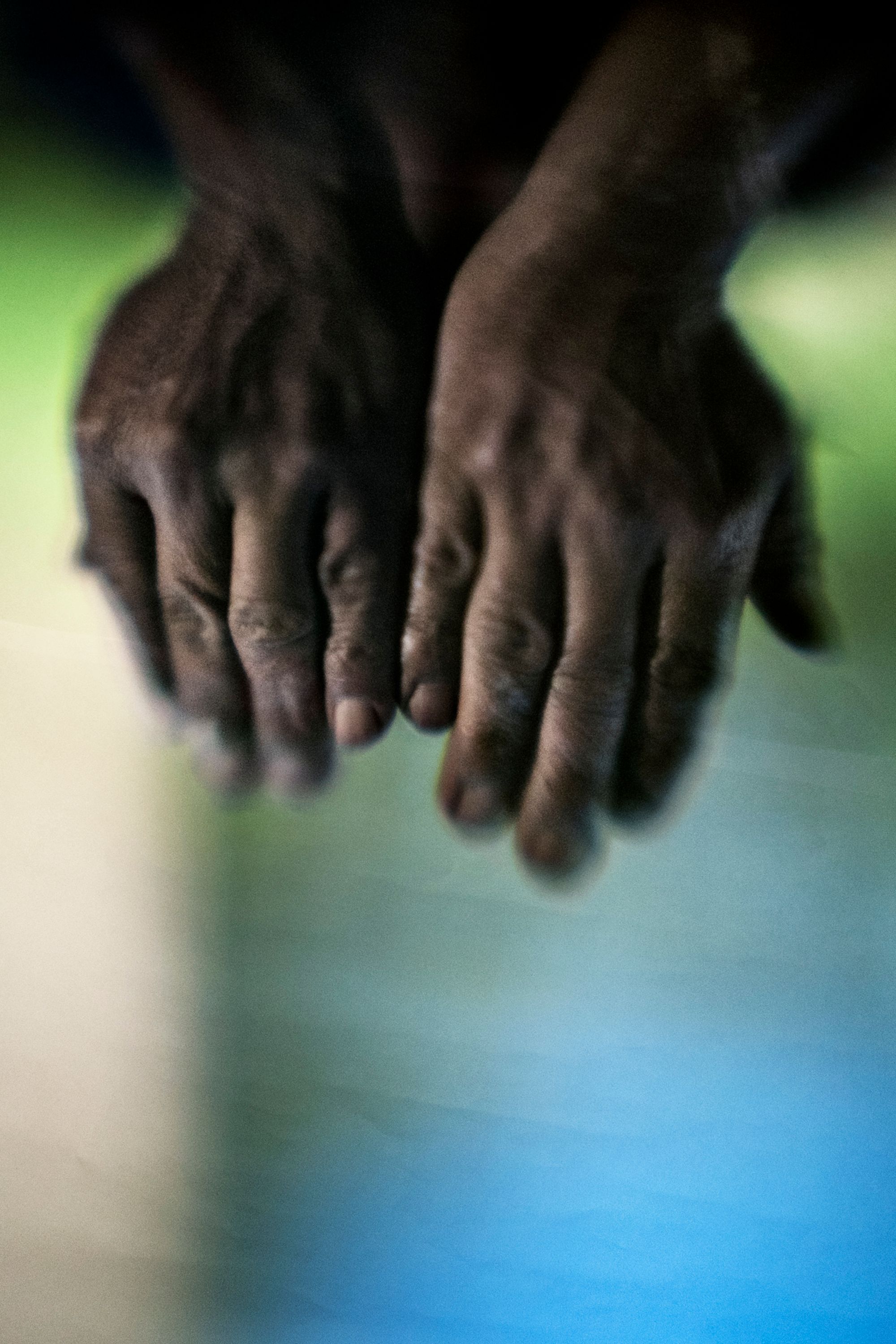 The hands of a grandfather. Miguel has cultivated the land since he was a child. He has fed his children and grandchildren with his bare hands.