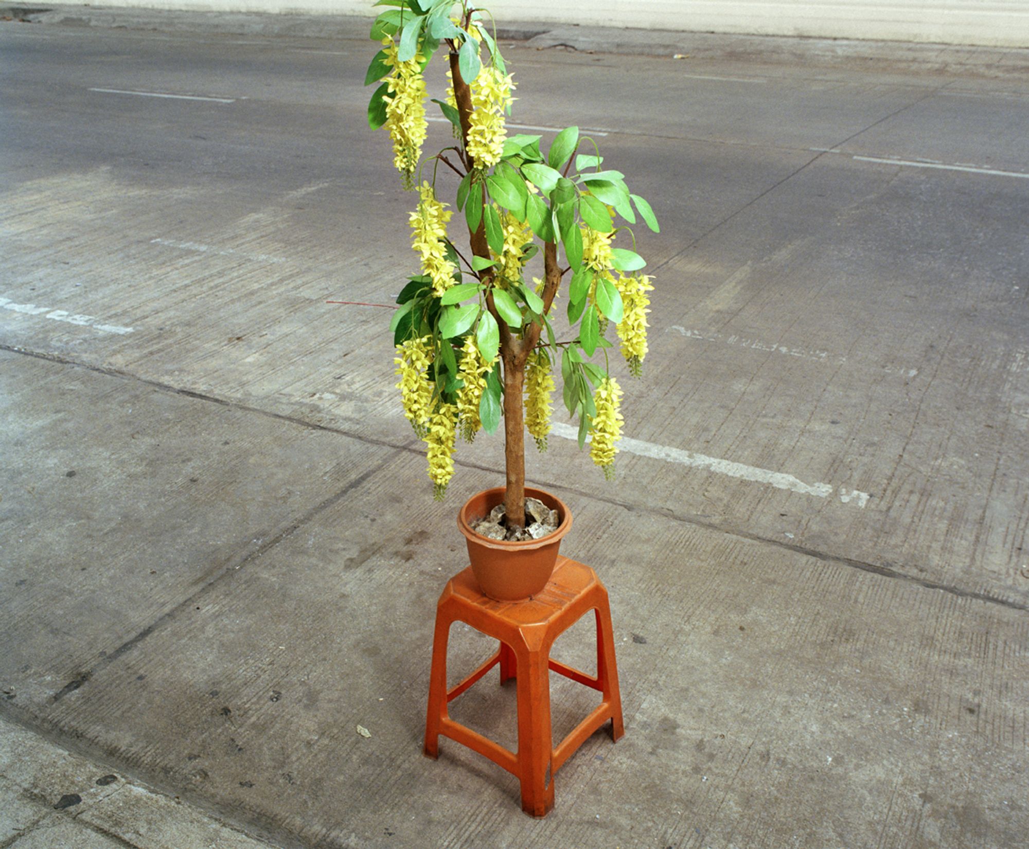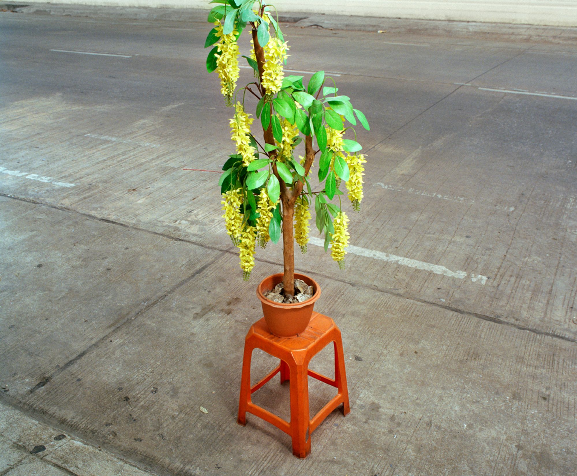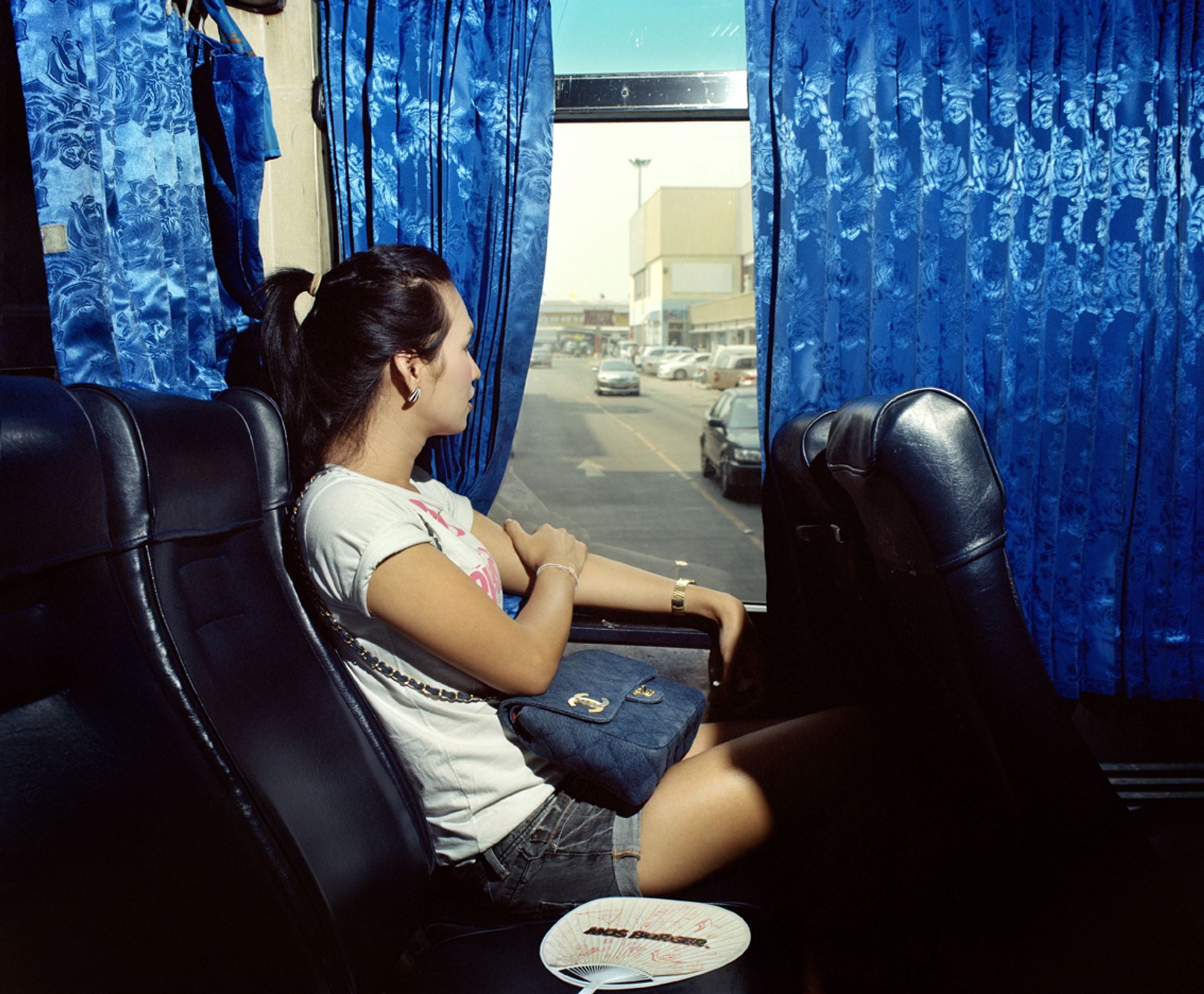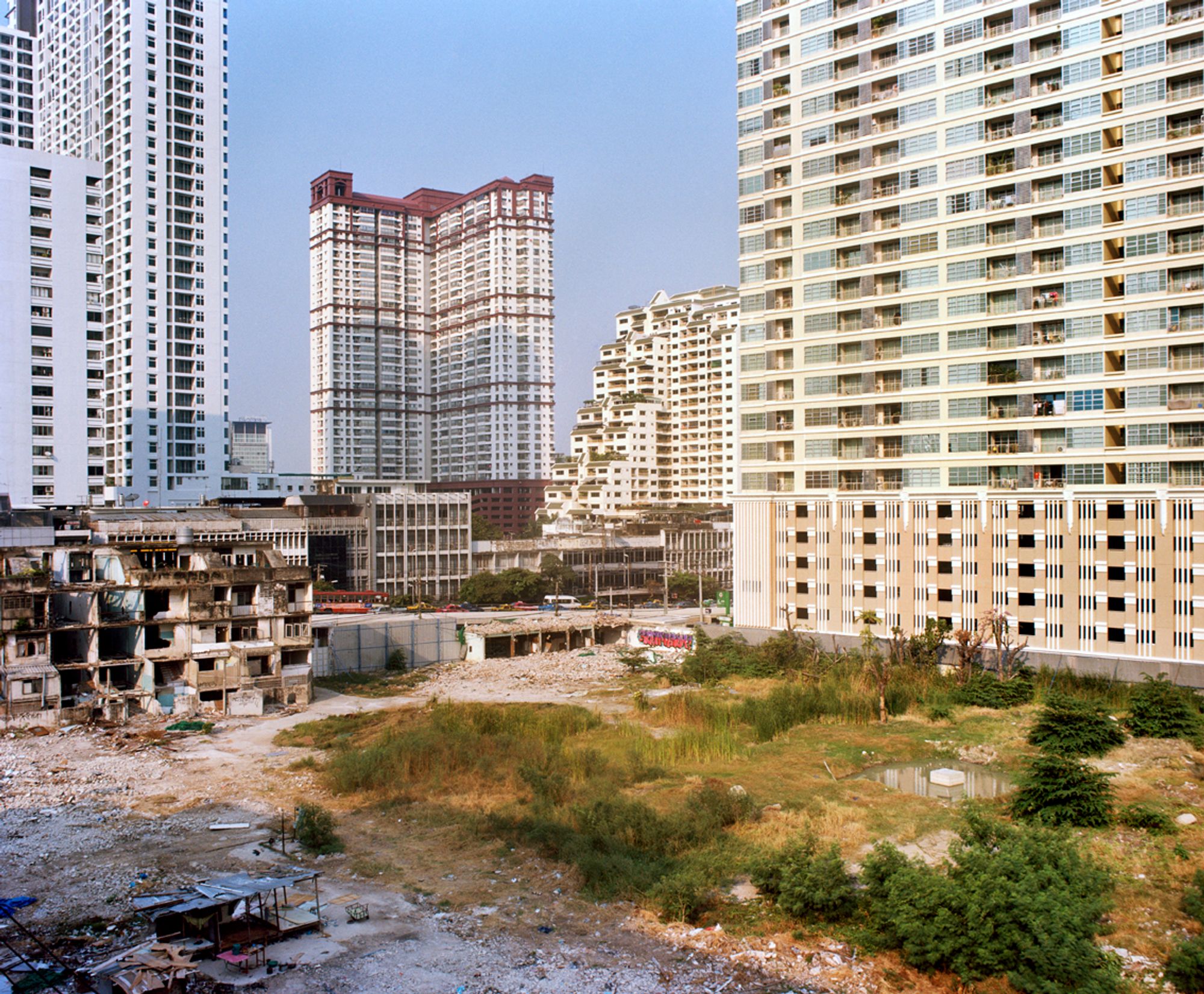 Mass tourismThe photographs of Lotus were made in Thai cities such as Chiang Mai, Bangkok, Lamphun, Petchabun, Koh Samet and Pattaya. This last city is a typical destination for sex tourists, some of which have sex with so-called ladyboys. This book opens with a photograph that shows us a basic set of objects tourists receive upon arrival in certain hotels: a pack of “large size” condoms, a city guide, a bottle of Thai whisky and a copy of the New Testament. This photograph sets the tone of the series. It shows us a sordid reality, camouflaged or rationalized by a minimal, orderly setting. A pink curtain, bearing a repelling stain, suggests a theater and an aspiration to glamour or luxury. The askew composition of the photograph shatters the lie of the lined up objects. Apparently the map of Pattaya was moved. Now it breaks the white border of the table, which seems to function as a frame or a passe-partout. The curtain casts a dark shadow that leads us to the actual focus point of the photograph: the nocturnal life in the city.
