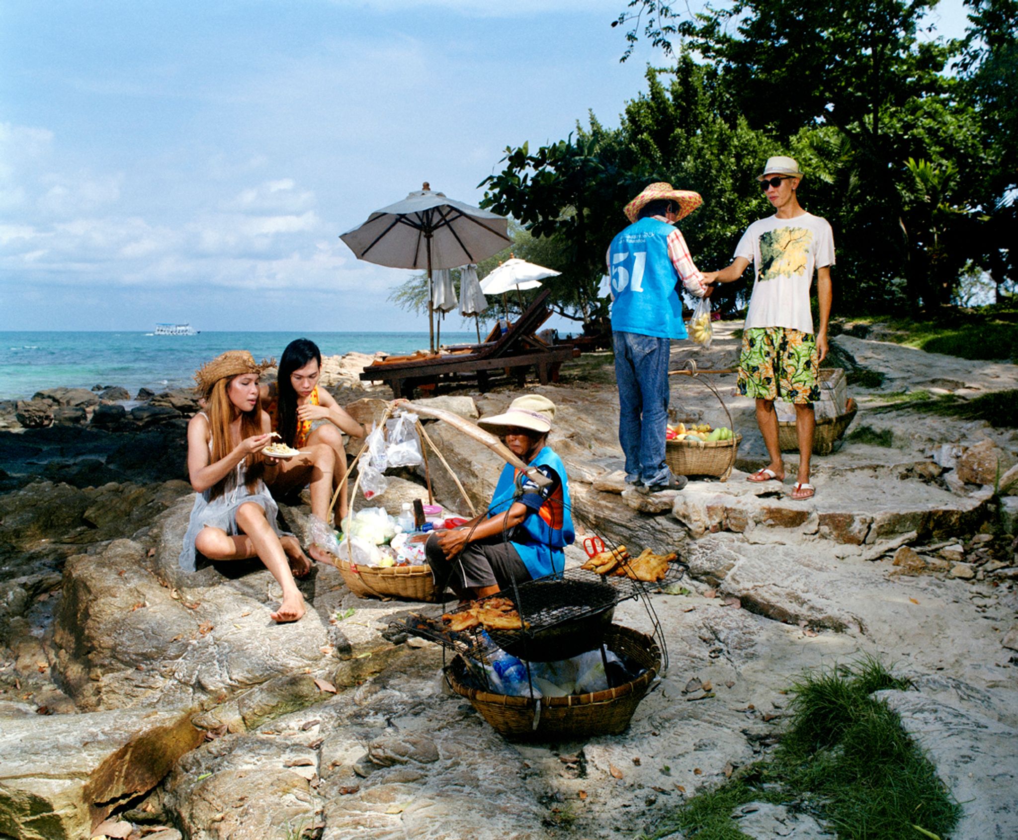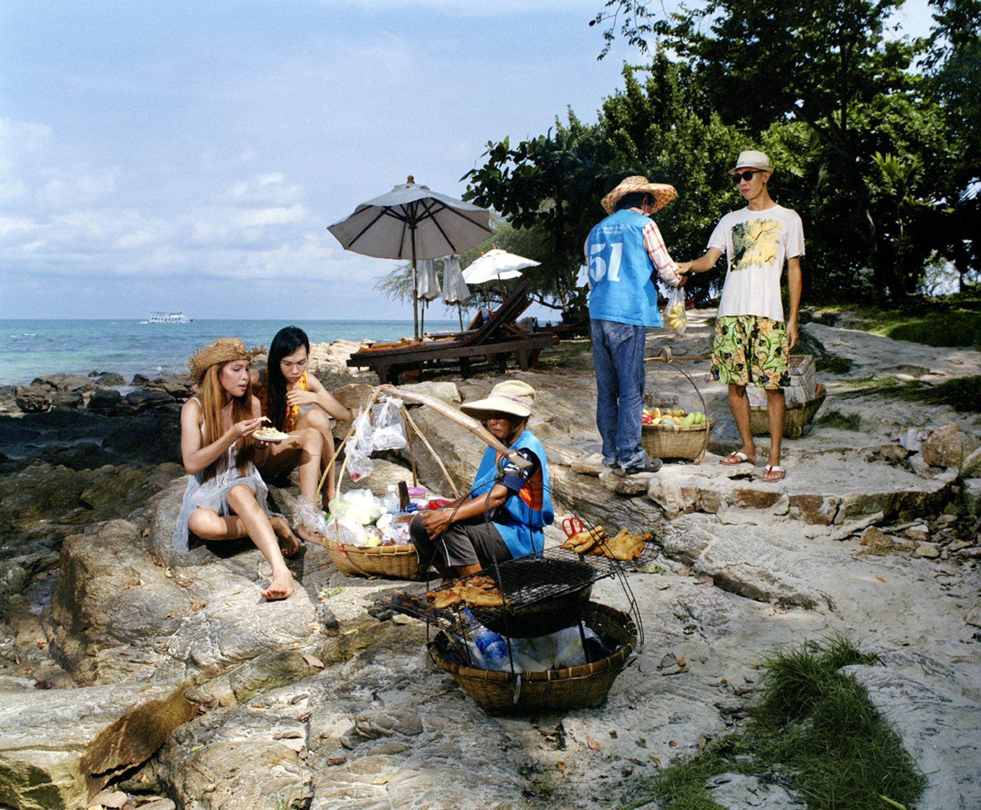 Meta photographsHow to report about this, if one would wish to do so? Two years ago, during a public debate moderated by myself, the photographer Martin Parr defended his decision of photographing food markets and hamburgers all over the world by saying that this was the only way he could share his regret about the general loss of cultural diversity. Recently, he made several series of photographs about mass tourism. In these photographs we see people pretending to support the tower of Pisa or imitating a lama at Machu Pichu. These photographs include a snapshot of a bus decorated with a painted mountain landscape, a picturesque wall painting in a sordid interior etc. By introducing these elements, Parr makes meta-photographs: tiny essays about the construction and the meaning of images.