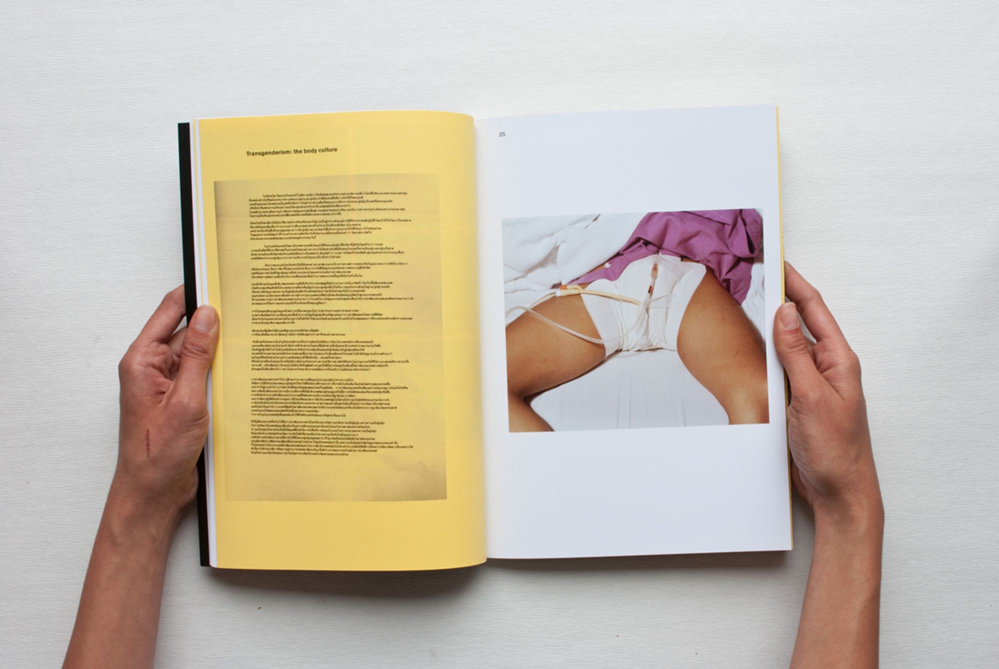 Disposable camerasPinckers and De Bruyn believe that so-called documentary photographers generally seem to search for esthetic approaches which are not adapted to the subject matter and are very often based upon tricks and clichés that always produce the desired effect. In this series of photographs they have tried to comment this approach by making explicitly manipulative, esthetic images, but also by distributing disposable cameras to the people they have followed. No directions were given, the only demand was that the films be used entirely. Thus they obtained photographically ‘incorrect’ images (unsharp, disturbed by fingers, too dark, oblique etc.) constituting a more honest depiction of the everyday life and predilections of the ladyboys. “Their own photographs have a rare transparence,” Pinckers told me, “they are less pretentious and contain nonesthetic, but poetic elements that show a surprising and invigorating power when they are presented in a photographic publication (the series of landscapes, the photographed photographs, the reflected flashlight eating away a face in a mirror and so on).” In this book, these photographs are printed on the yellow pages. During the exhibitions they are projected.