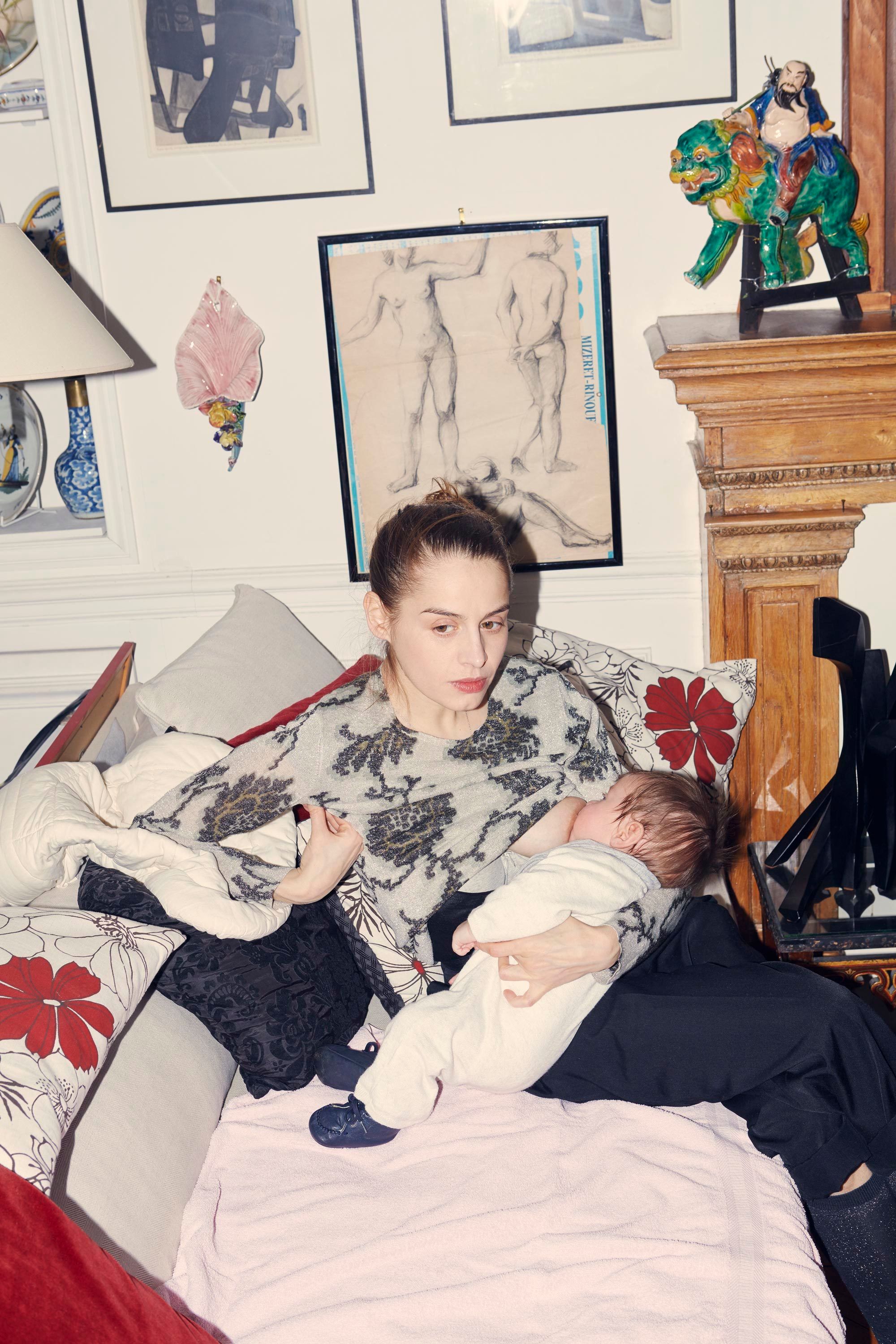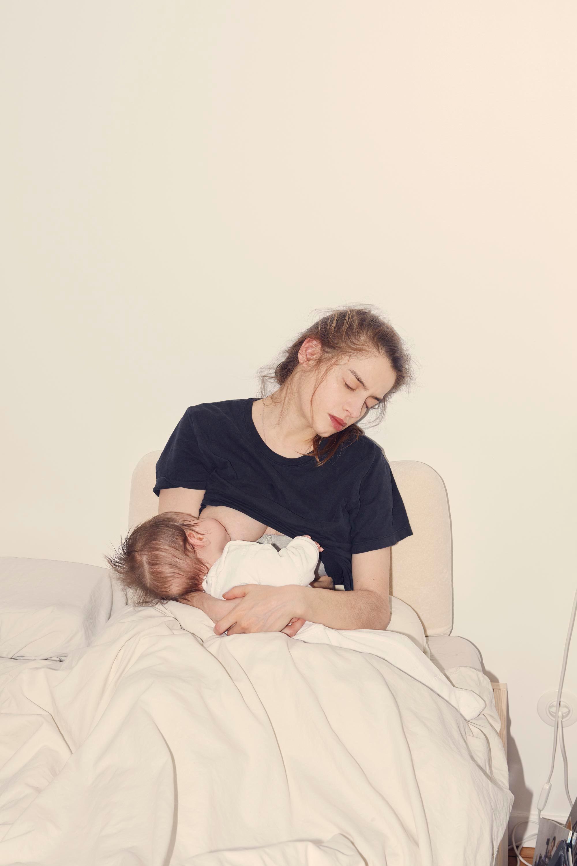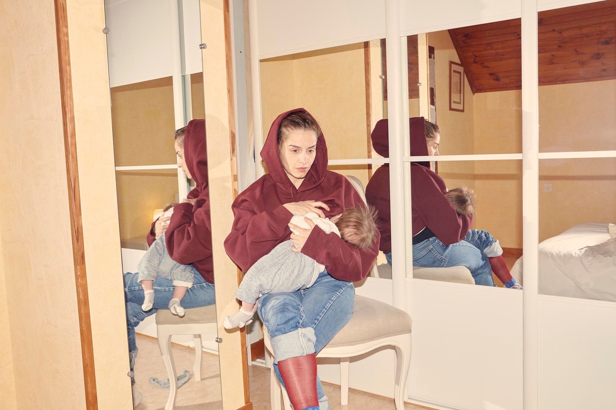The aesthetic aspect is determined by the feeding behaviour which imposes its geometry on the bodies and on the space they occupy. These images contain familiar echoes of classic icons but adorn themselves with modern elements. From these everyday moments, seized with harshness, without bitterness, emerges the force of exchanges between two beings and the milk becomes, as in the Greek legend of the Milky Way, the vector of a world under construction.