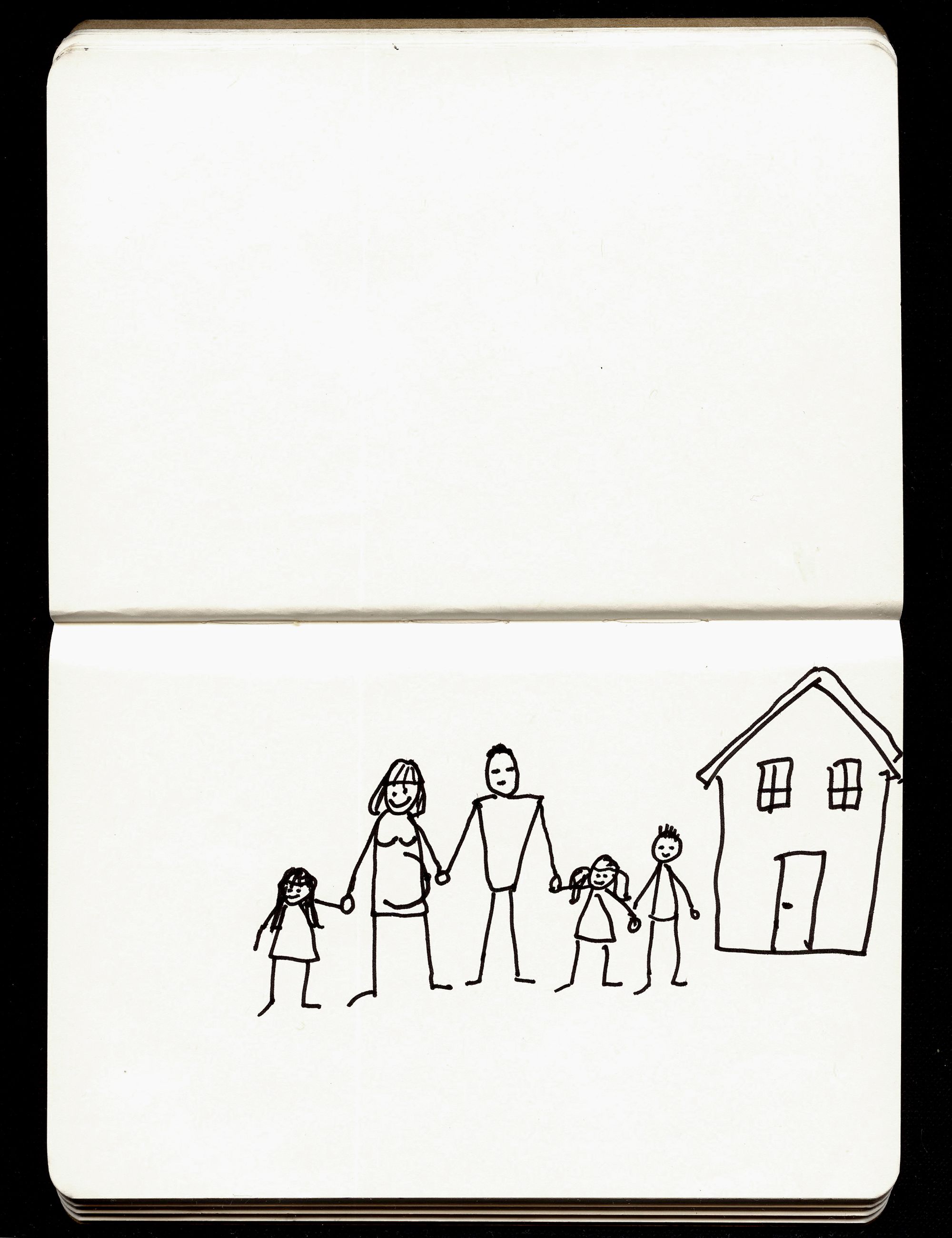 Lisa's sketch of the family, the way she imagined it when growing up. She is pregnant with her first child and lives in Gothenburg.