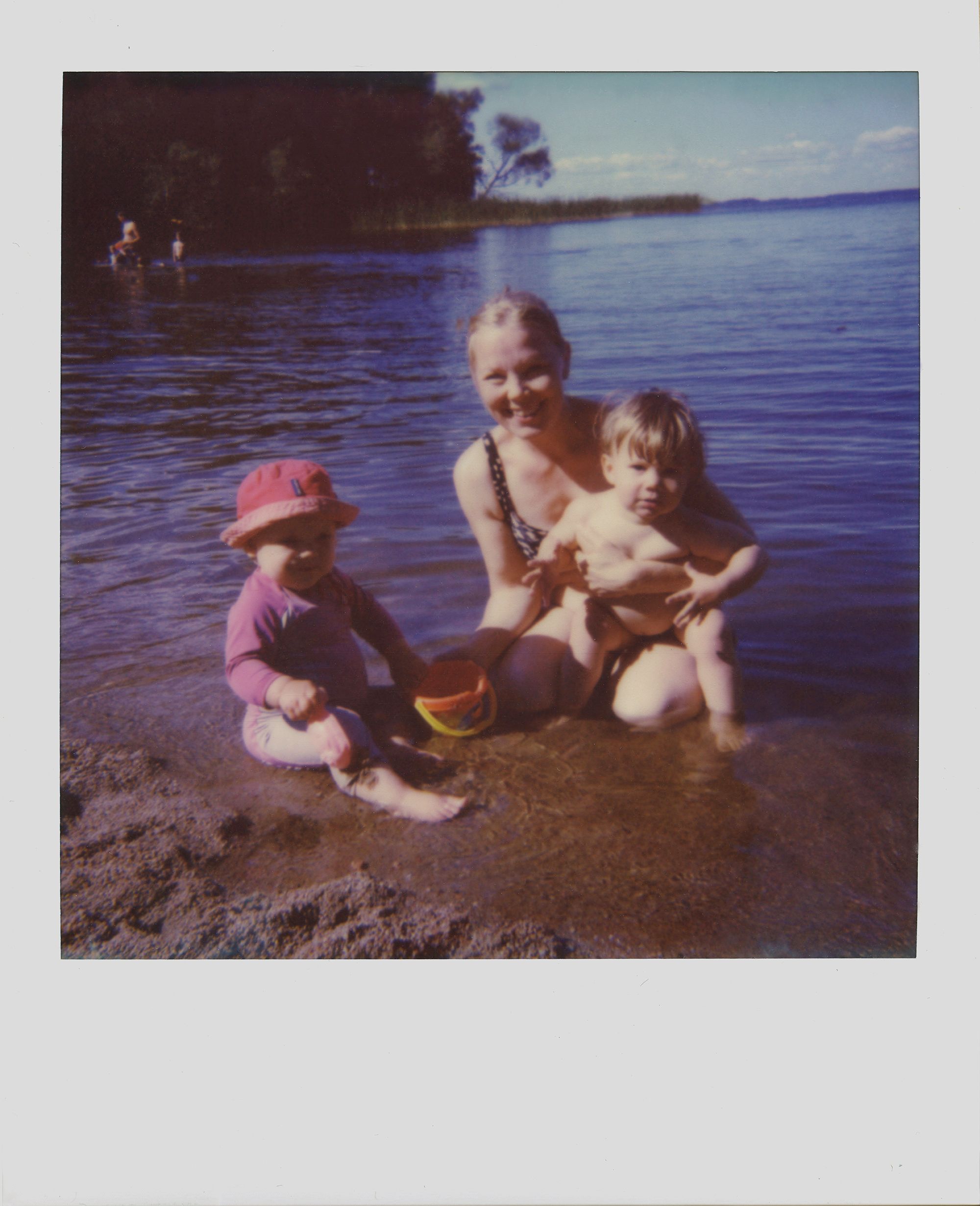 Heidi and Tim in the water at the summer camp for single mothers and children. Polaroid taken by another mother at the camp, upon request to document the family. Sweden