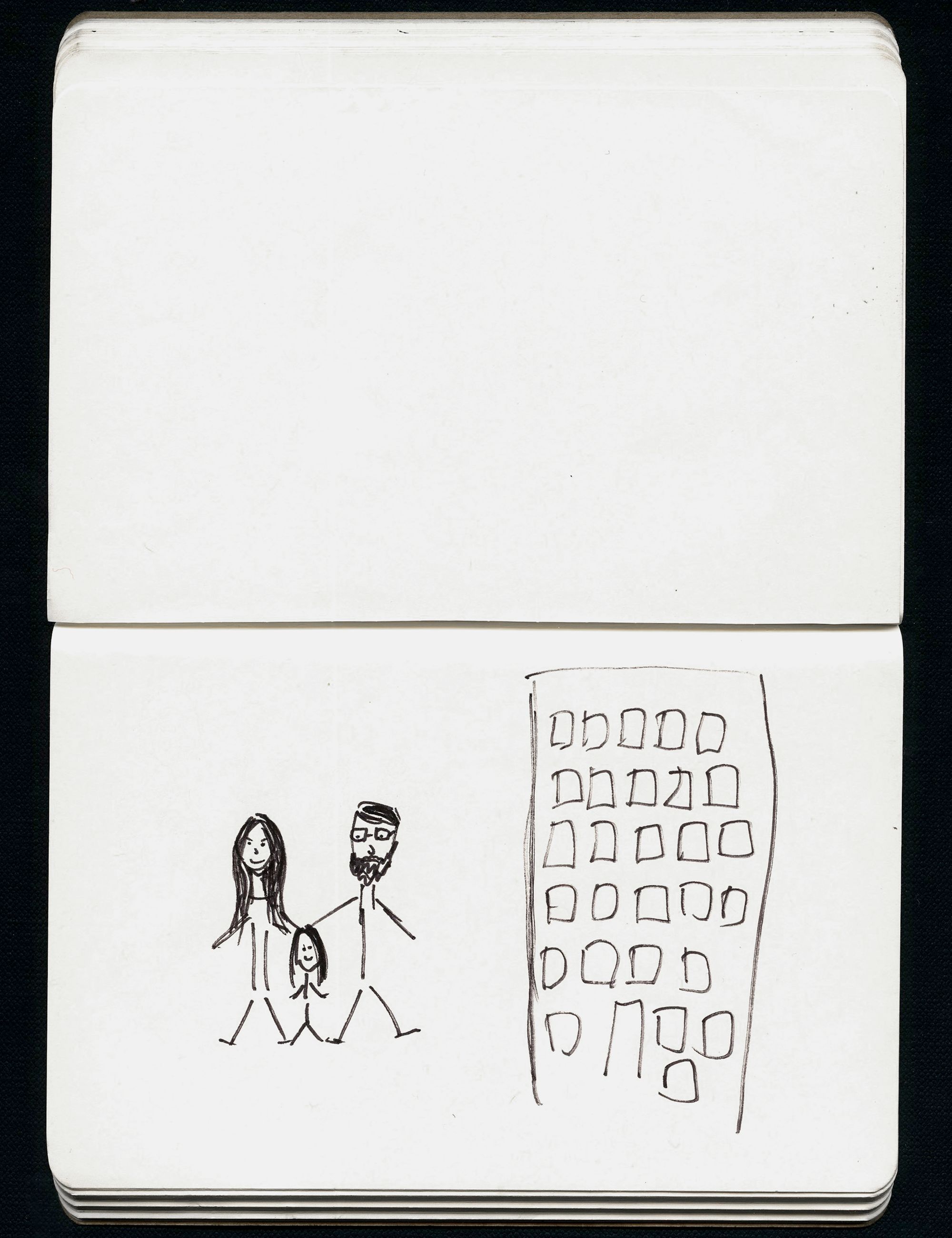 Helena’s sketch of the family, the way she imagined it when growing up. She lives with her 2-year old daughter Vera in central Stockholm.