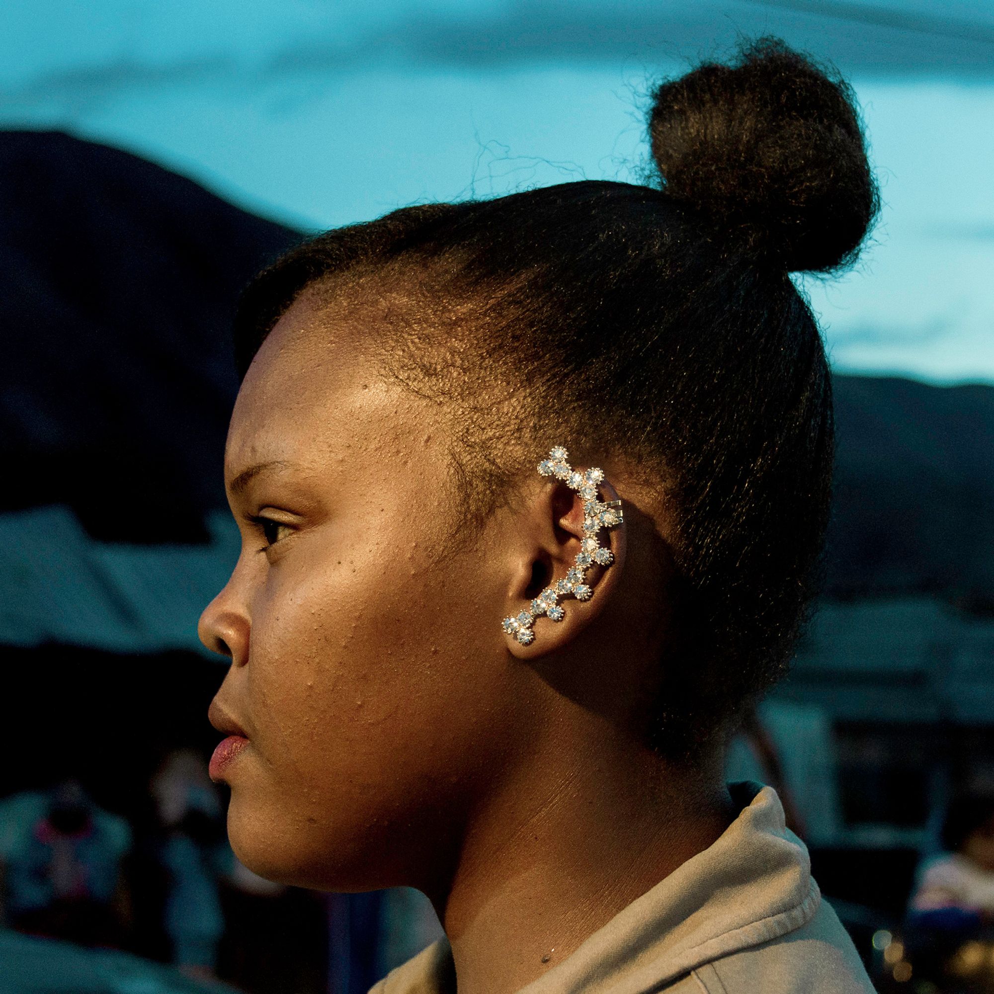 [ES] Retrato de una joven de Mascarilla usando un arete de estrellas. [EN] Young girls portrait wearing an earring made of stars.