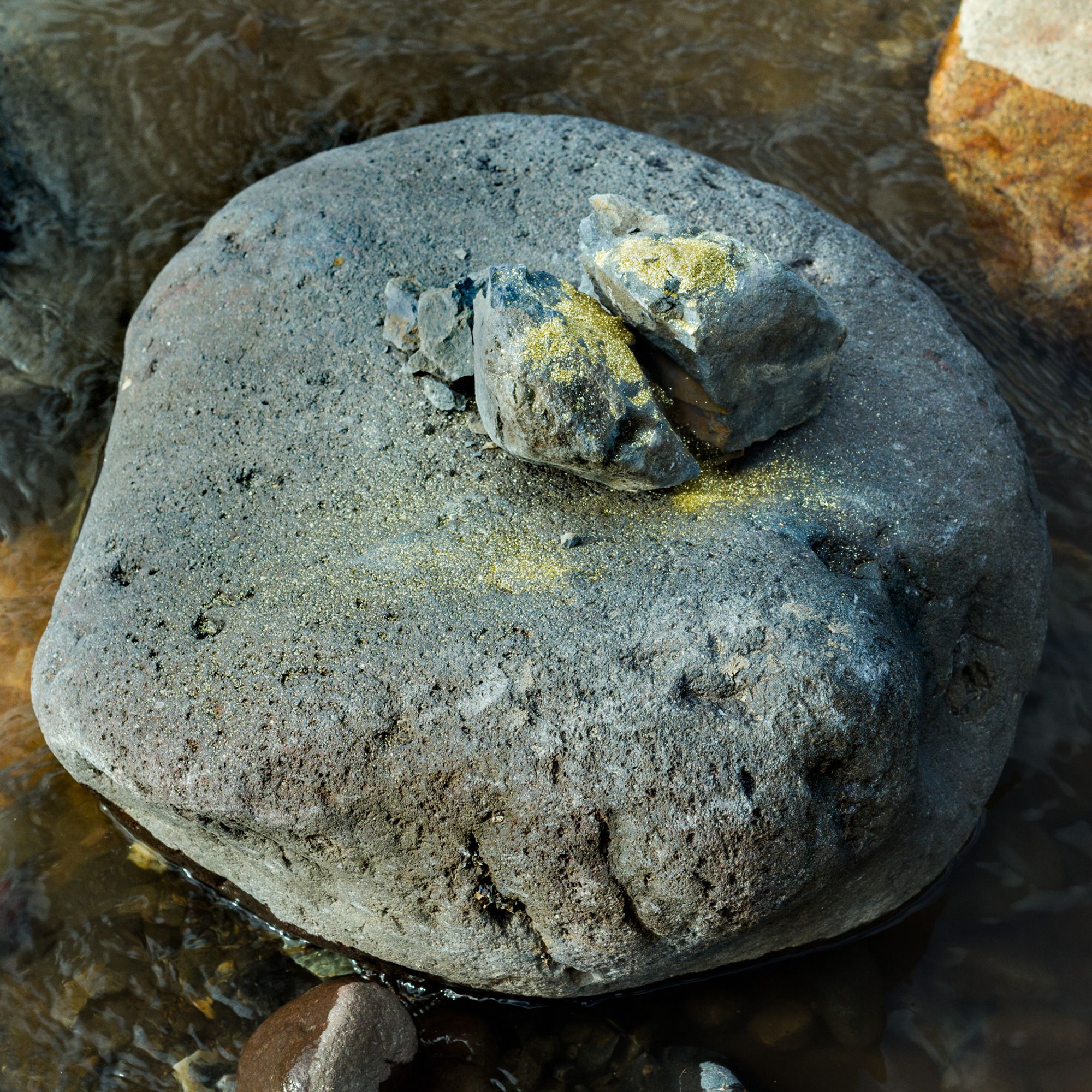 [ES] Una piedra del río Chota tiene en su interior brillos de oro.[EN] A stone of the Chota river have some golden dust inside of it.