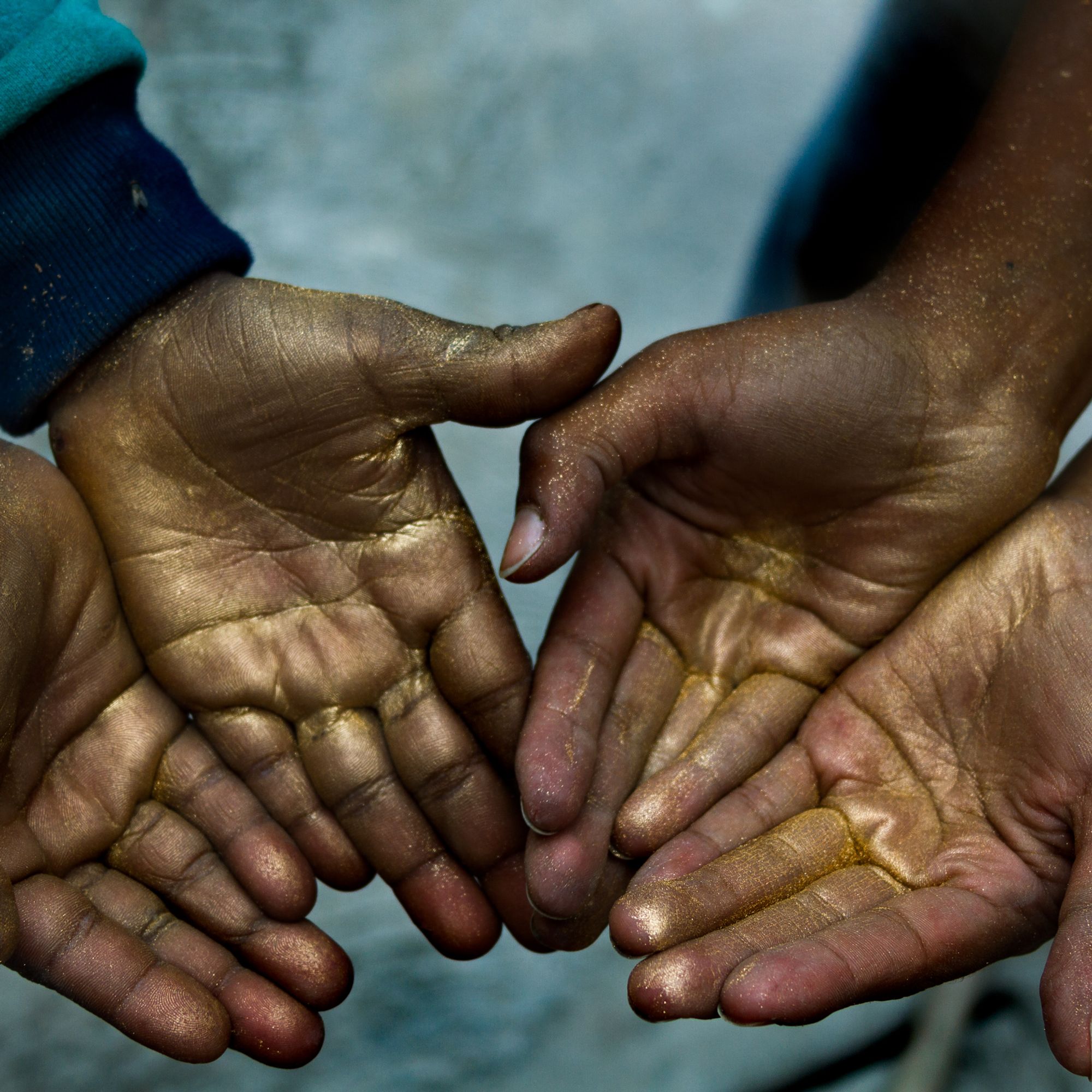 [ES] Niños de la comunidad de Mascarilla juegan con escarcha.[EN] Local kids of Mascarilla, Ecuador, show gold dust on their hands.