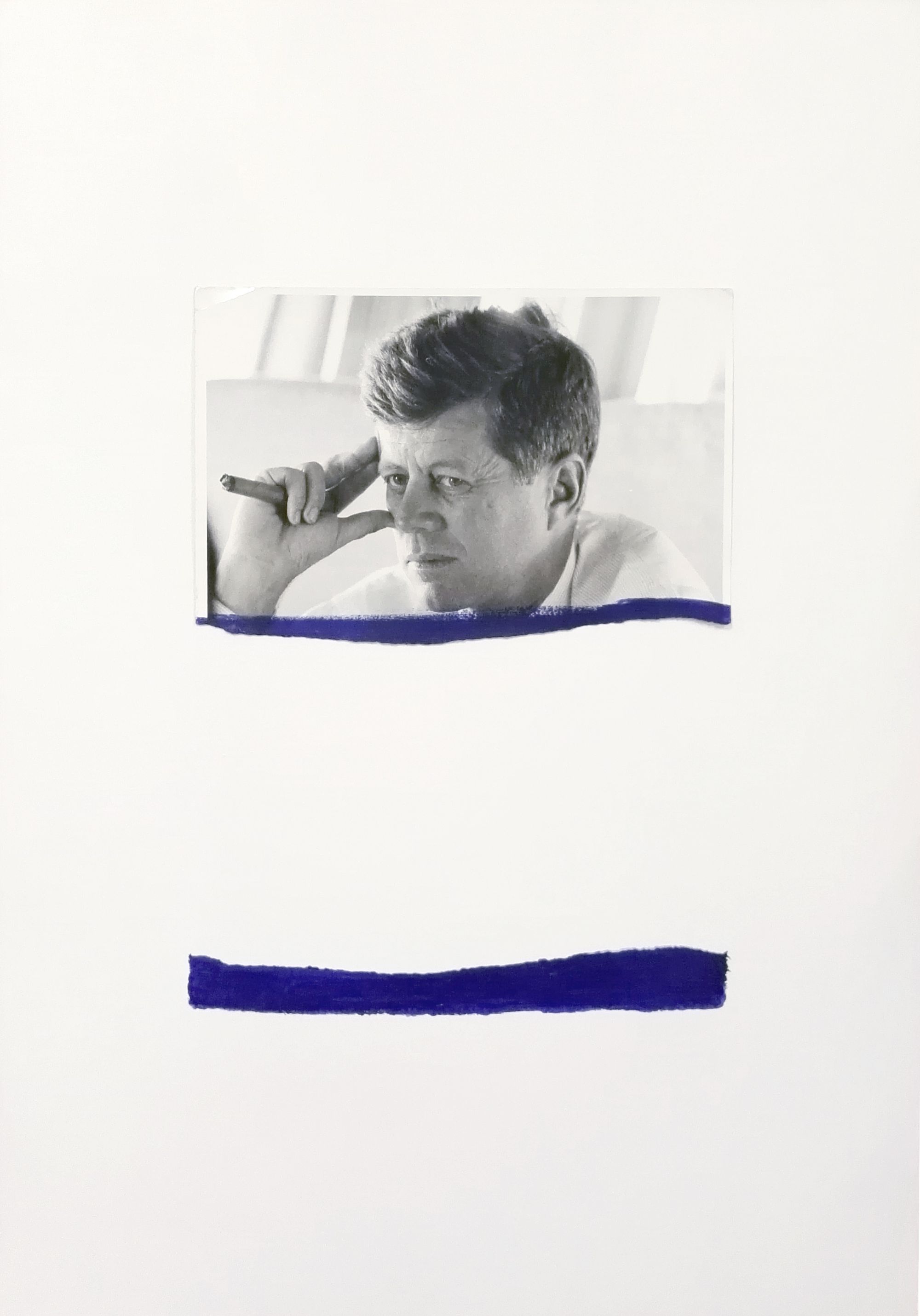 Stracciafotografia - JFK, papillon, 2017-2018. (Found photography, blue acrylic paint on cementite treated mdf - Unique Artwork)