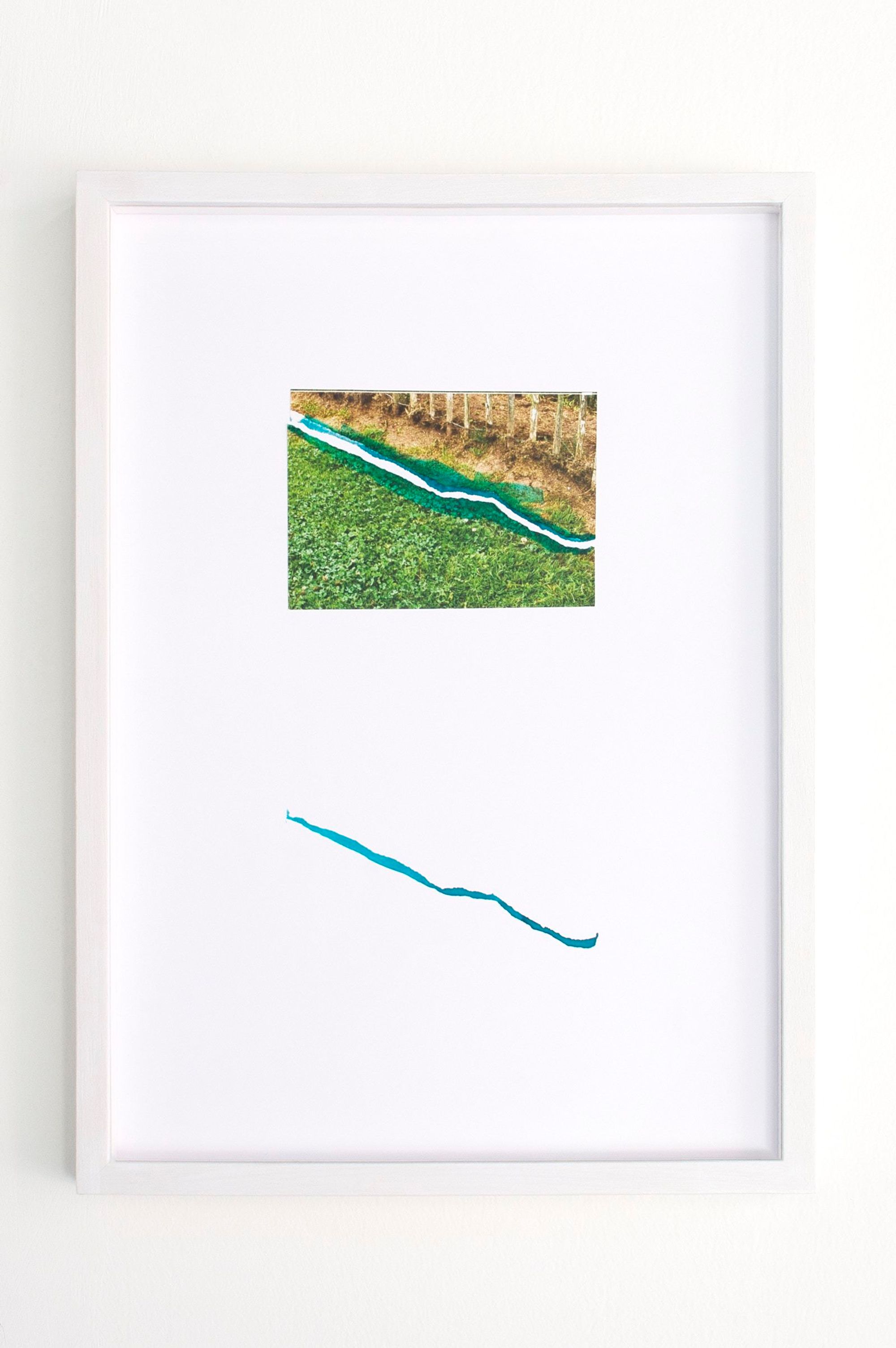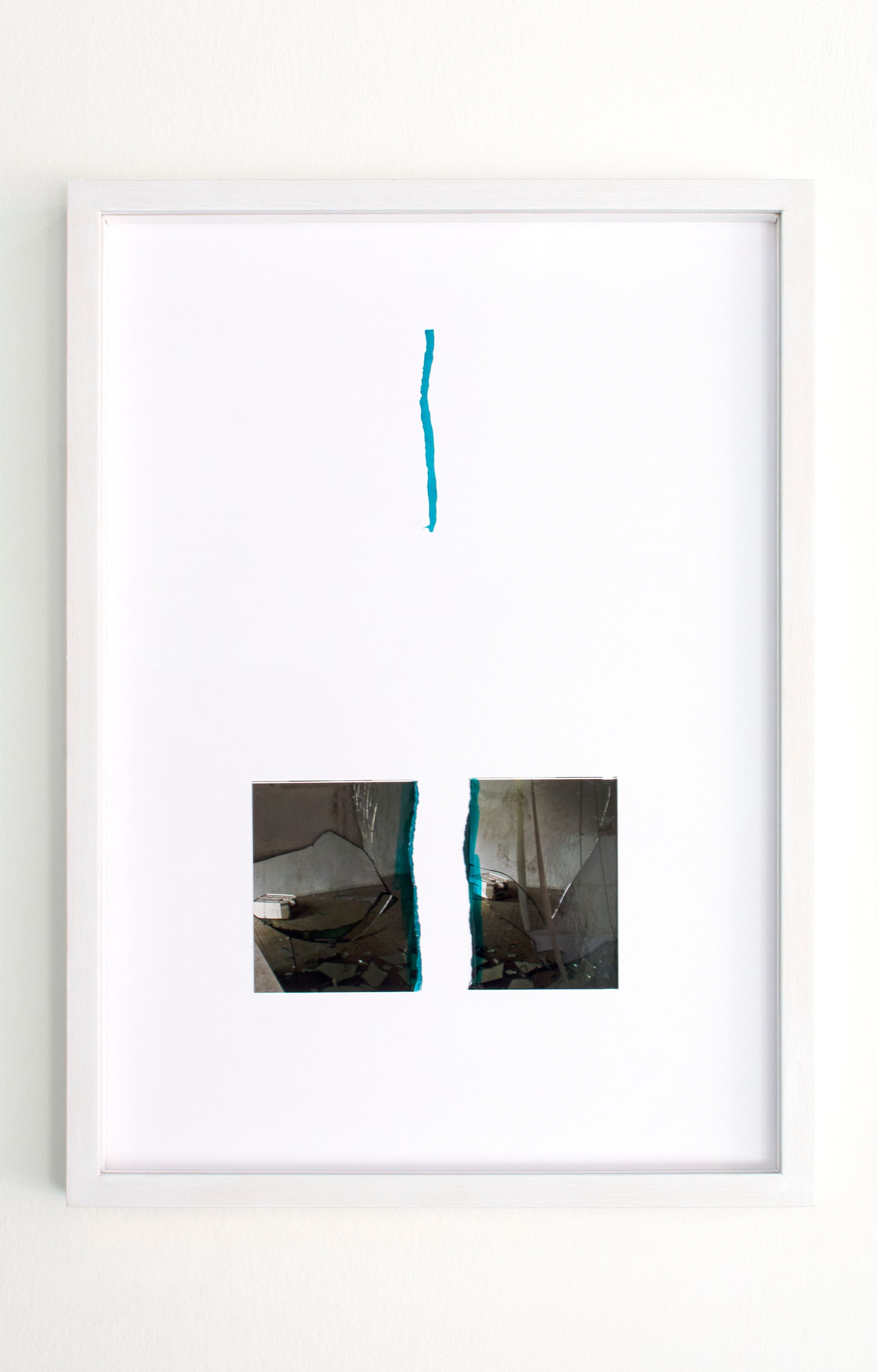 Stracciafotografia is a small collage series of half ripped photographs, discarded because deemed inadequate for their original purpose. The image on paper is reassigned and used as a stencil to draw a line. This exercise is the first attempt to abandon photography as a loyal tool for the representation of reality and move towards a physical evaluation of the photographic object.