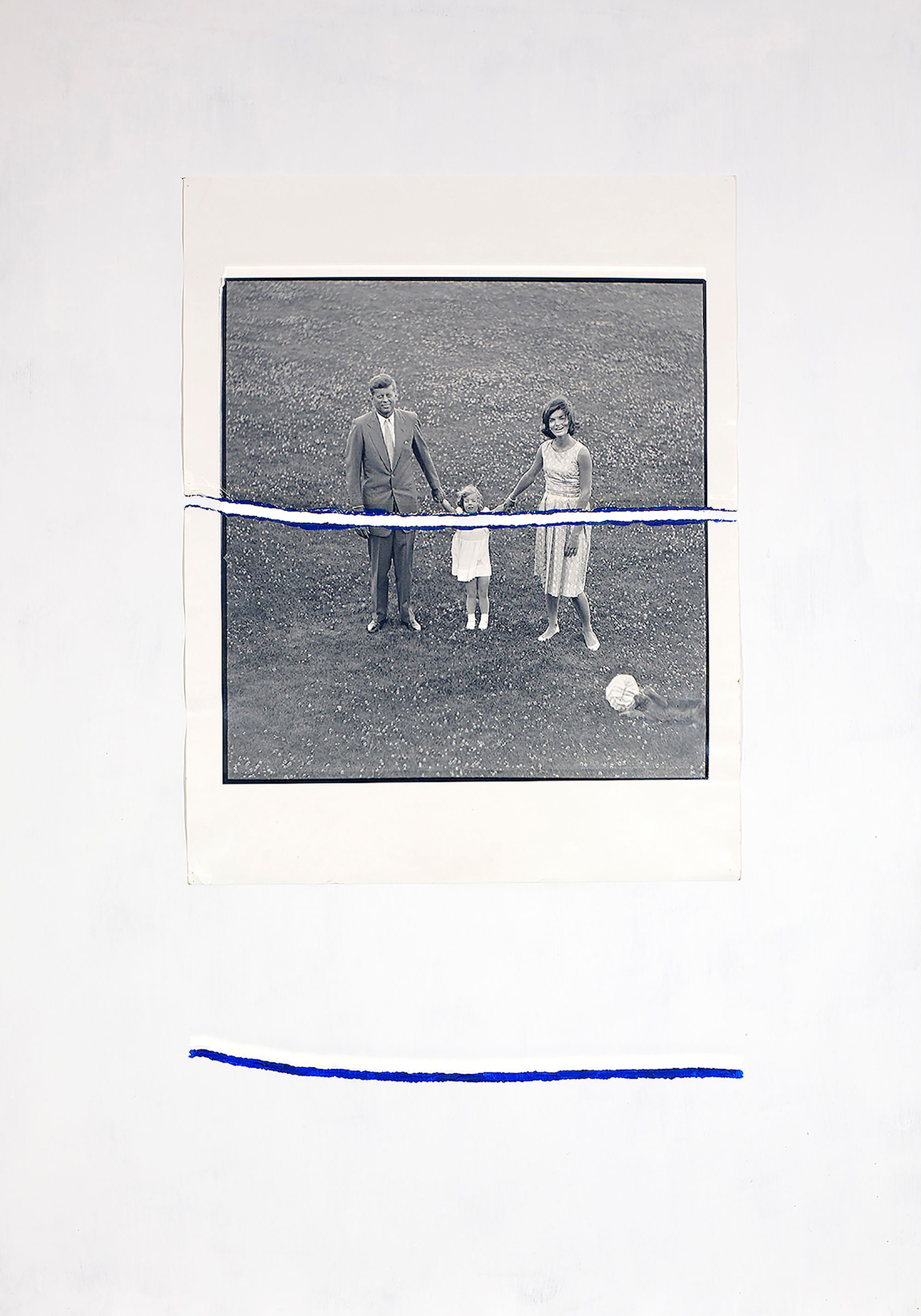 Stracciafotografia (JFK #1), 2016. (Found photography, blue acrylic paint on cementite treated mdf - Unique Artwork)
