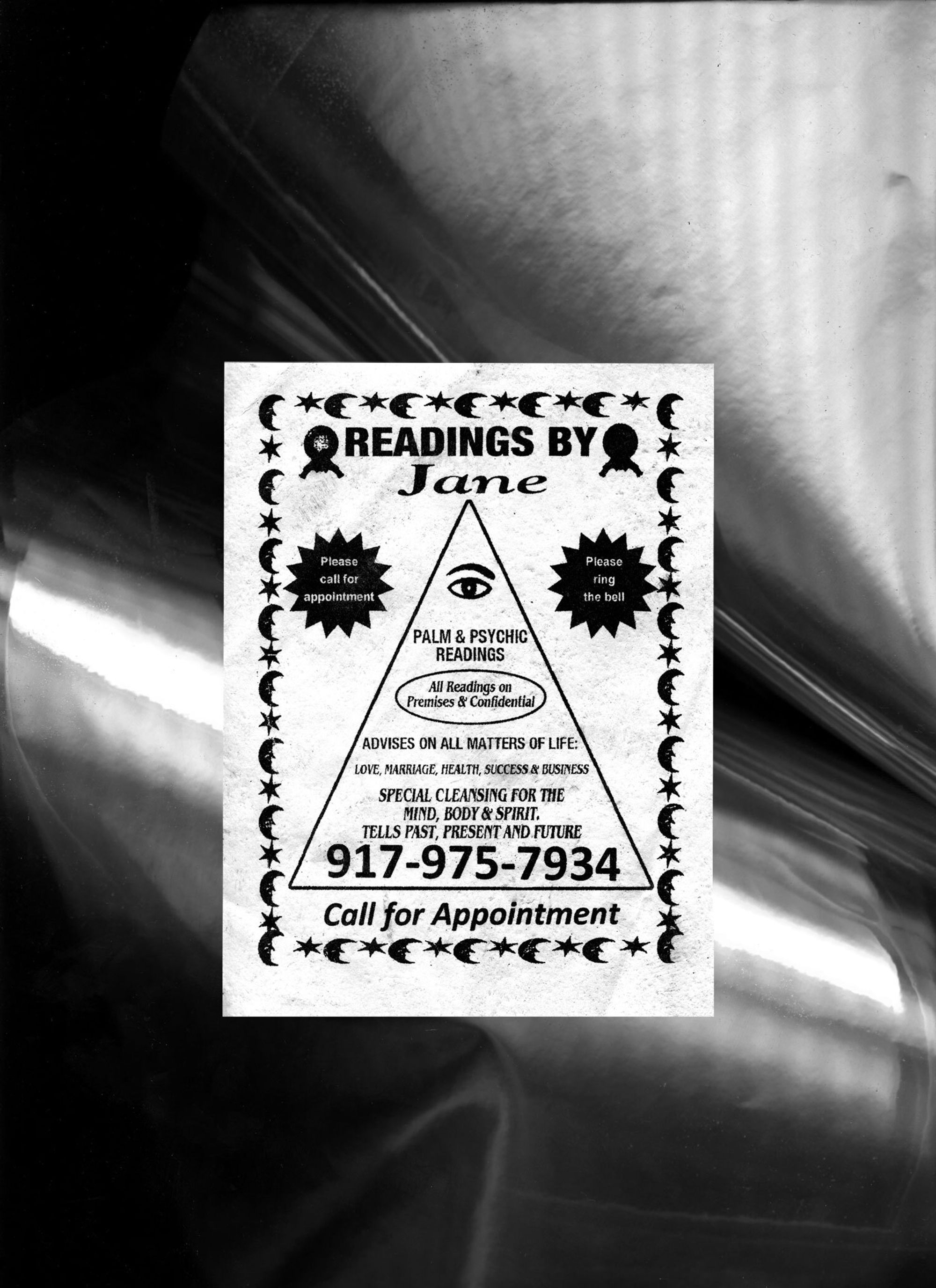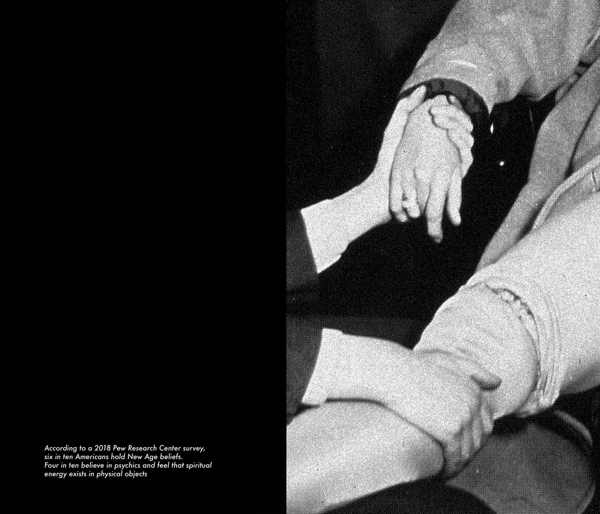These images run the gamut from aura photographs to subway advertisements for psychics, to archival photographs of spiritualist rituals, plumb the visual tropes of a search for answers and comfort in a rapidly changing world.