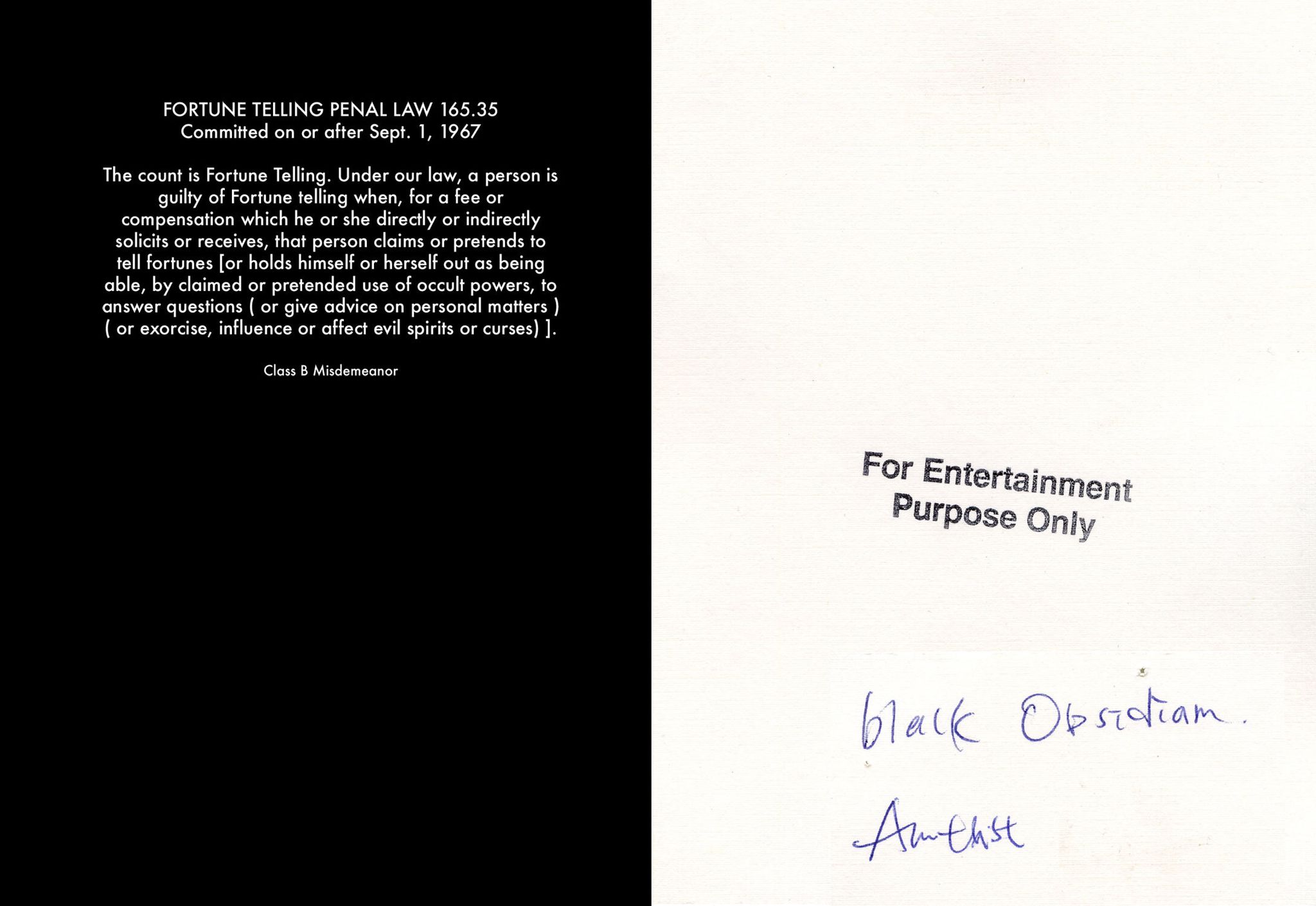 Sympathetic Magic is a body of work collected within an artist book entitled, The Moon and Stars Can Be Yours: Notes on Subway Psychic. The book is a pocket-sized guide to modern mysticism by way of the New York City subway system; a freewheeling investigation into the rise of contemporary spiritualism in an age of uncertainty. Much has been said of millennials, their faults enumerated in countless op-eds, but they are the first group to earn less than the prior generation, the first to confront adulthood under climate crisis, and the rupture of the global economy.