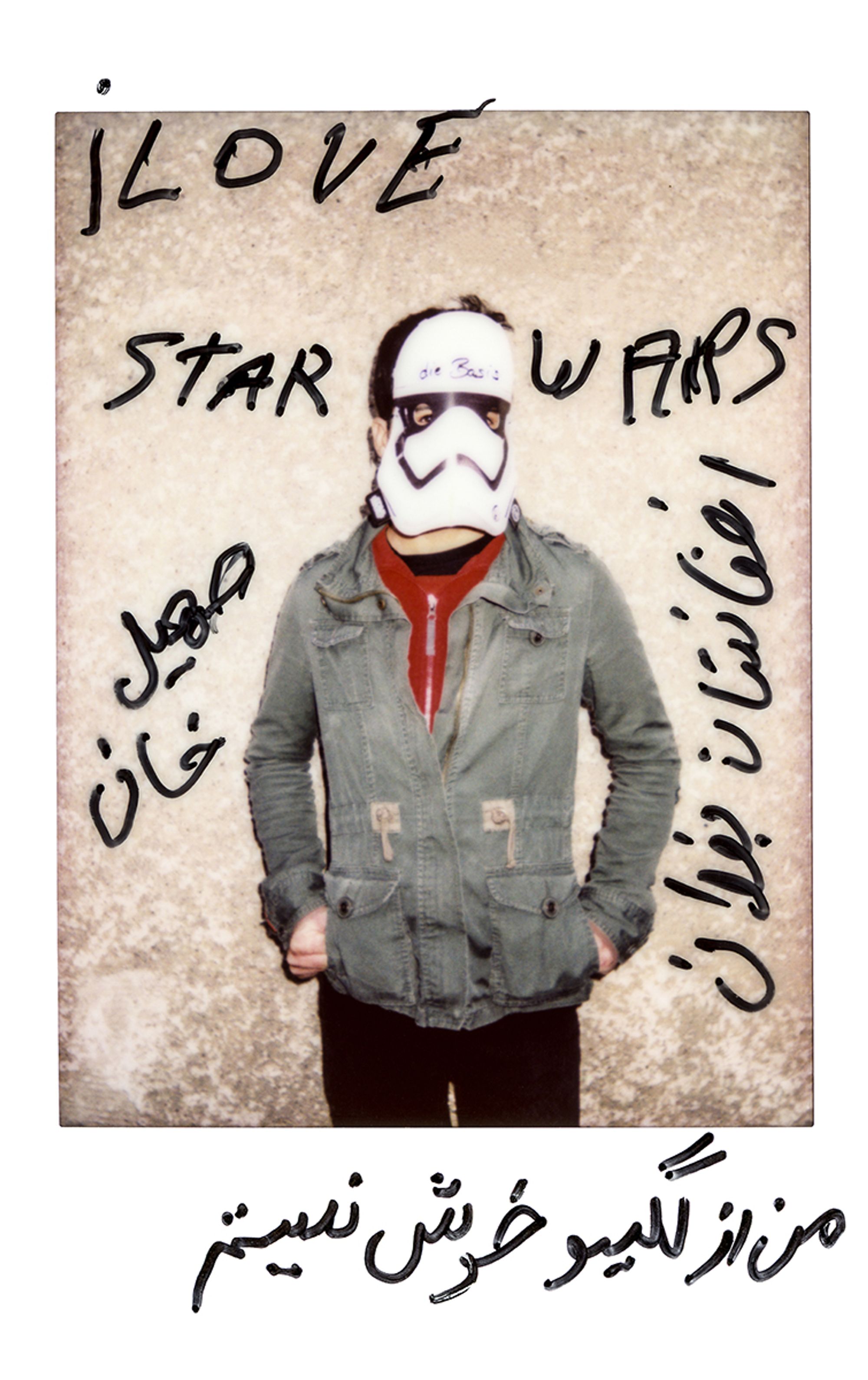 »I love Star Wars. I am not happy from Lageso*. Soheil Khan. Afghanistan, Baghlan« Berlin, Germany December 2015 *refugee registration office