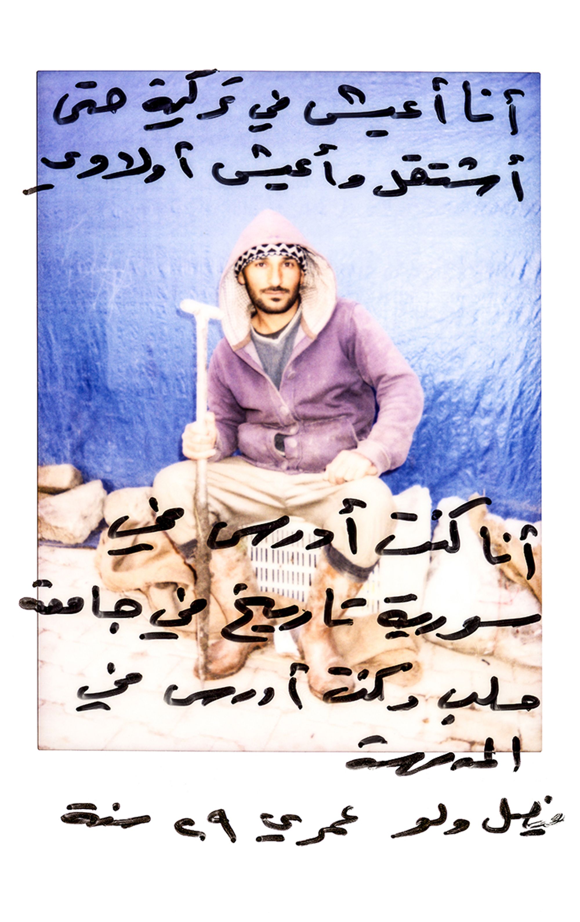 »I live in Turkey to work and to feed my children. I was studying history in Syria at Aleppo University. I used to teach at a school. Saisal Wallo. I am 29 years old«Kirikhan, Hatay, Turkish/Syrian border