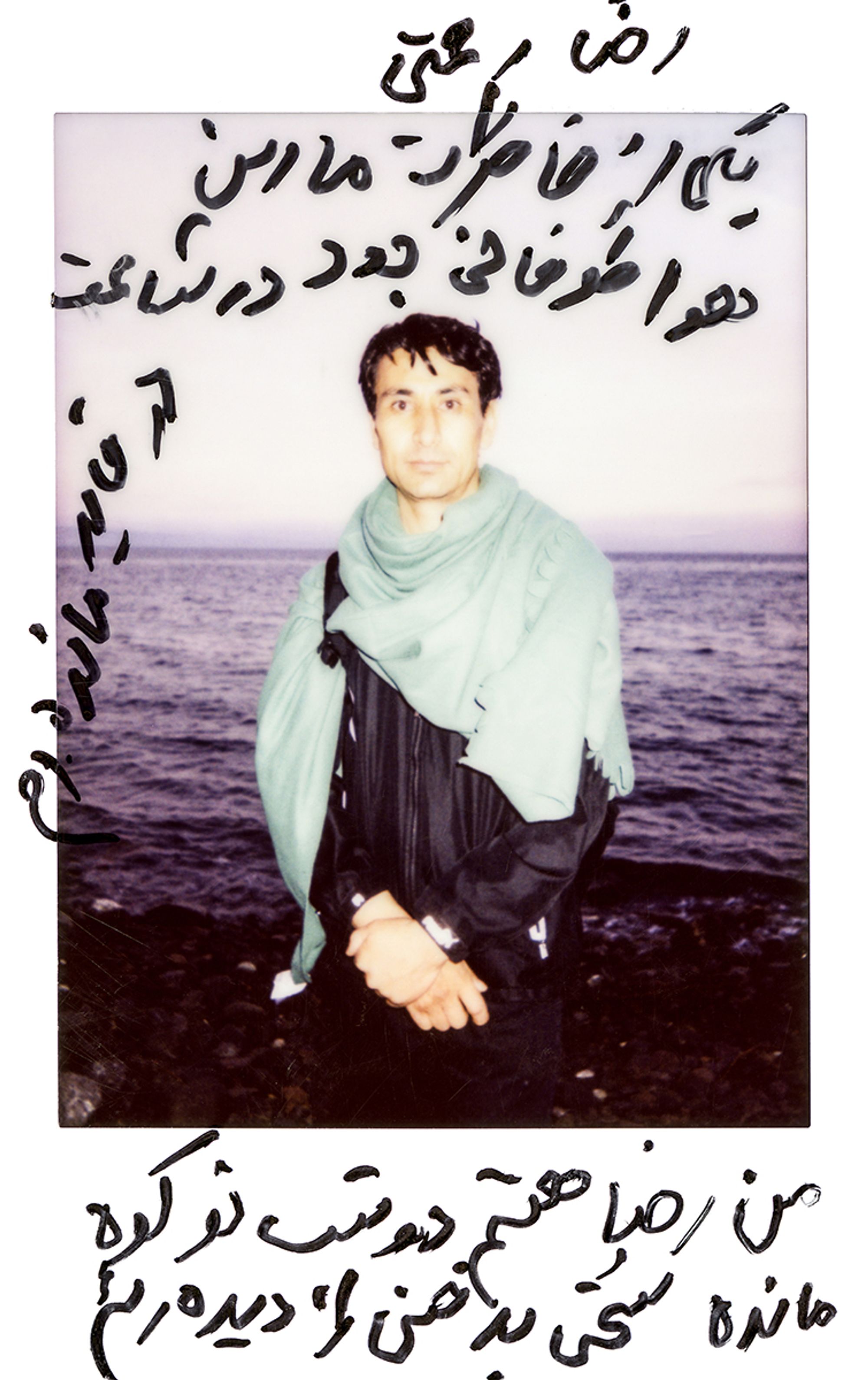 »Reza Rahmati. One of our last memories was this stormy weather. I was two hours on the boat. I am Reza and was two days in the mountain.«Lesvos, Greece